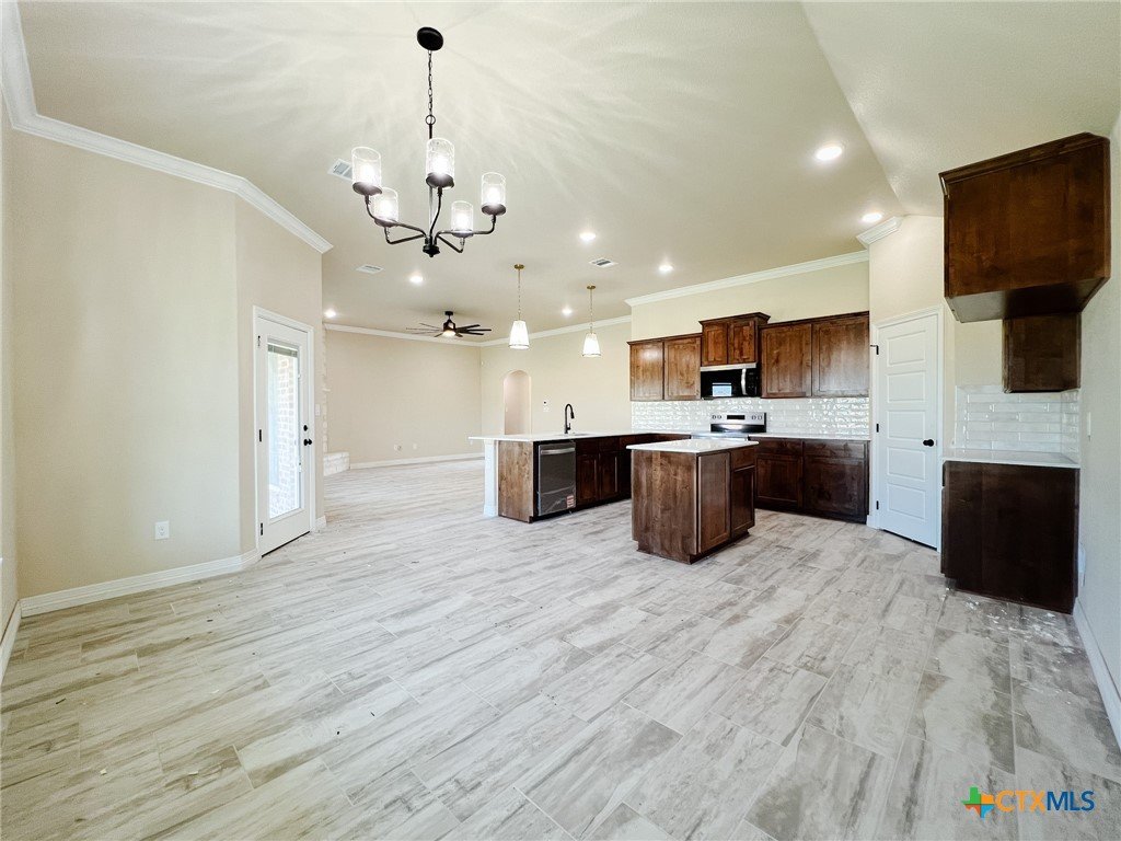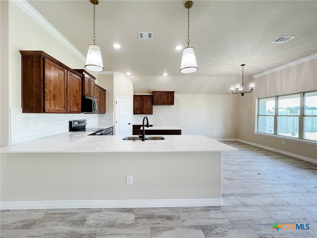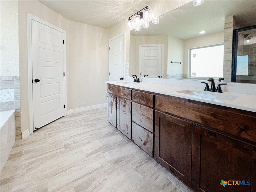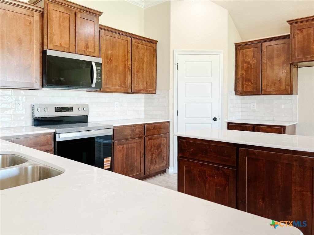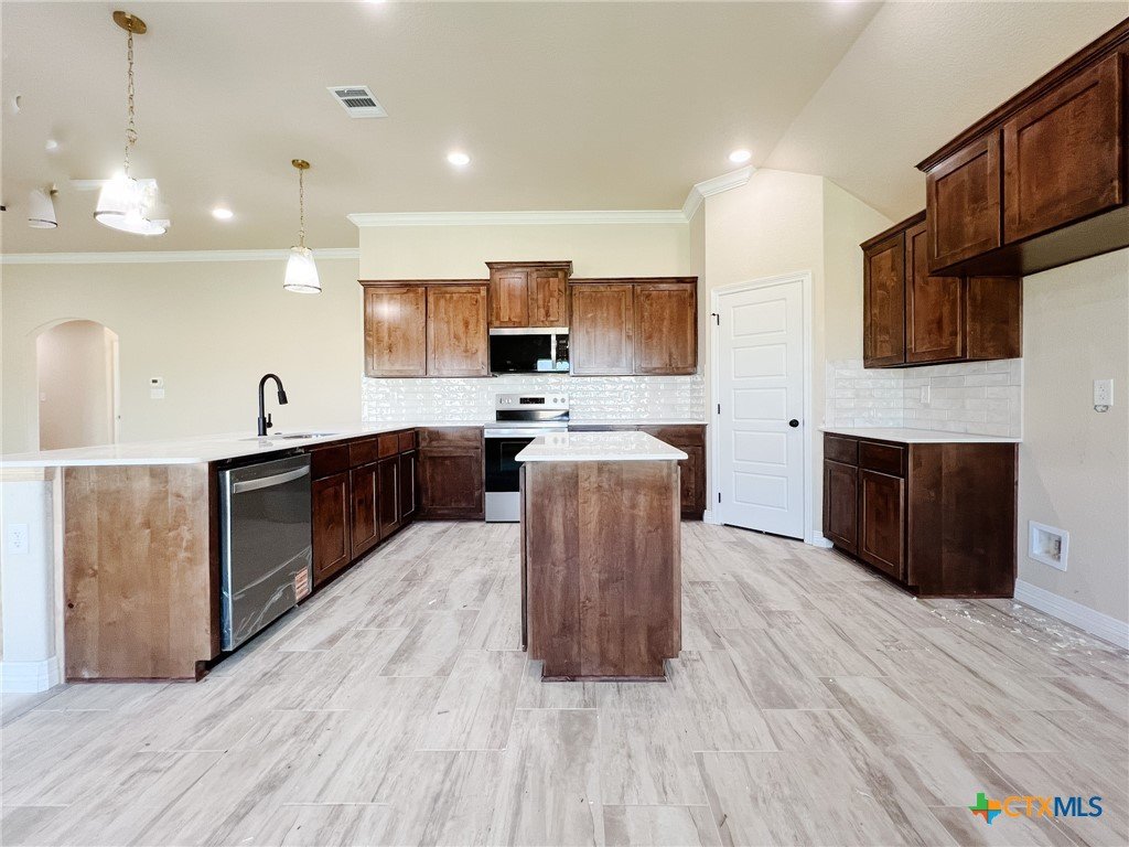 The Cozumel plan offers a welcoming 2,134 sq ft of thoughtfully designed space. This 4BR/2.5BA home is perfect for families who cherish intimate settings and refined elegance. The inviting living area features a majestic stone fireplace that creates a warm ambiance, while a large picture window offers tranquil views of the fenced backyard. The gourmet kitchen, a centerpiece of the home, is equipped with modern appliances and exquisite cabinetry, providing a perfect space for culinary adventures and gatherings. The dining area opens to a covered patio, ideal for alfresco dining. The owner’s suite serves as a serene retreat with a luxurious bath featuring a garden tub, a separate tile shower, and a generous walk-in closet.