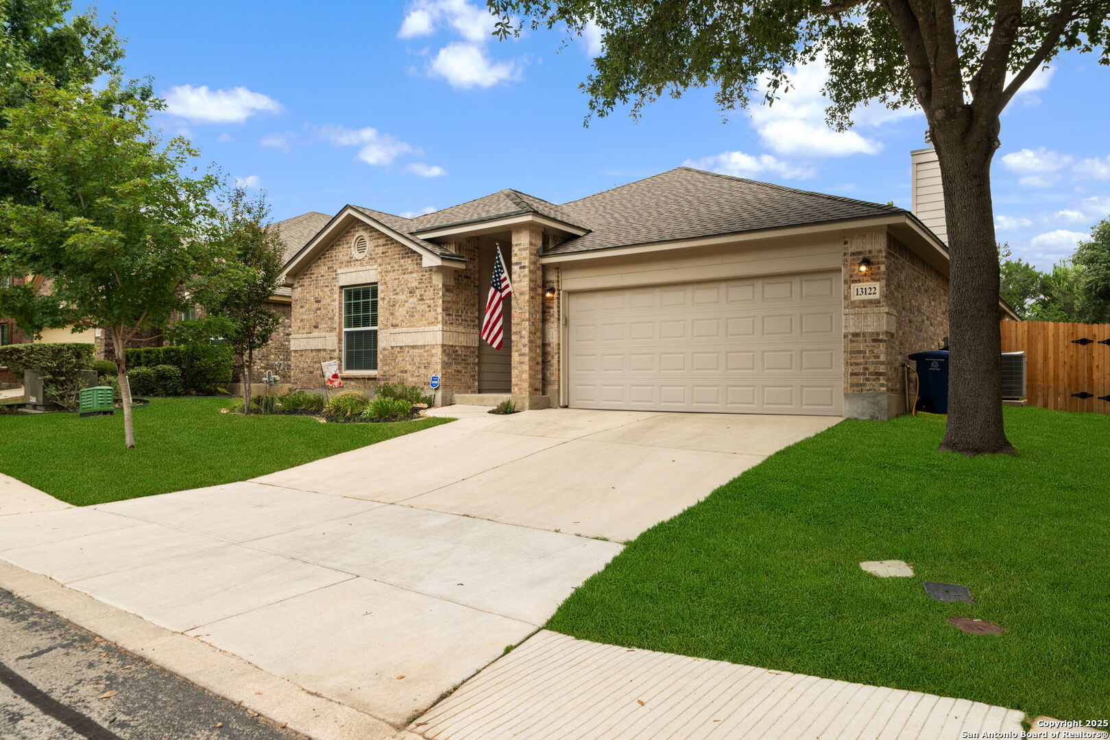 Coveted one story on a greenbelt! Birder's paradise. Watch the wildlife from your extended back deck or the shade of your covered patio. Charming Northside home is gracious and inviting, truly a winner with wood-look luxury vinyl flooring and 18" tile flooring. No carpet whatsoever. Possessing an ideal flow for entertaining, you'll enjoy a large kitchen with island, breakfast bar, and plenty of wonderful maple glazed cabinetry. Microwave (Dec 2024), Water heater (2019). With a 22X21 foot family room you and yours will never be cramped for space. A gas fireplace adds ambiance while high ceilings, natural lighting and a roomy study combine beautifully. Perfect for working from home or having a dedicated hobby room. The primary retreat is located at the back of the home overlooking an attractive arbor with flagstone walk and bench. Iron fencing overlooks the community walking trail beyond the fence. The spa-like primary bath includes double vanity, large walk in closet and separate/shower tub. Utility room /pantry is spacious as well with white pantry cabinets that convey. This is truly a winning plan. The backyard takes advantage of native flora with a xeroscape feel that includes river rock to simulate a hill country creekbed. New roof just installed 2025! Nest learning thermostat. Sprinkler System, water softener and Eufy doorbell round off the package. Fabulous location with highly desirable schools including Brandeis HS. The community offers a pavilion, park/playground and walking trail with exercise stations. Come Home!