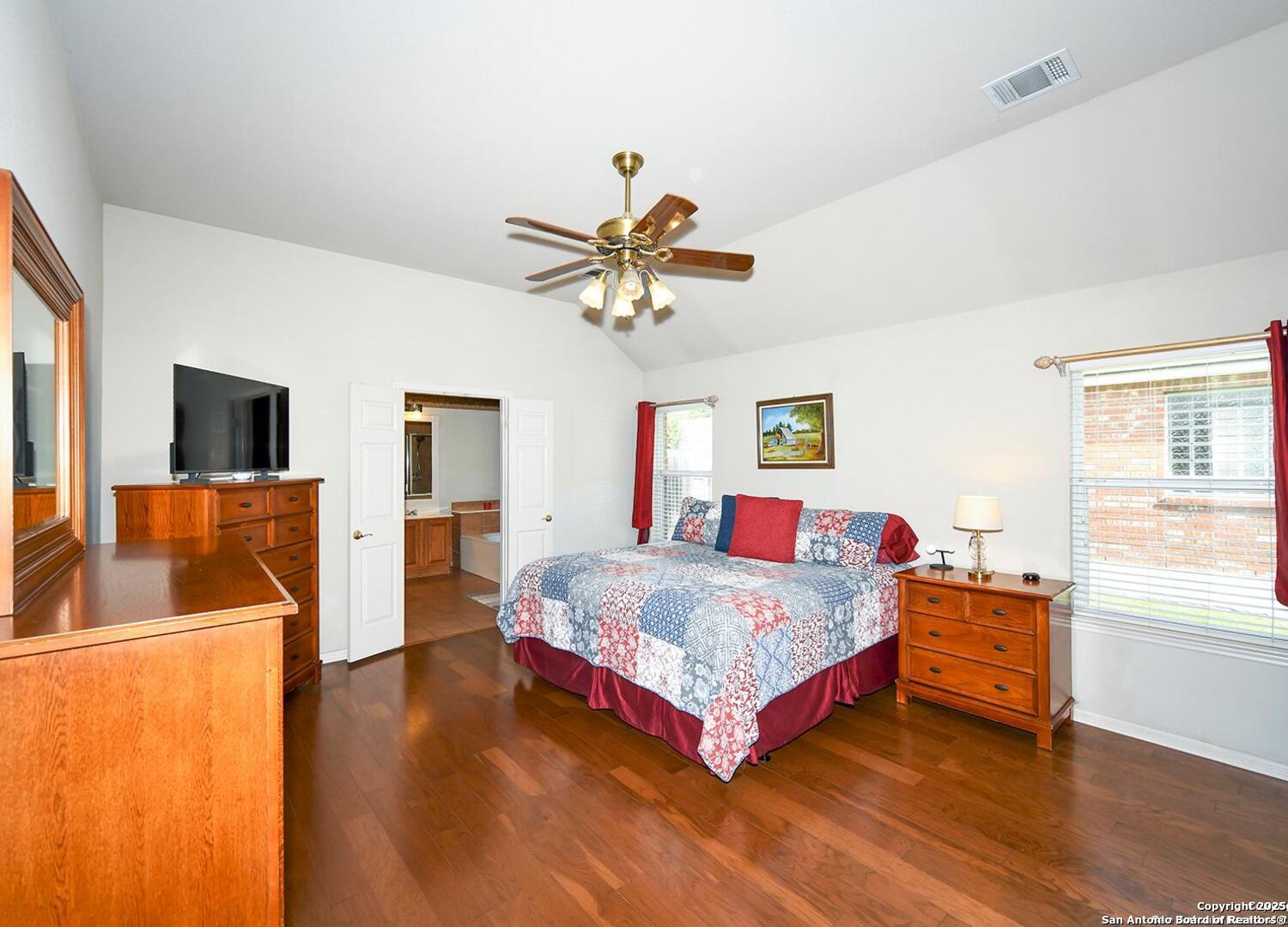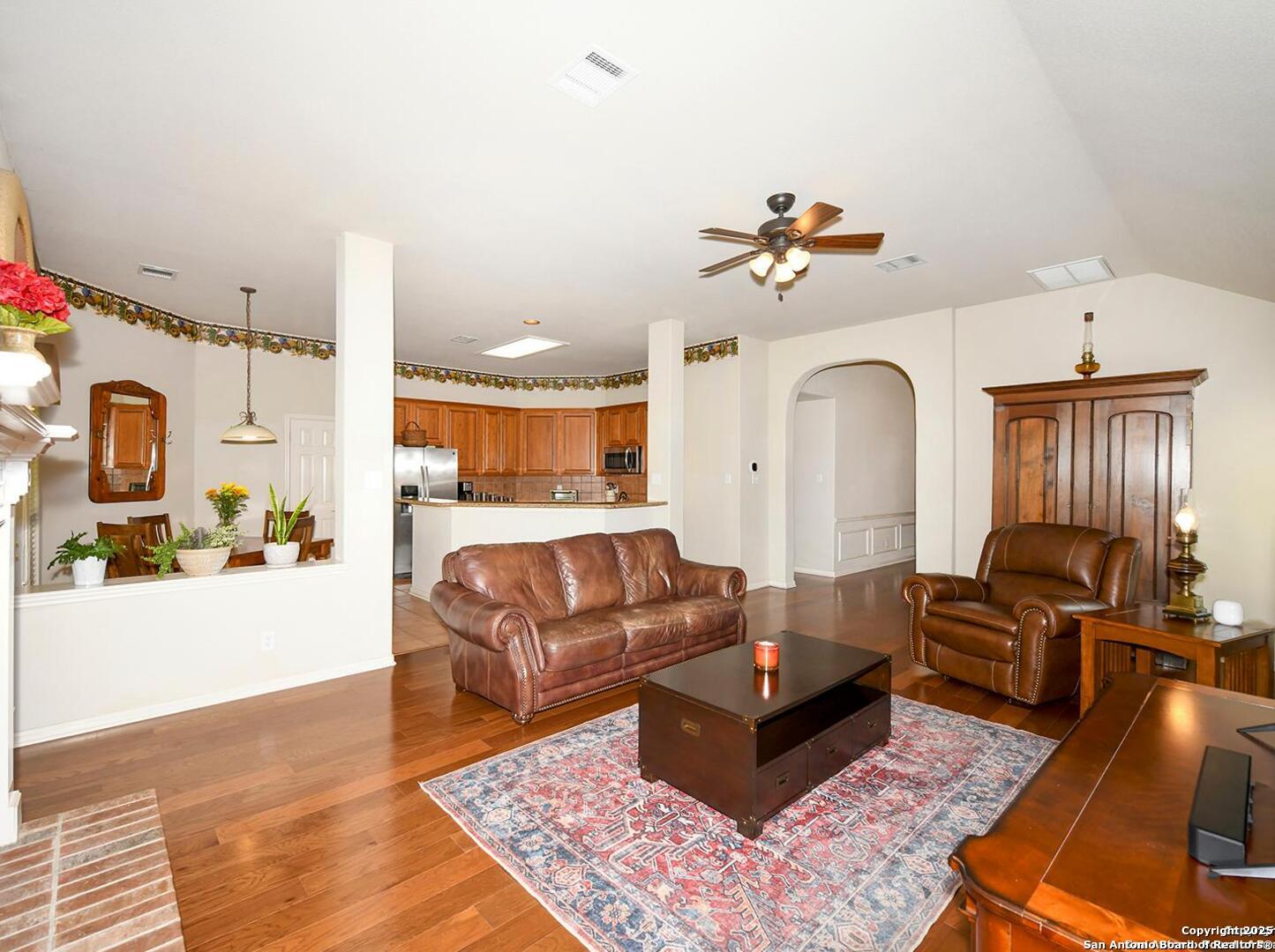 Come experience this gorgeous home nestled in the gated and GUARDED neighborhood of Summerfield! This prestigious community offers walking trails with direct access to the Salado Creek Greenway System! The meticulously cared-for home showcases beautiful wood floors, lush landscaping with a sprinkler system, spacious walk-in closets, and an office adorned with elegant French doors. You won't be disappointed!