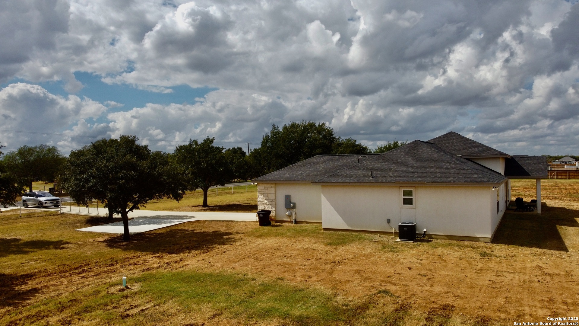Discover your own Texas retreat! This stunning one-story home sits on 1.37 acres of peaceful countryside, 5 minutes from Lytle downtown and just 30 minutes from downtown San Antonio. Featuring 4 spacious bedrooms and 3 full bathrooms. The oversized primary suite includes a spa-inspired bathroom with rain-shower, separate bathtub, and HUGE walk-in closet, while the split floorplan offers the private guest suite that can also be perfect second master. Enjoy entertaining in the open-concept living area with HIGH ceilings, and a modern kitchen equipped with stainless steel appliances, solid countertops, 42" custom cabinetry, and under-cabinet lighting. Step outside and experience the tranquility of wide-open spaces, fresh country air, and beautiful Texas sunsets. Here, you'll enjoy the best of both worlds - serene country living with easy access to city conveniences. Don't miss the opportunity to visit this exceptional property home!