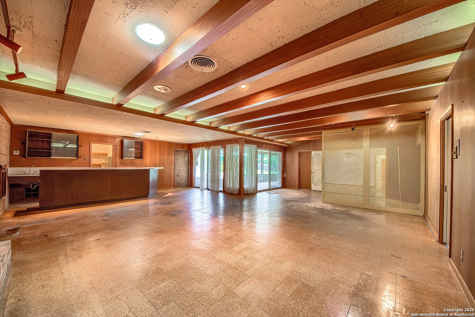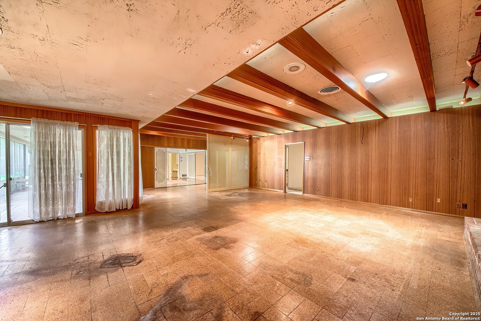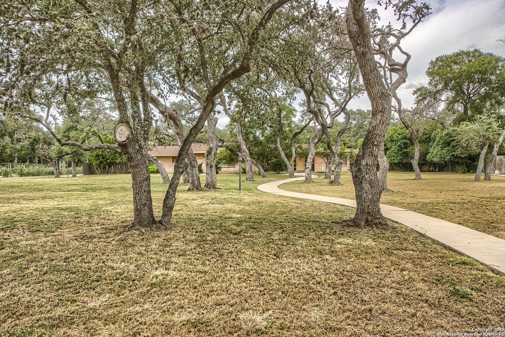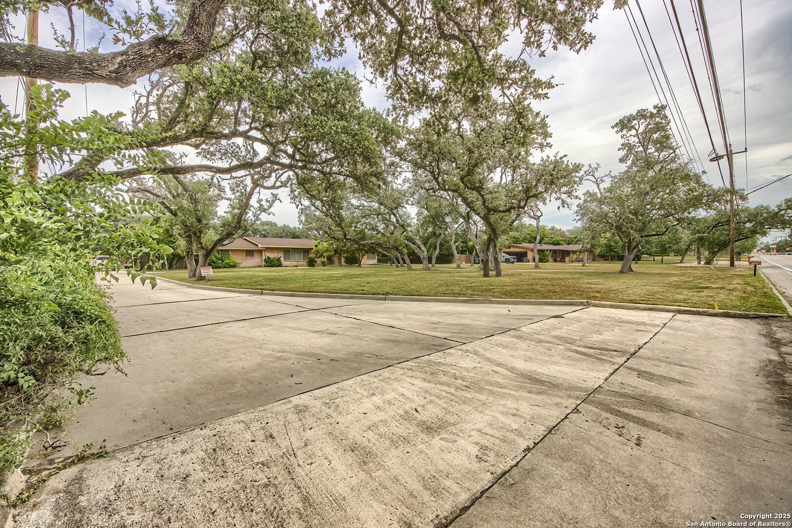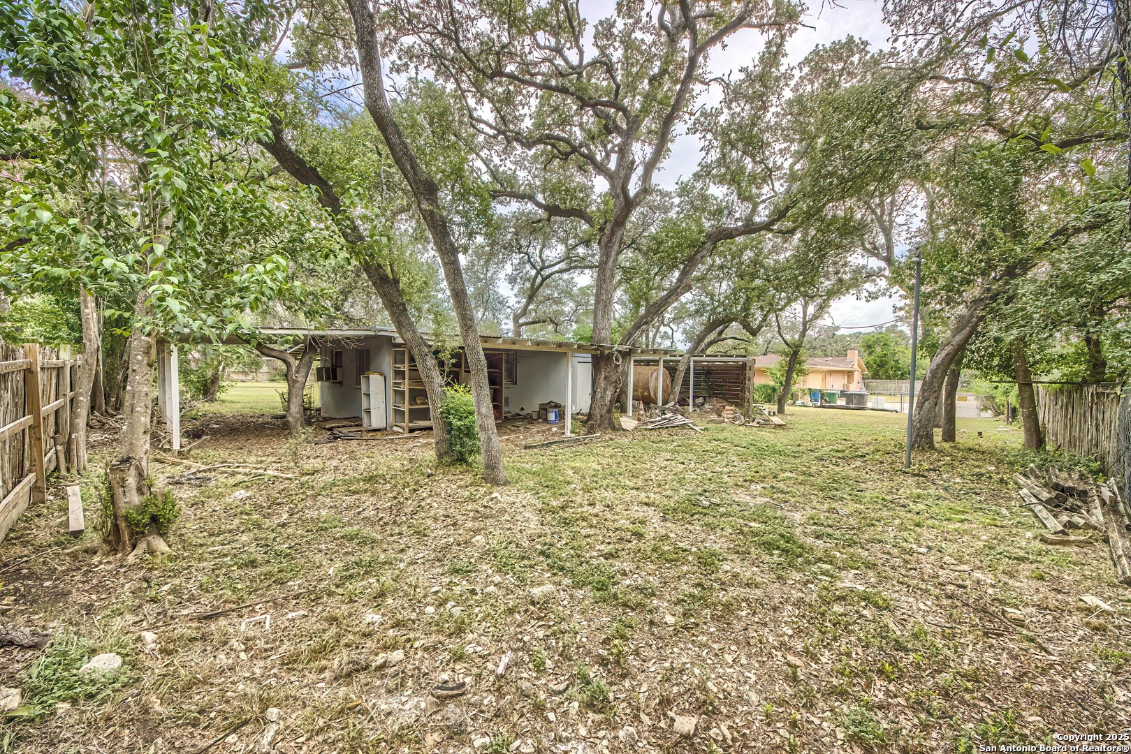 RARE FIND - ELEGANT, MID-CENTURY SINGLE STORY ESTATE HOME WITH POOL ON MORE THAN AN ACRE JUST OUTSIDE 410 & ACROSS THE STREET FROM CASTLE HILLS! Oh, if only a home could talk ... step one foot into this amazing residence owned for decades by a world famous musical artist to instantly imagine all the parties she has hosted over the decades and the memories made here. Pull off Lockhill-Selma onto a long driveway past a sweeping lawn dotted with oaks to a sprawling brick rancher that welcomes you in to a space brimming with character. Past a charming front porch, a gracious entry opens into a formal living room with picture window and so many amazing mid century elements including custom lattice shutters. The bookshelf itself is a masterpiece! Straight ahead is a formal dining room that opens past elaborate, decorative lattice doors into an office then into the huge family room ideal for entertaining. Here under beamed ceilings find a brick accent wall and long bar with butler pantry for storage. The kitchen sits in the middle of the home with a sink overlooking the backyard. The adjacent breakfast space under a vintage chandelier offers a cozy space to enjoy a coffee. One wing hosts a large atmospheric primary bedroom awash with natural light and featuring a unique custom wood accent wall. The shared bathroom with beautiful vintage tile on the wall and in tub/shower combo offers plenty of counter space on the vanity along with lots of practical storage. In the opposite wing sits another large secondary bedroom and a guest bathroom with vintage tile walk-in shower with bench and sliding glass doors. The attached, side entry two-car garage has loads of storage closets along one wall. Slip out the back door where the party continues with a massive screened-in porch that runs nearly the length of the house. Head outdoors onto the acreage where a gazebo offers some shade in between frolics in the large, well maintained, recently resurfaced swimming pool deep enough to sport a diving board! An outbuilding that needs work once served as a casita and later an office has plumbing for a full bathroom. Use your imagination on the rest of the remainder of the 1.3 acre, level lot or just enjoy its natural beauty under the shade of mature trees. All this in an incredibly convenient location -- between Northwest Military and Blanco, less than a mile off Loop 410 right in the heart of North San Antonio, peaceful yet surrounded by shopping and restaurants. Get to North Star in 5 minutes, the Pearl and downtown in 15. Currently zoned for popular NEISD schools including Castle Hills Elementary, Eisenhauer Middle and Churchill High. This once-in-lifetime gem is ready for you to revel in her truly original character or to renovate to Mid-Century Modern. See it to believe what an incredible opportunity this home is coupled with an incredible location! Hurry!