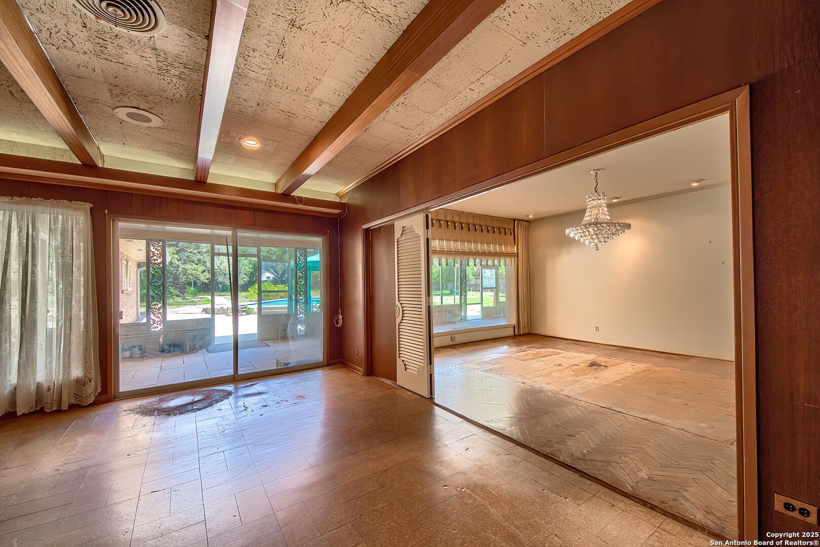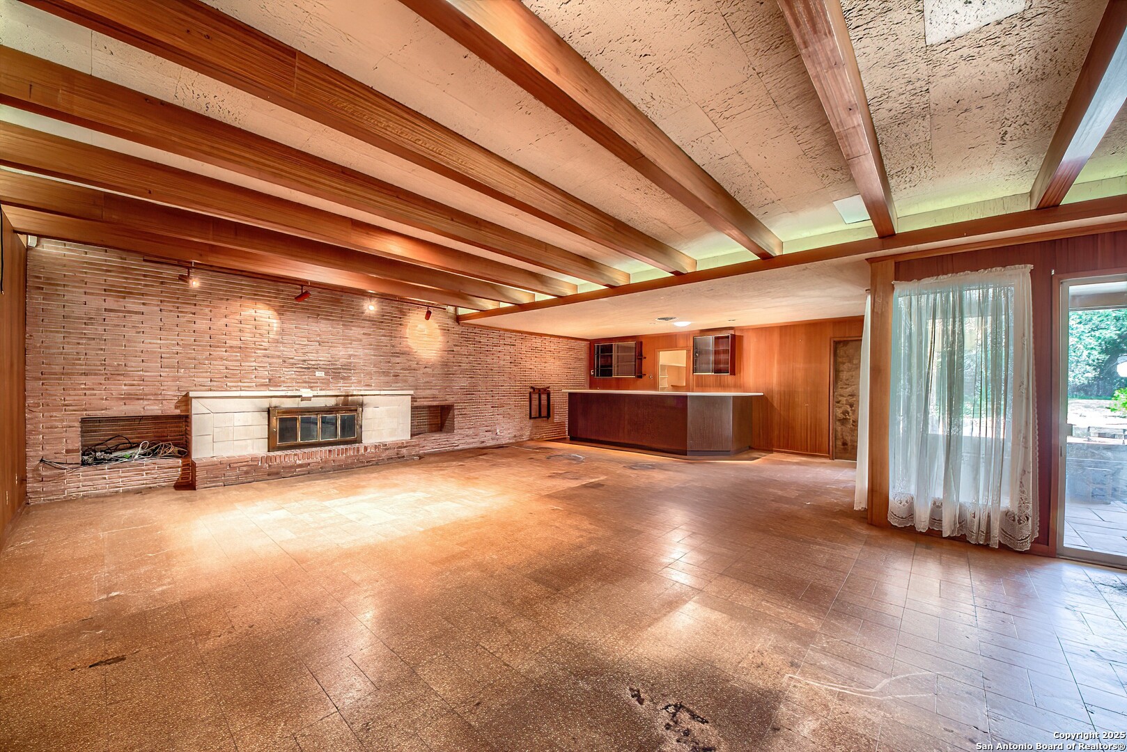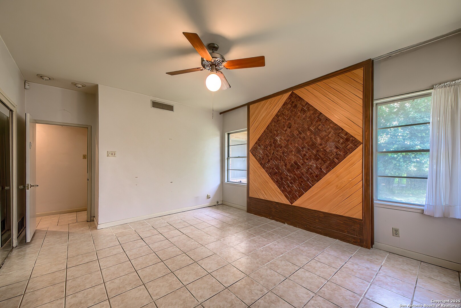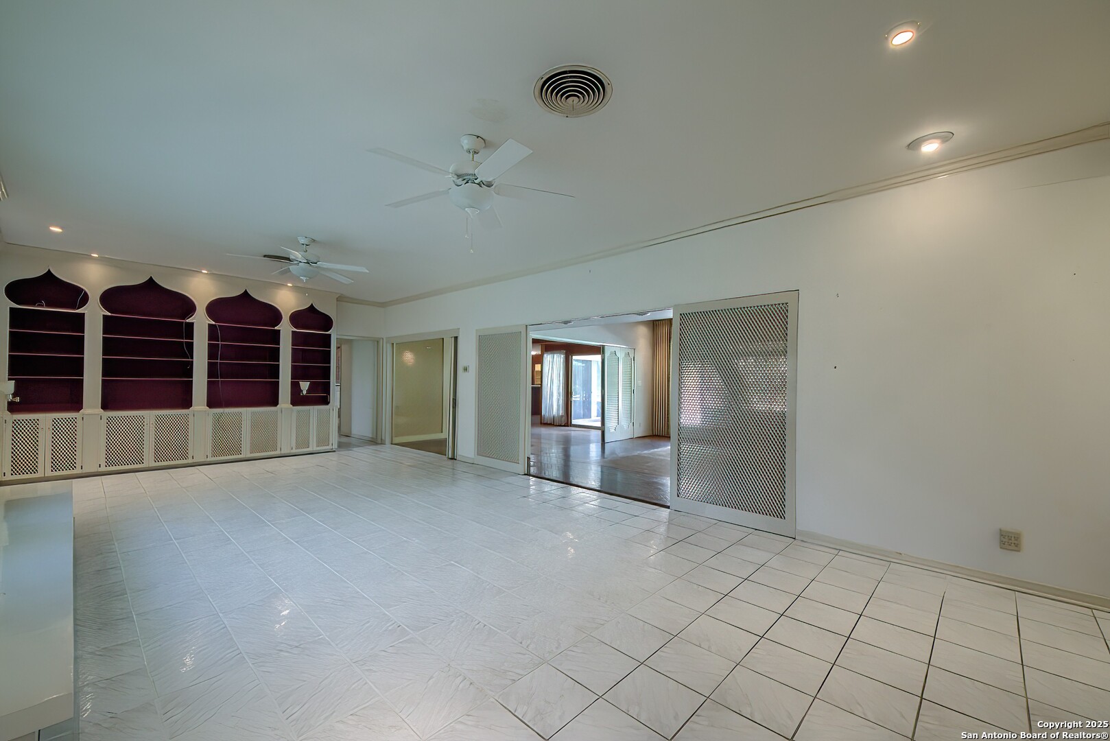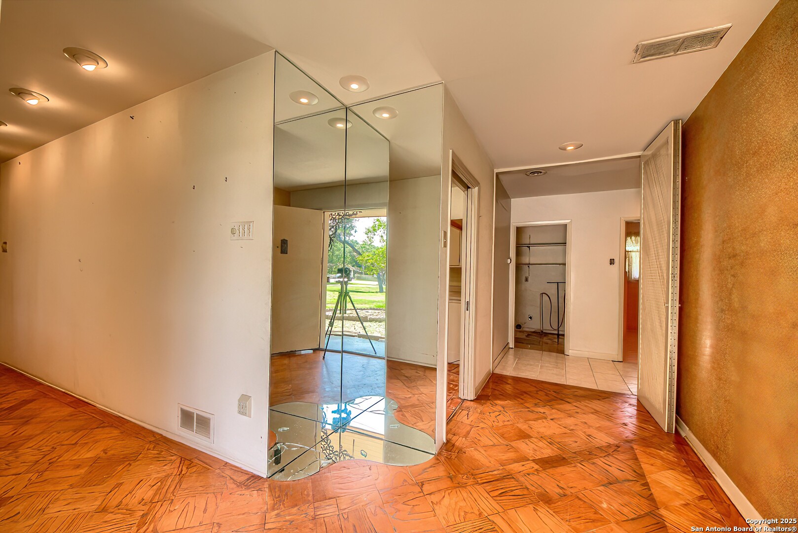 RARE FIND - ELEGANT, MID-CENTURY SINGLE STORY ESTATE HOME WITH POOL ON MORE THAN AN ACRE JUST OUTSIDE 410 & ACROSS THE STREET FROM CASTLE HILLS! Oh, if only a home could talk ... step one foot into this amazing residence owned for decades by a world famous musical artist to instantly imagine all the parties she has hosted over the decades and the memories made here. Pull off Lockhill-Selma onto a long driveway past a sweeping lawn dotted with oaks to a sprawling brick rancher that welcomes you in to a space brimming with character. Past a charming front porch, a gracious entry opens into a formal living room with picture window and so many amazing mid century elements including custom lattice shutters. The bookshelf itself is a masterpiece! Straight ahead is a formal dining room that opens past elaborate, decorative lattice doors into an office then into the huge family room ideal for entertaining. Here under beamed ceilings find a brick accent wall and long bar with butler pantry for storage. The kitchen sits in the middle of the home with a sink overlooking the backyard. The adjacent breakfast space under a vintage chandelier offers a cozy space to enjoy a coffee. One wing hosts a large atmospheric primary bedroom awash with natural light and featuring a unique custom wood accent wall. The shared bathroom with beautiful vintage tile on the wall and in tub/shower combo offers plenty of counter space on the vanity along with lots of practical storage. In the opposite wing sits another large secondary bedroom and a guest bathroom with vintage tile walk-in shower with bench and sliding glass doors. The attached, side entry two-car garage has loads of storage closets along one wall. Slip out the back door where the party continues with a massive screened-in porch that runs nearly the length of the house. Head outdoors onto the acreage where a gazebo offers some shade in between frolics in the large, well maintained, recently resurfaced swimming pool deep enough to sport a diving board! An outbuilding that needs work once served as a casita and later an office has plumbing for a full bathroom. Use your imagination on the rest of the remainder of the 1.3 acre, level lot or just enjoy its natural beauty under the shade of mature trees. All this in an incredibly convenient location -- between Northwest Military and Blanco, less than a mile off Loop 410 right in the heart of North San Antonio, peaceful yet surrounded by shopping and restaurants. Get to North Star in 5 minutes, the Pearl and downtown in 15. Currently zoned for popular NEISD schools including Castle Hills Elementary, Eisenhauer Middle and Churchill High. This once-in-lifetime gem is ready for you to revel in her truly original character or to renovate to Mid-Century Modern. See it to believe what an incredible opportunity this home is coupled with an incredible location! Hurry!