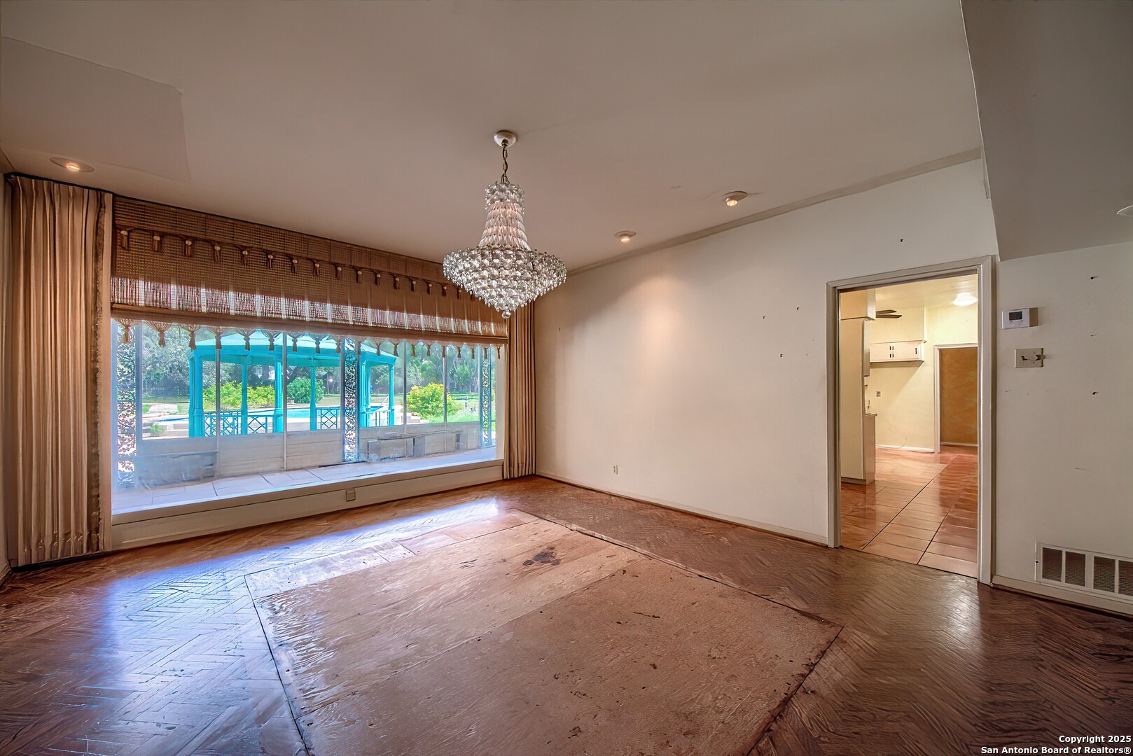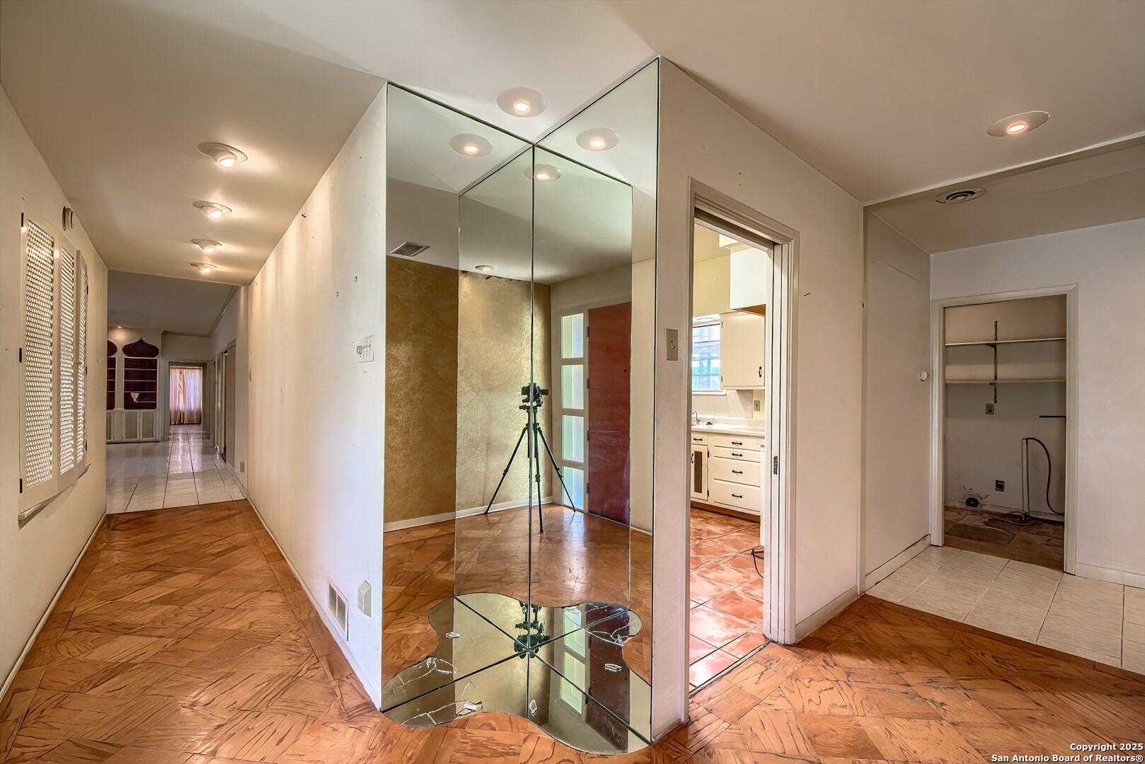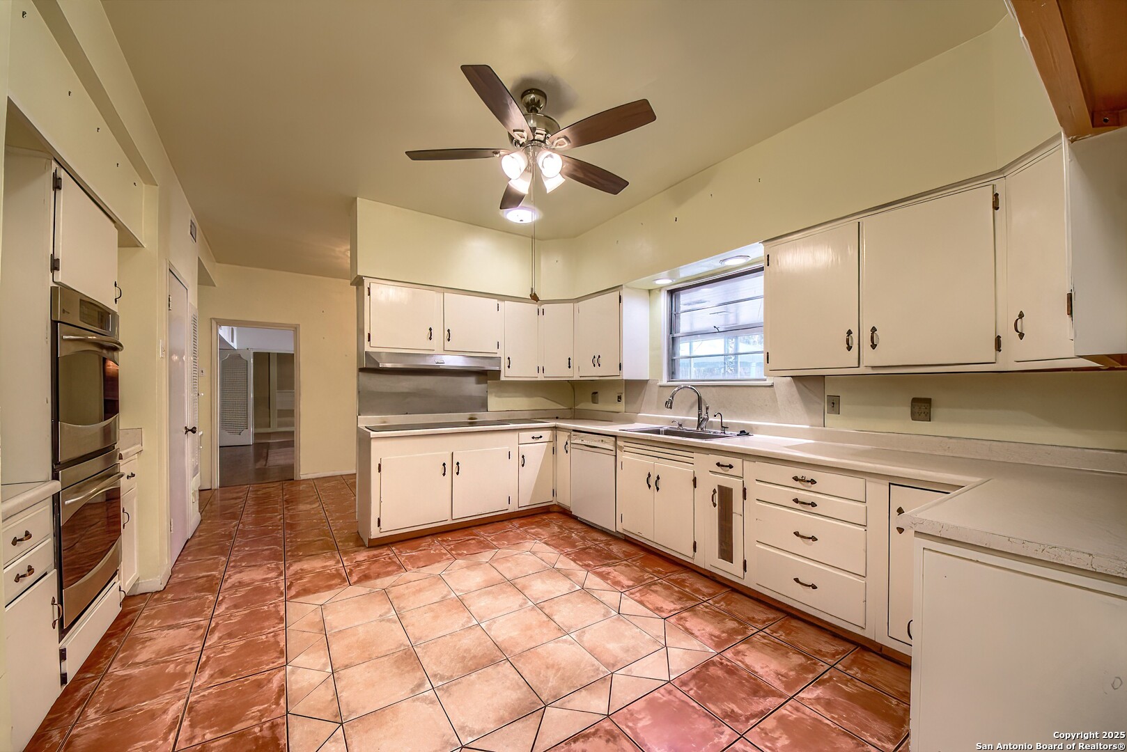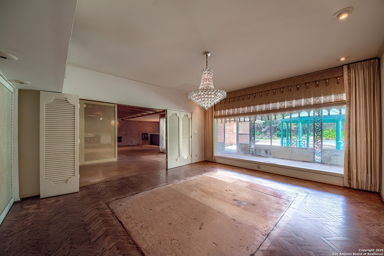 RARE FIND - ELEGANT, MID-CENTURY SINGLE STORY ESTATE HOME WITH POOL ON MORE THAN AN ACRE JUST OUTSIDE 410 & ACROSS THE STREET FROM CASTLE HILLS! Oh, if only a home could talk ... step one foot into this amazing residence owned for decades by a world famous musical artist to instantly imagine all the parties she has hosted over the decades and the memories made here. Pull off Lockhill-Selma onto a long driveway past a sweeping lawn dotted with oaks to a sprawling brick rancher that welcomes you in to a space brimming with character. Past a charming front porch, a gracious entry opens into a formal living room with picture window and so many amazing mid century elements including custom lattice shutters. The bookshelf itself is a masterpiece! Straight ahead is a formal dining room that opens past elaborate, decorative lattice doors into an office then into the huge family room ideal for entertaining. Here under beamed ceilings find a brick accent wall and long bar with butler pantry for storage. The kitchen sits in the middle of the home with a sink overlooking the backyard. The adjacent breakfast space under a vintage chandelier offers a cozy space to enjoy a coffee. One wing hosts a large atmospheric primary bedroom awash with natural light and featuring a unique custom wood accent wall. The shared bathroom with beautiful vintage tile on the wall and in tub/shower combo offers plenty of counter space on the vanity along with lots of practical storage. In the opposite wing sits another large secondary bedroom and a guest bathroom with vintage tile walk-in shower with bench and sliding glass doors. The attached, side entry two-car garage has loads of storage closets along one wall. Slip out the back door where the party continues with a massive screened-in porch that runs nearly the length of the house. Head outdoors onto the acreage where a gazebo offers some shade in between frolics in the large, well maintained, recently resurfaced swimming pool deep enough to sport a diving board! An outbuilding that needs work once served as a casita and later an office has plumbing for a full bathroom. Use your imagination on the rest of the remainder of the 1.3 acre, level lot or just enjoy its natural beauty under the shade of mature trees. All this in an incredibly convenient location -- between Northwest Military and Blanco, less than a mile off Loop 410 right in the heart of North San Antonio, peaceful yet surrounded by shopping and restaurants. Get to North Star in 5 minutes, the Pearl and downtown in 15. Currently zoned for popular NEISD schools including Castle Hills Elementary, Eisenhauer Middle and Churchill High. This once-in-lifetime gem is ready for you to revel in her truly original character or to renovate to Mid-Century Modern. See it to believe what an incredible opportunity this home is coupled with an incredible location! Hurry!