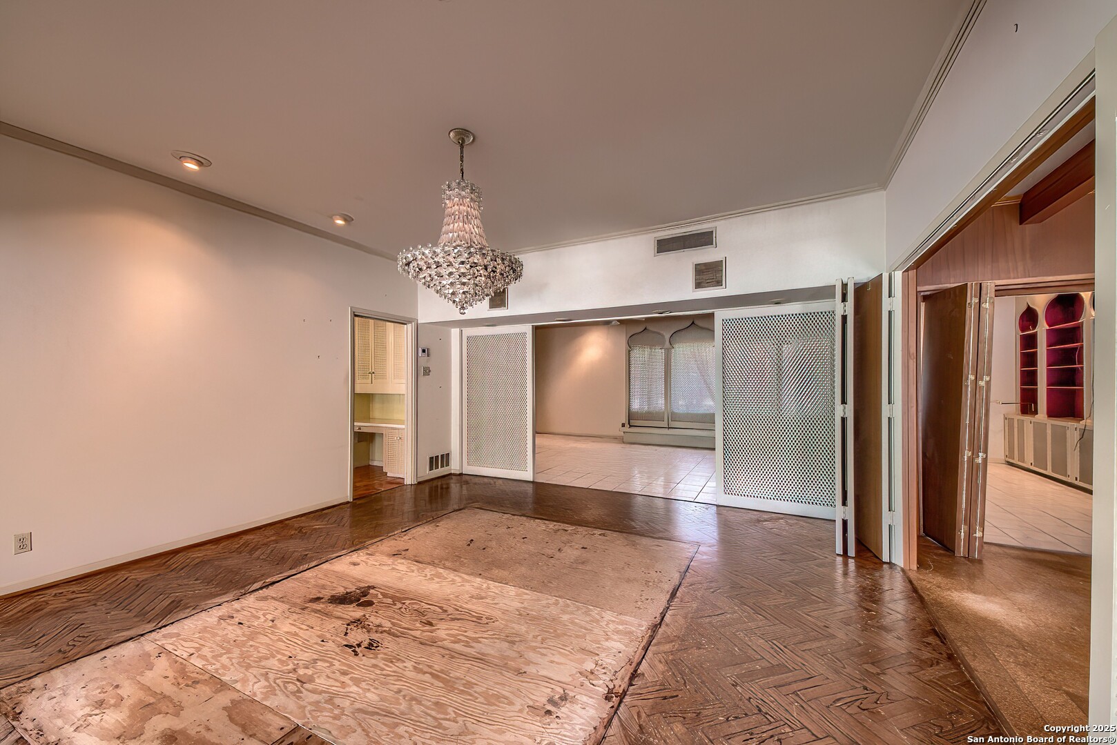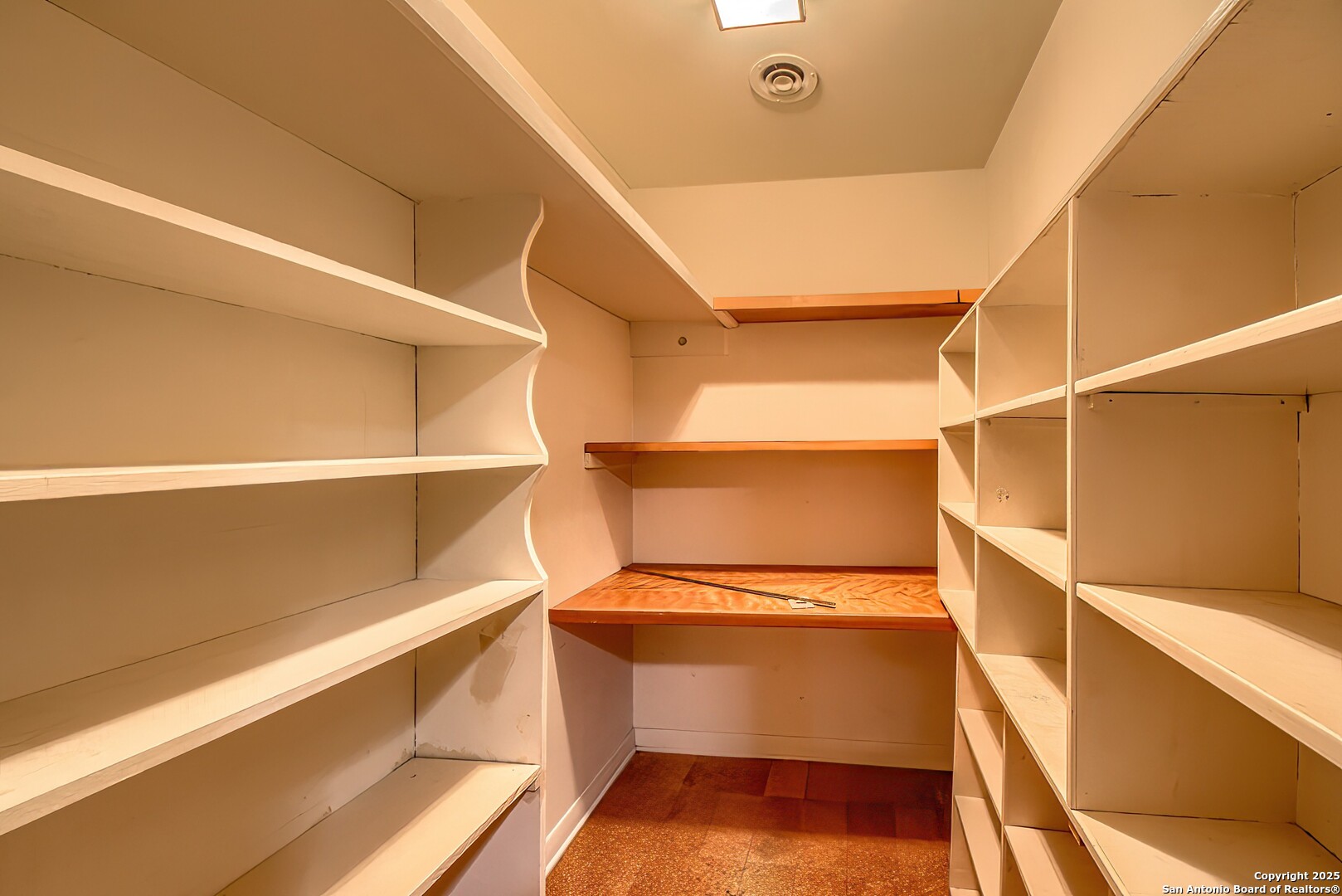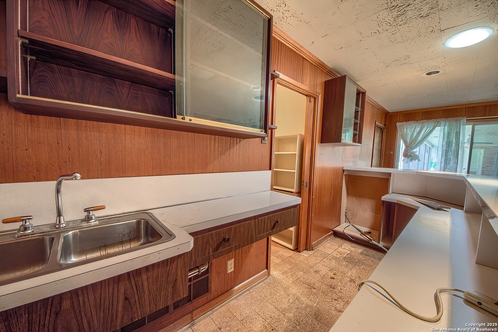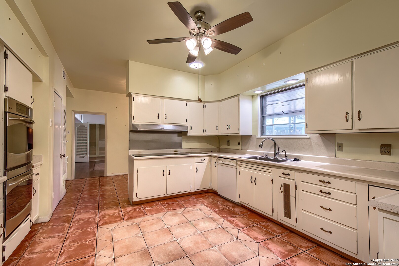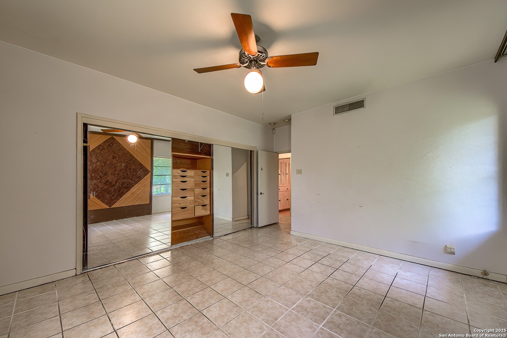 RARE FIND - ELEGANT, MID-CENTURY SINGLE STORY ESTATE HOME WITH POOL ON MORE THAN AN ACRE JUST OUTSIDE 410 & ACROSS THE STREET FROM CASTLE HILLS! Oh, if only a home could talk ... step one foot into this amazing residence owned for decades by a world famous musical artist to instantly imagine all the parties she has hosted over the decades and the memories made here. Pull off Lockhill-Selma onto a long driveway past a sweeping lawn dotted with oaks to a sprawling brick rancher that welcomes you in to a space brimming with character. Past a charming front porch, a gracious entry opens into a formal living room with picture window and so many amazing mid century elements including custom lattice shutters. The bookshelf itself is a masterpiece! Straight ahead is a formal dining room that opens past elaborate, decorative lattice doors into an office then into the huge family room ideal for entertaining. Here under beamed ceilings find a brick accent wall and long bar with butler pantry for storage. The kitchen sits in the middle of the home with a sink overlooking the backyard. The adjacent breakfast space under a vintage chandelier offers a cozy space to enjoy a coffee. One wing hosts a large atmospheric primary bedroom awash with natural light and featuring a unique custom wood accent wall. The shared bathroom with beautiful vintage tile on the wall and in tub/shower combo offers plenty of counter space on the vanity along with lots of practical storage. In the opposite wing sits another large secondary bedroom and a guest bathroom with vintage tile walk-in shower with bench and sliding glass doors. The attached, side entry two-car garage has loads of storage closets along one wall. Slip out the back door where the party continues with a massive screened-in porch that runs nearly the length of the house. Head outdoors onto the acreage where a gazebo offers some shade in between frolics in the large, well maintained, recently resurfaced swimming pool deep enough to sport a diving board! An outbuilding that needs work once served as a casita and later an office has plumbing for a full bathroom. Use your imagination on the rest of the remainder of the 1.3 acre, level lot or just enjoy its natural beauty under the shade of mature trees. All this in an incredibly convenient location -- between Northwest Military and Blanco, less than a mile off Loop 410 right in the heart of North San Antonio, peaceful yet surrounded by shopping and restaurants. Get to North Star in 5 minutes, the Pearl and downtown in 15. Currently zoned for popular NEISD schools including Castle Hills Elementary, Eisenhauer Middle and Churchill High. This once-in-lifetime gem is ready for you to revel in her truly original character or to renovate to Mid-Century Modern. See it to believe what an incredible opportunity this home is coupled with an incredible location! Hurry!