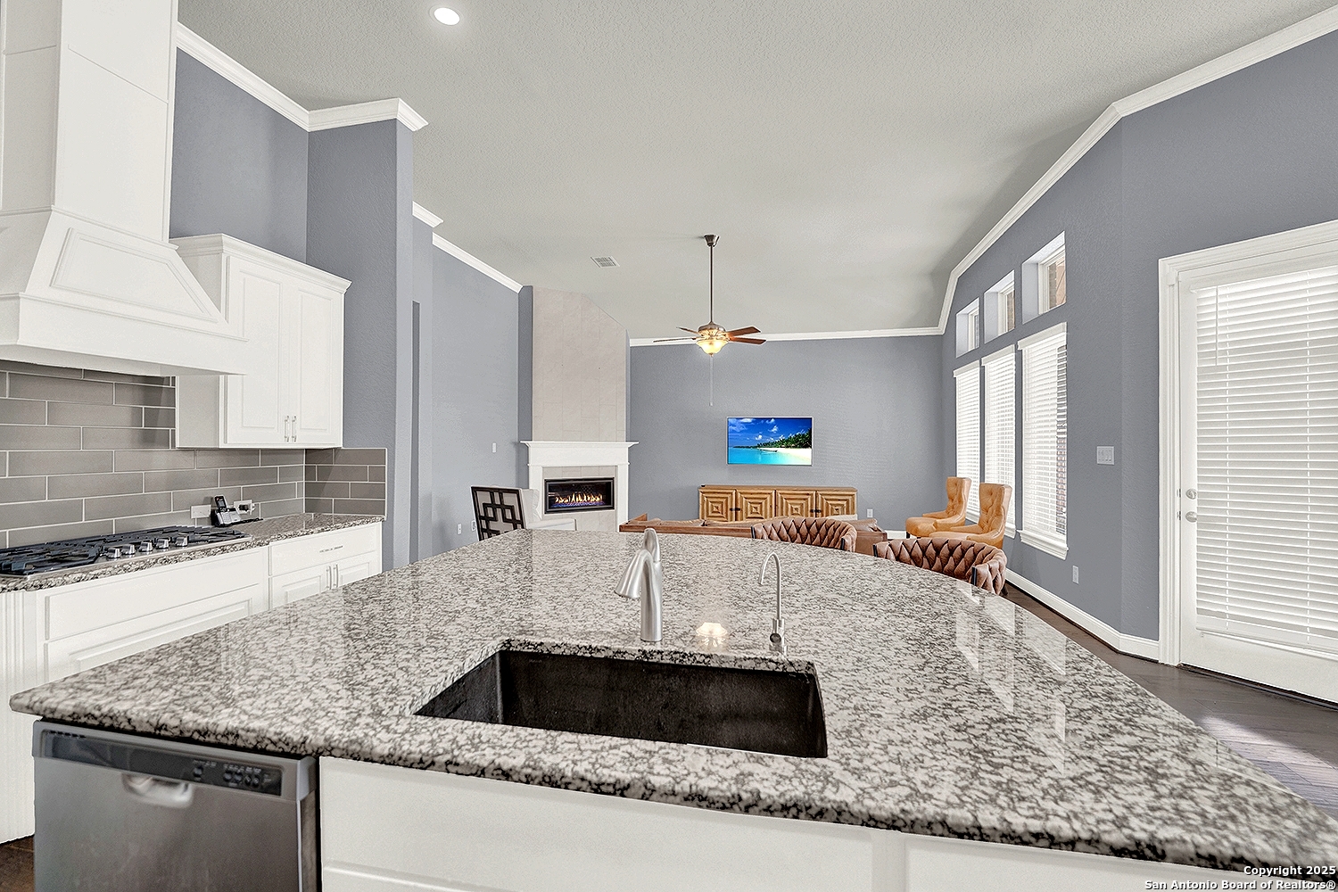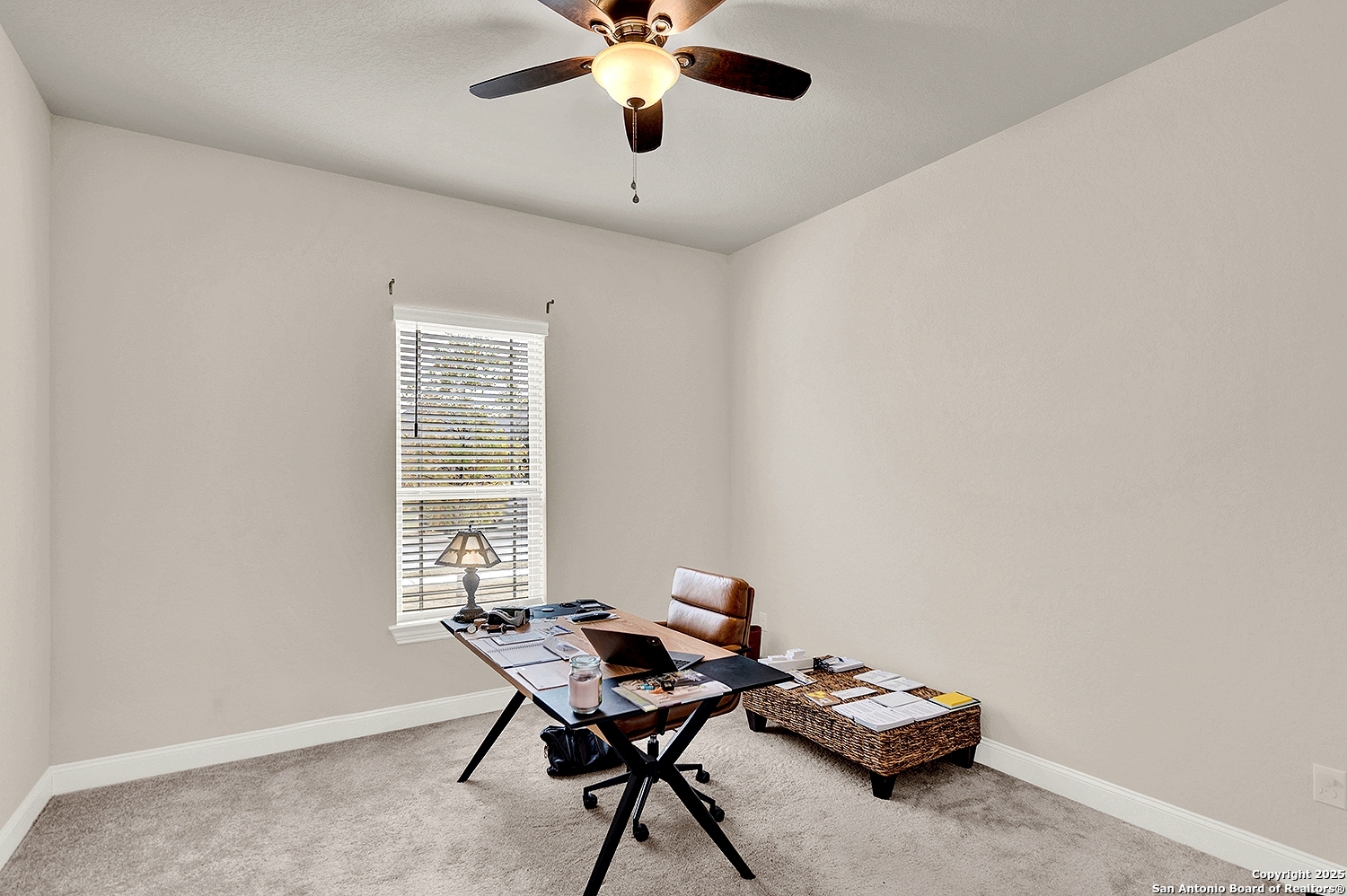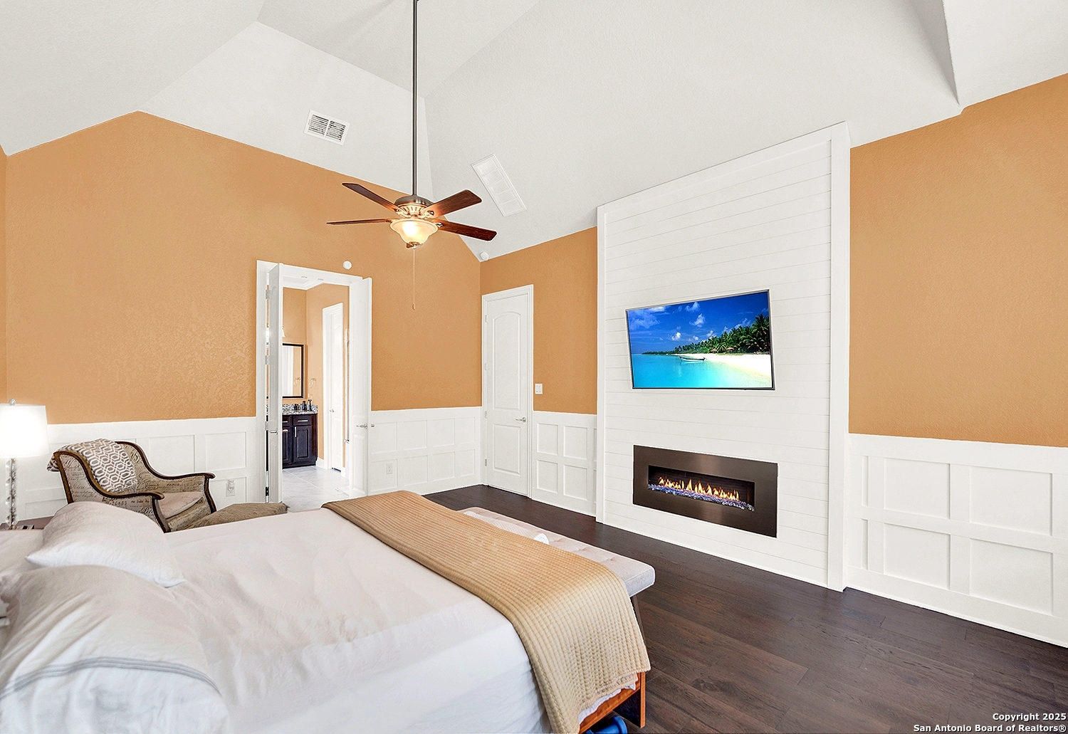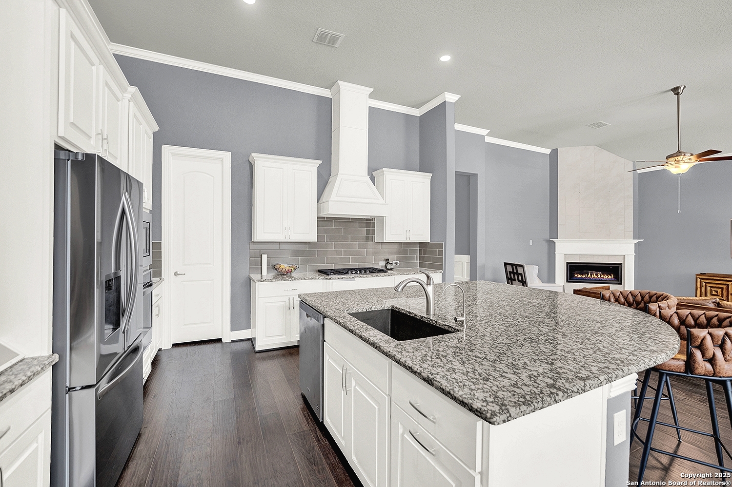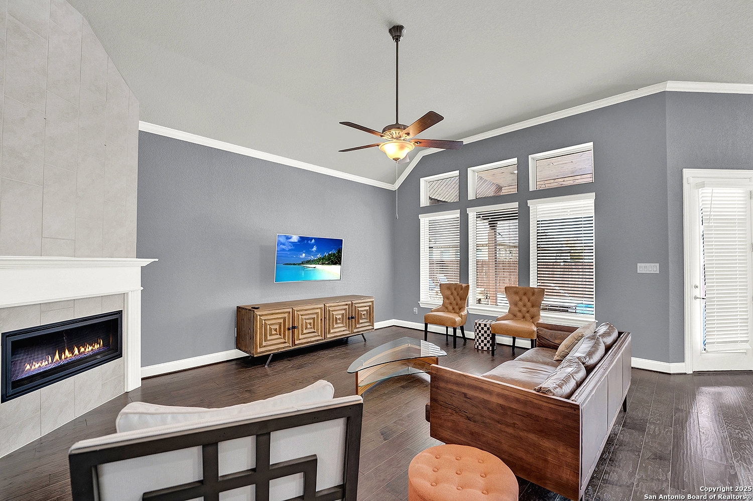 Pool! One story! Common sense layout and amazing upgrades, all in one home! This pheonomenal Gehan plan offers 3 generously- sized bedrooms, a flex space, 2.5 baths, and a 2-car garage complete with a water softener and refrigerator. Inside, thoughtfully customized upgrades elevate every room, complemented by walk-in closets throughout and two elegant fireplaces that add warmth and charm. The oversized covered patio-with its beautiful cedar plank ceiling-overlooks the sparkling pool, creating an ideal setting for outdoor living. The expansive primary suite also enjoys serene pool views and features a luxurious bath with a double split vanity, garden tub, and a walk-in shower with a bench. A secondary bathroom includes its own walk-in shower for added convenience. With low HOA dues and exceptional interior and exterior features, like wall paneling, decorative tray celings, and a custom pathway to the back yard, this home blends comfort, style, and value in every detail. Ideally located close to downtown San Antonio, Randolph Air Force Base, and offering easy access to Lackland Air Force Base and Fort Sam Houston, this property delivers unmatched convenience for work, travel, and entertainment. Come find your comfort within an awesome community!