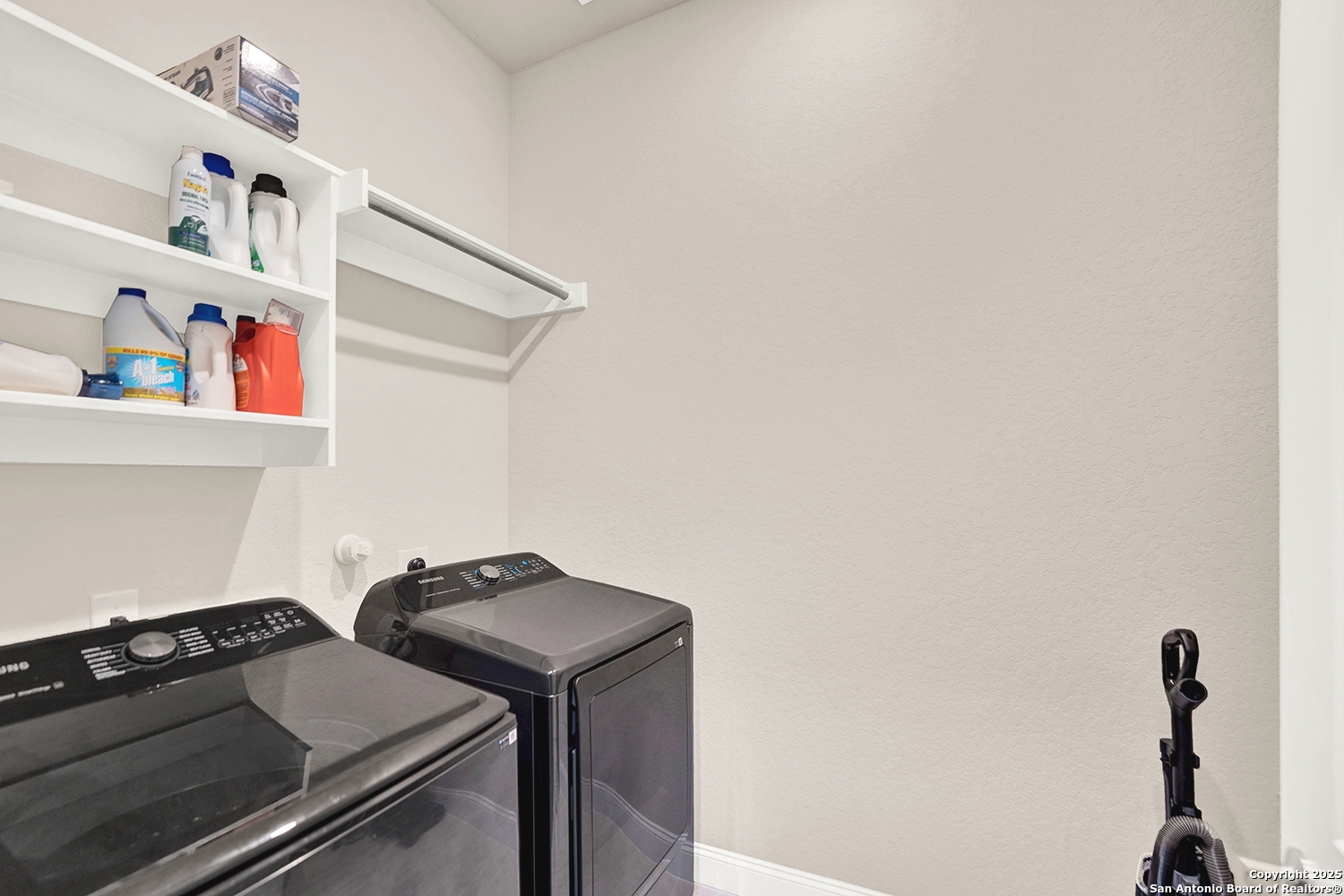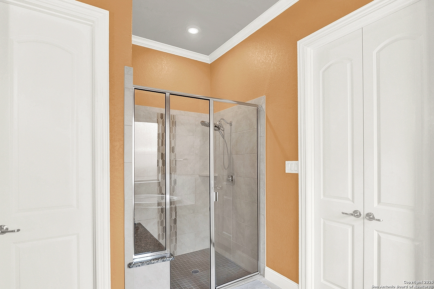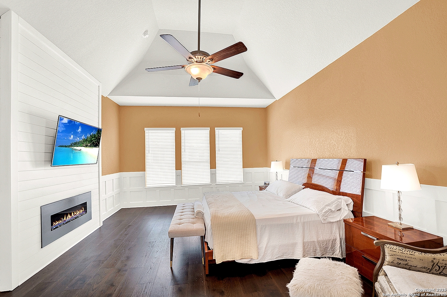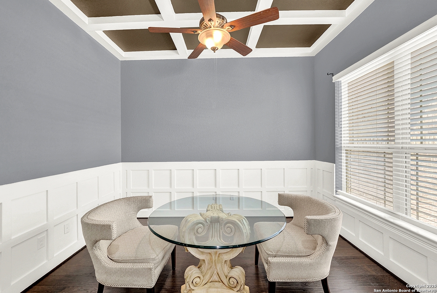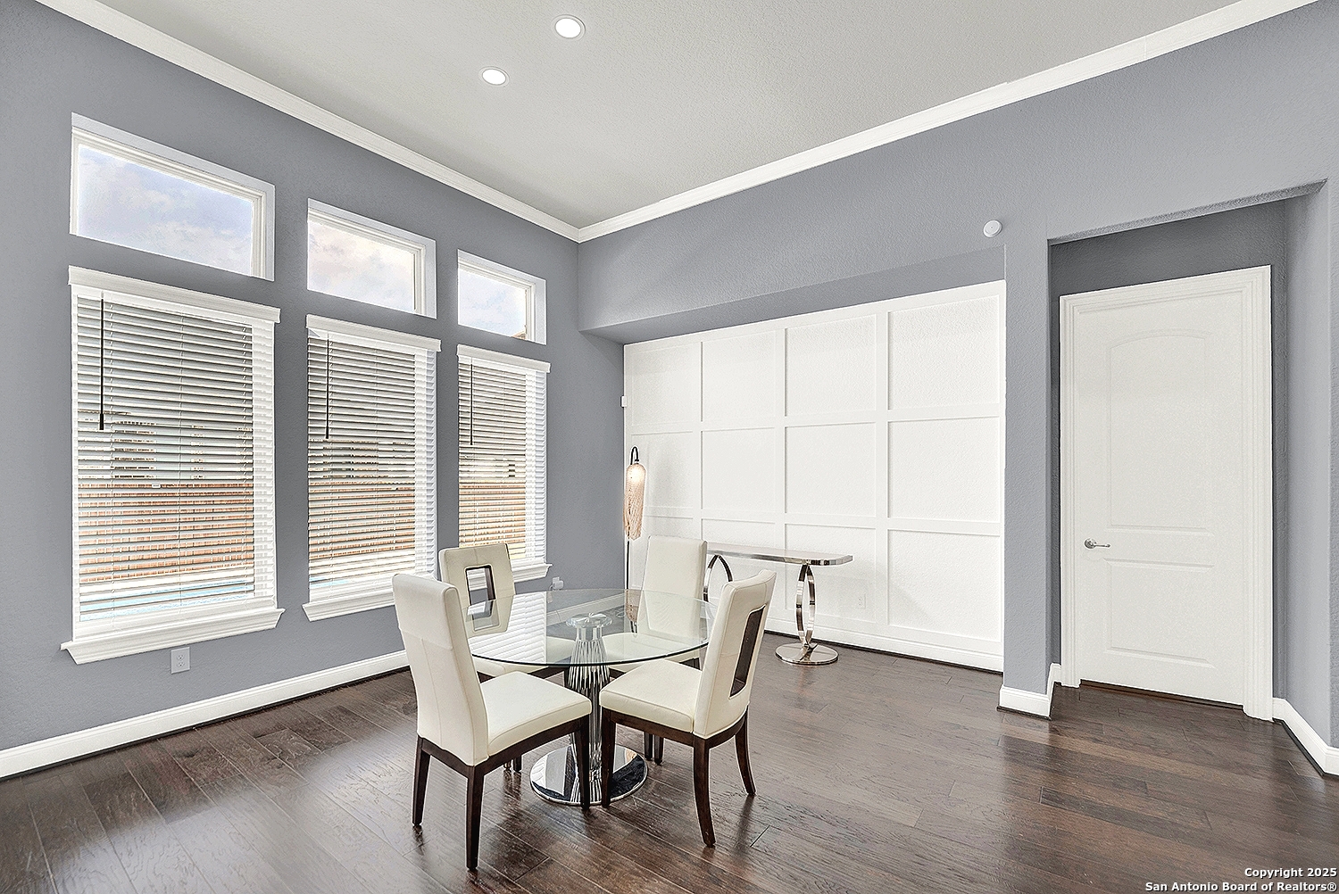 Pool! One story! Common sense layout and amazing upgrades, all in one home! This pheonomenal Gehan plan offers 3 generously- sized bedrooms, a flex space, 2.5 baths, and a 2-car garage complete with a water softener and refrigerator. Inside, thoughtfully customized upgrades elevate every room, complemented by walk-in closets throughout and two elegant fireplaces that add warmth and charm. The oversized covered patio-with its beautiful cedar plank ceiling-overlooks the sparkling pool, creating an ideal setting for outdoor living. The expansive primary suite also enjoys serene pool views and features a luxurious bath with a double split vanity, garden tub, and a walk-in shower with a bench. A secondary bathroom includes its own walk-in shower for added convenience. With low HOA dues and exceptional interior and exterior features, like wall paneling, decorative tray celings, and a custom pathway to the back yard, this home blends comfort, style, and value in every detail. Ideally located close to downtown San Antonio, Randolph Air Force Base, and offering easy access to Lackland Air Force Base and Fort Sam Houston, this property delivers unmatched convenience for work, travel, and entertainment. Come find your comfort within an awesome community!
