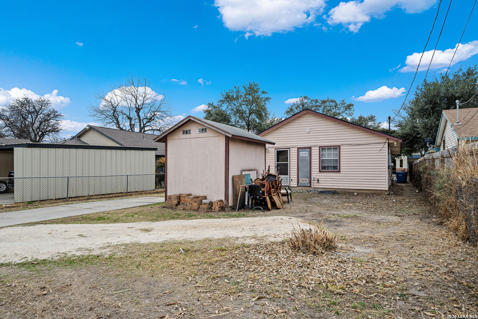 Located just 5 minutes from the UTSA Downtown campus, this property offers an affordable opportunity close to the city center. The home features a new black metal roof, a water heater only 3 years old and stainless steel appliances. Originally a 2 bedroom 1 bath, the living room was reconfigured to create a 3 bedroom layout for added versatility. The property also includes a small storage shed and a rear driveway. Priced well below tax appraisal, this presents a straightforward option for an owner occupant or investor looking for a low entry price on a well maintained home near downtown. Contact listing agent about an alternate flexible financing for qualified buyers.