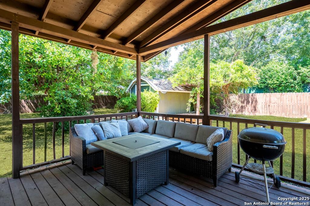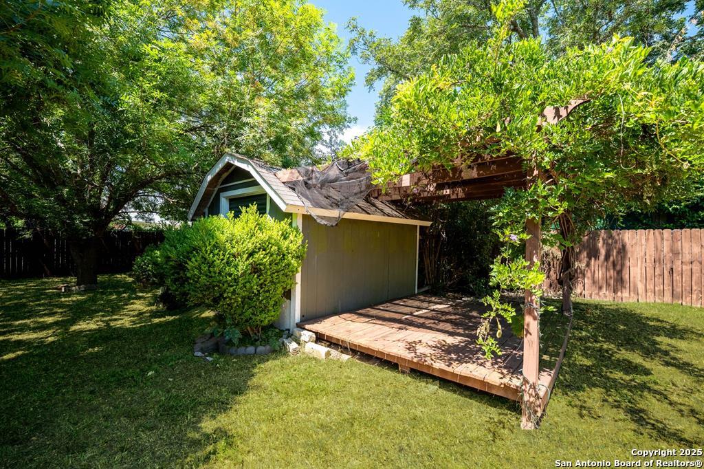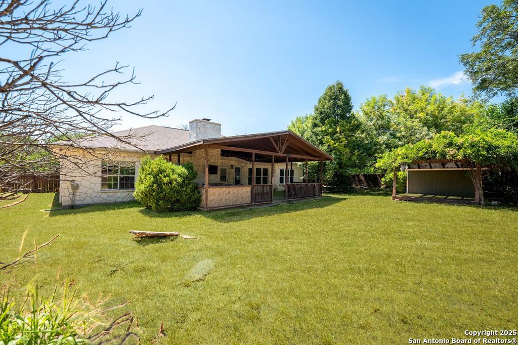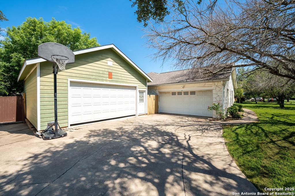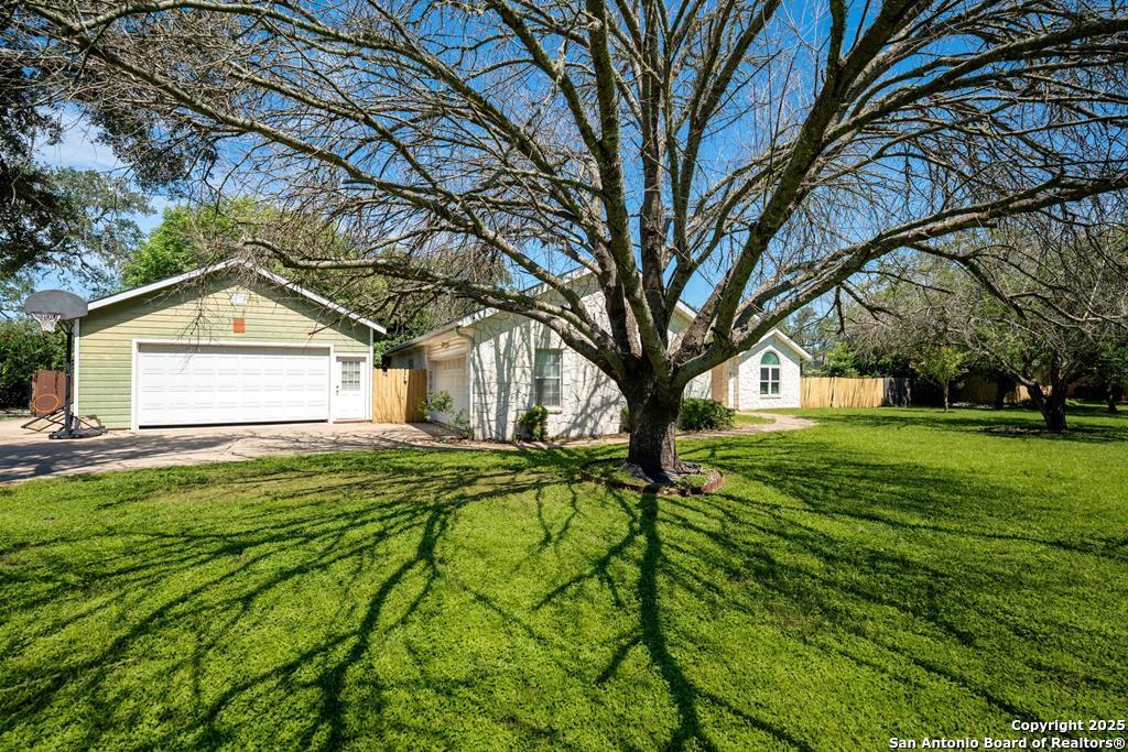 Located in the sought-after "The Woods" subdivision, this home sits on nearly half an acre, surrounded by mature trees and abundant wildlife. Featuring high ceilings, an open split-bedroom layout, and plenty of natural light, the home offers three bedrooms, designer sinks in tiled baths, and a kitchen with granite countertops, tile backsplash, and an island cooktop. The backyard is designed for entertaining, complete with a built-in patio serving counter, and a storage building with an attached pergola. A detached oversized two-car garage with epoxy floors and 220-amp wiring complements the attached two-car garage. Though some renovations are needed, the property includes a prior foundation repair with a lifetime warranty and is priced to sell by a motivated seller. HOA fees are just $25 per year, and water is provided through the community system.