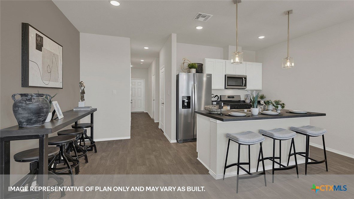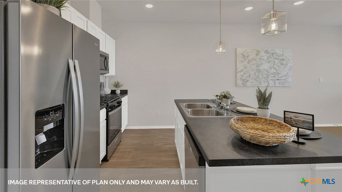 MOVE IN READY! The Linnet is one of our new two-story floorplans featured in our Bollinger community in Maxwell, Texas is a 1,419 square foot home which includes 3 bedrooms, 2.5 bathrooms and a 1 car garage. Our homes in Bollinger feature our modern farmhouse exterior. As you step inside, you’ll cross through the foyer, passing the powder room and staircase, and enter the dining room, kitchen, and family room. Built as an open concept, this space is sure to be the center of your home life and family activities. The kitchen features laminate countertops with 50/50 stainless steel drop-in bowl, 4” laminate backsplash, 36” upper cabinets and stainless-steel appliances, including a gas range. Off the kitchen is the pantry and hall closet. Upstairs you’ll find the 3 bedrooms and 2 full bathrooms. At the front of the home is the primary bedroom with an attached private bathroom, making the start of your day a seamless step from sleep to your morning routine. Enjoy the walk-in shower, laminate countertop, and a generously sized walk-in closet. The secondary bedrooms include a closet with shelving and the hall bathroom includes a shower/tub combination. The utility room and hall closet finish out the upstairs space. The Linnet includes vinyl flooring throughout the common areas of the home, and carpet in the bedrooms. All our new homes feature Bermuda sod, an irrigation system in the front and back yard, and a 6’ privacy fence around the back yard. This home features our America’s Smart Home base package, which includes the Video Front Doorbell, Front Door Deadbolt Lock, Home Hub, Thermostat, and Deako® Smart Switches.