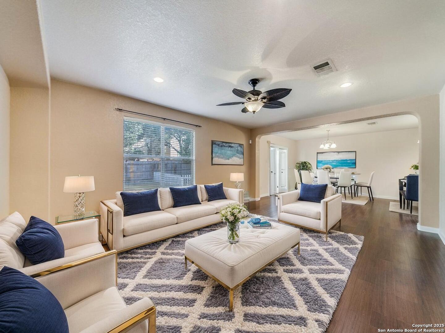 Competitively priced 4-bedroom home in the desirable Trails of Herff Ranch community! This spacious two-story offers an open floor plan with wood flooring throughout the main level. The kitchen features granite countertops, a large breakfast bar, and an expansive walk-in pantry, seamlessly connecting to the dining and living areas-perfect for entertaining. Upstairs, you'll find generously sized bedrooms along with a versatile second living area or game room. Enjoy the neighborhood amenities, including a community pool, playground, sport courts, and walking trails. Conveniently located within walking distance to Cibolo Creek Elementary and just minutes from downtown Boerne!