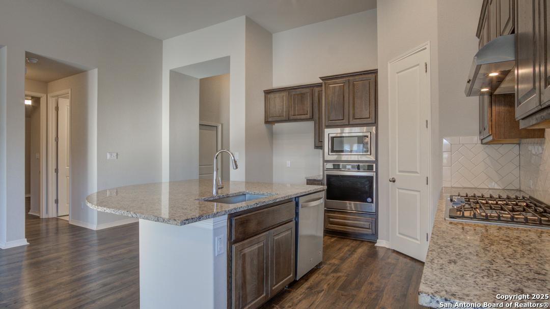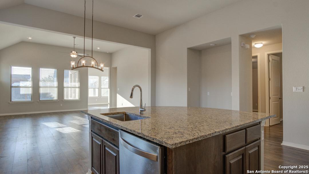 "La Cima Master Planned Community", San Marcos, 3 bedroom, 2 bath, Approx 2,106 square feet, Level Corner lot, one story, 4 sides masonry, Flex/Office, Open Island Kitchen, Granite counter tops, overlooking spacious dining and living area, High Ceilings, laminate wood flooring, ceramic tile, relaxing Sun Room, 2 good sized spare bedrooms, 2 car garage, water softener, relaxing front porch, COVENTRY Home built in 2021, Covered Rear patio with gas grill hookup at patio for fire pit, stone and brick extended patio, crushed base landscaping, Sprinkler system, Show your buyers to this gently used home!!