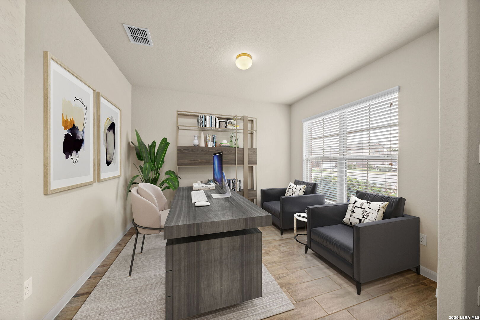Welcome to this spacious and move-in ready two-story home in the desirable Remuda Ranch community. Built in 2017, this 4-bedroom, 2.5-bath home offers approximately 2,393 square feet of well-designed living space with an open and functional layout. The main level features a versatile front room that can serve as a home office or formal dining area, along with a bright and open living space that flows seamlessly into the kitchen and breakfast area-ideal for everyday living and entertaining. The kitchen includes solid surface countertops, an island, breakfast bar, and ample cabinet space. The primary suite is conveniently located on the first floor and features a spacious layout, walk-in closet, and a private bath with dual vanities, a soaking tub, and separate shower. Upstairs, you'll find a large loft/game room along with generously sized secondary bedrooms, providing flexible space for work, play, or relaxation. Additional highlights include a well-appointed laundry room with storage and counter space, high ceilings, multiple living and dining areas, and an open floor plan designed for comfort and functionality. Step outside to a sizable backyard with a privacy fence-perfect for outdoor enjoyment, pets, or future customization. Residents enjoy access to community amenities including a pool and playground. Conveniently located near Culebra Rd, shopping, dining, and major thoroughfares, this home offers both space and convenience in a growing area.