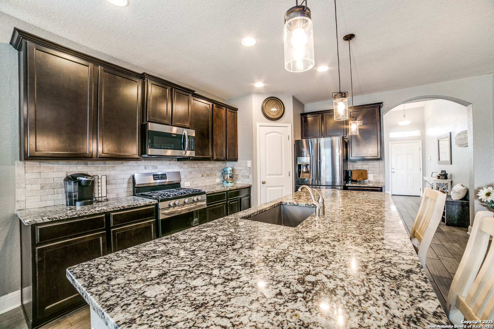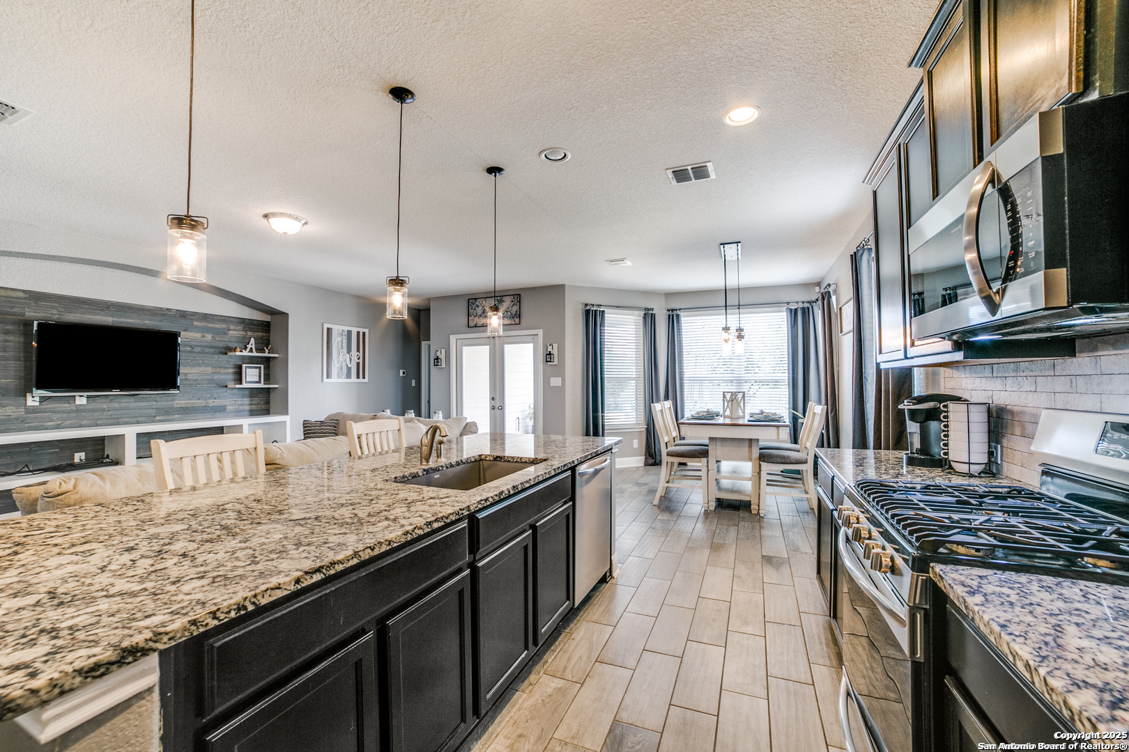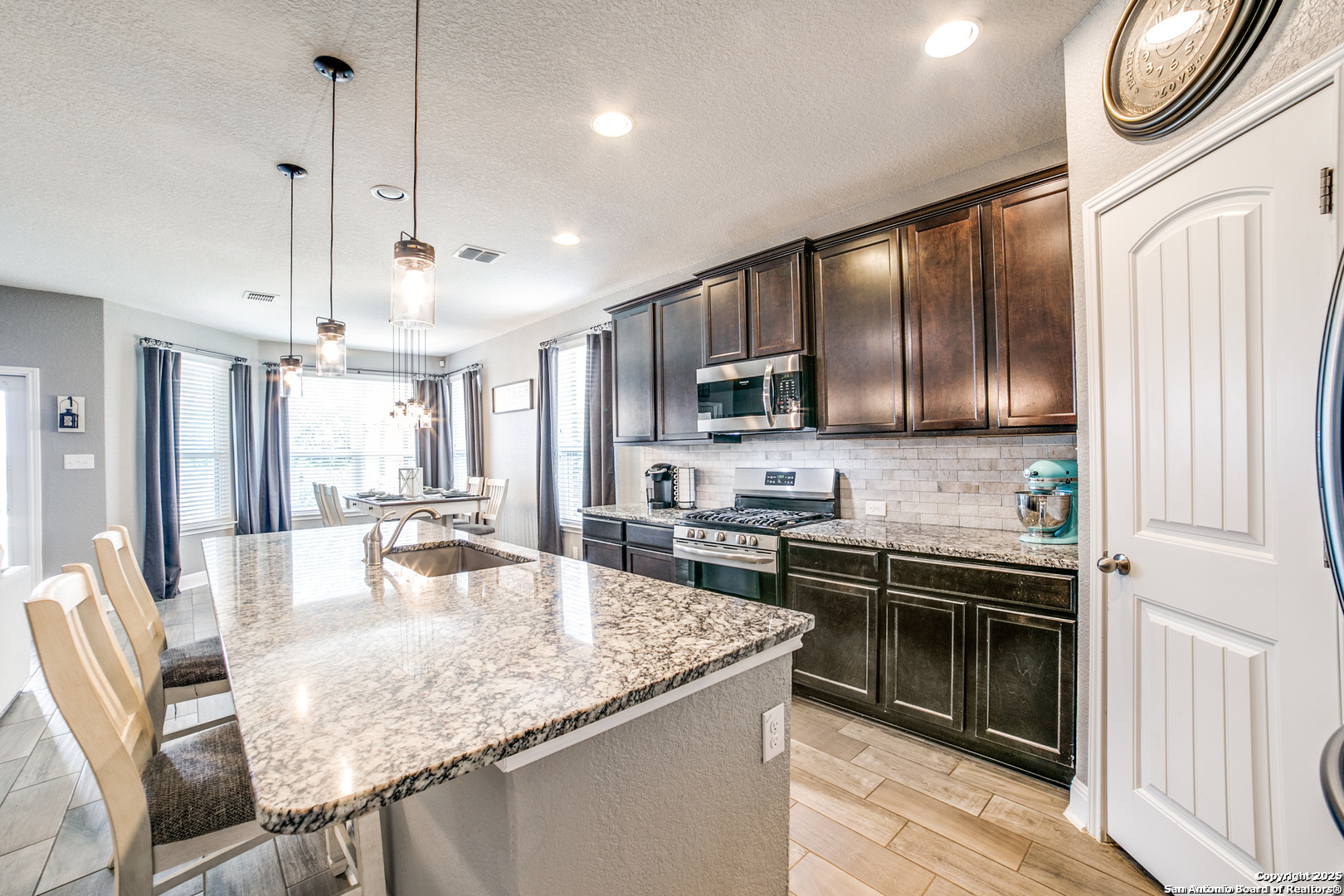This home will knock your socks off! Located on a huge private greenbelt lot in desirable Alamo Ranch! The balcony provides an excellent view of firework shows at Sea World! First floor master suite is a spacious retreat. Upstairs you will enjoy the gameroom, media room equipped with surround sound, 3 bedrooms and 2 full baths! Excellent location within minutes of shopping, NISD schools and access to loop 1604 & HWY 151.