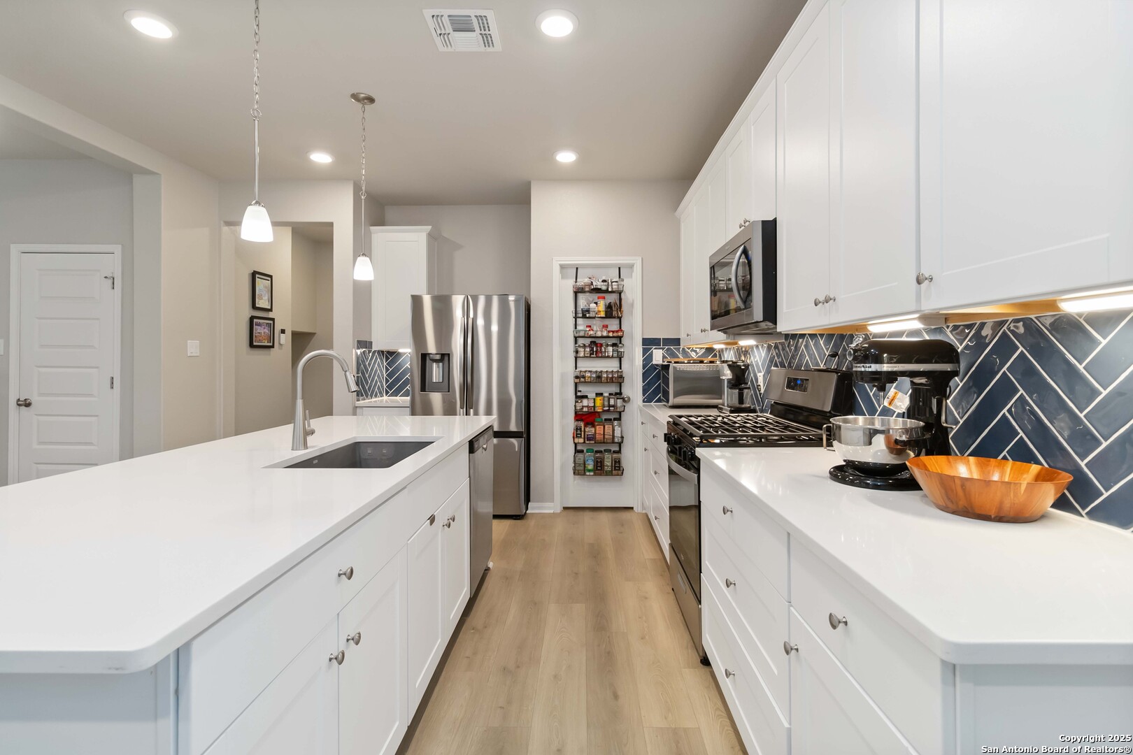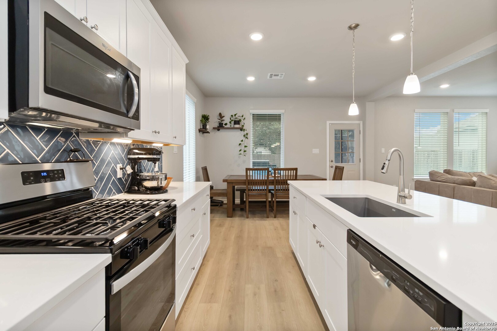 Why wait to build when you can move right into this nearly new, lightly lived-in home that's less than 2 years old? Perfectly priced and beautifully maintained, this stunning residence offers all the benefits of new construction, without the wait or the premium price tag. Step inside to find high-end finishes and a thoughtfully designed floor plan that blends style, comfort, and flexibility. The four spacious bedrooms provide plenty of options for a home office, guest suite, or playroom, whatever fits your lifestyle best. You'll love the modern kitchen with sleek countertops, quality cabinetry, and stainless steel appliances, opening seamlessly to a bright, open-concept living area, perfect for both relaxing and entertaining. Elegant flooring, upgraded fixtures, and designer touches throughout give this home a polished, move-in-ready feel. Outside, enjoy a covered patio ideal for gatherings, pets, or quiet evenings under the Texas sky. Located in a highly sought-after community near top-rated schools, shopping, dining, and major commuter routes, this home offers the ultimate in convenience and modern living. Don't miss this exceptional opportunity to own a like-new home at a competitive price, schedule your private showing today! Don't miss the Virtual Tour Video *Special Financing Options Available Through Sirva Mortgage