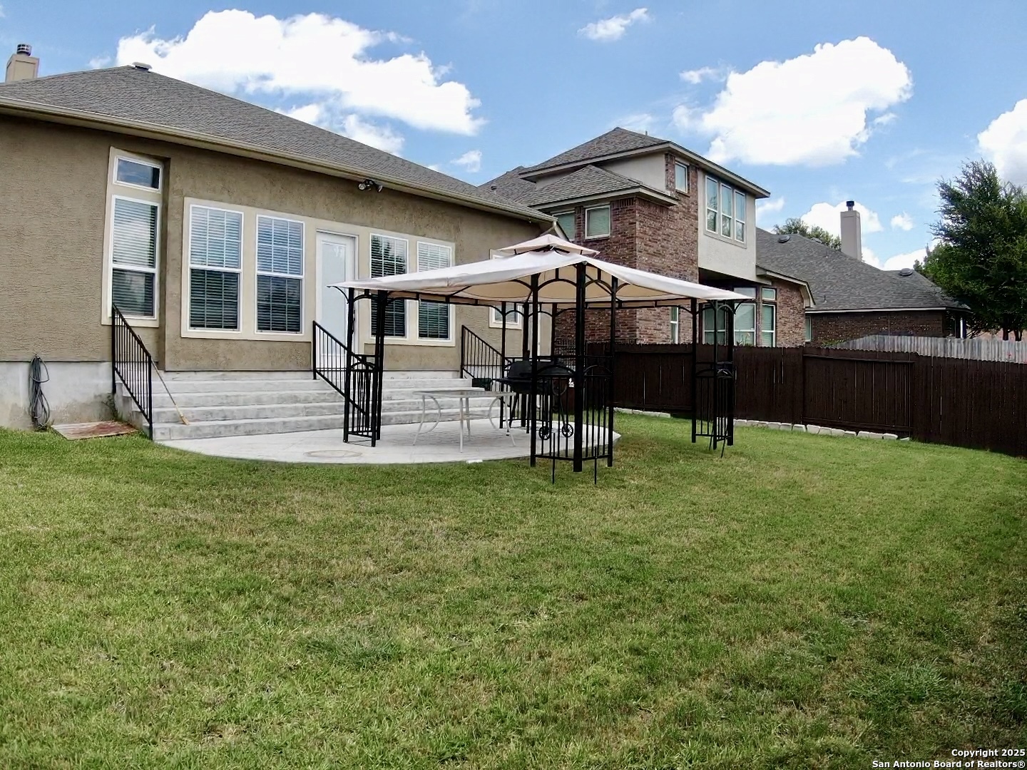 Stunning one-story home located in a quiet, gated community with exceptional designer upgrades throughout. This open-concept floor plan features rich wood-look tile flooring, abundant natural light, and a striking stone fireplace with hearth and mantel. The gourmet kitchen offers a large granite island with bar seating, 42" cabinets, stainless steel appliances, a gas cooktop, walk-in pantry, and a convenient built-in workstation-ideal for remote work or meal planning. A versatile study off the entry can serve as a home office, gym, or guest room. The enclosed patio with natural gas hookup extends the living area, providing the perfect setting for entertaining, relaxation or even a library/reading room. The spacious primary suite includes dual vanities, an oversized walk-in shower, and a jetted garden tub. Additional features include a water softener and filtration system, irrigation system, natural gas heat, and a utility room conveniently located near the kitchen. Thoughtful upgrades and quality finishes throughout make this home a perfect blend of style, comfort, and functionality. Ask about closing cost assistance. Realtor is related to seller.