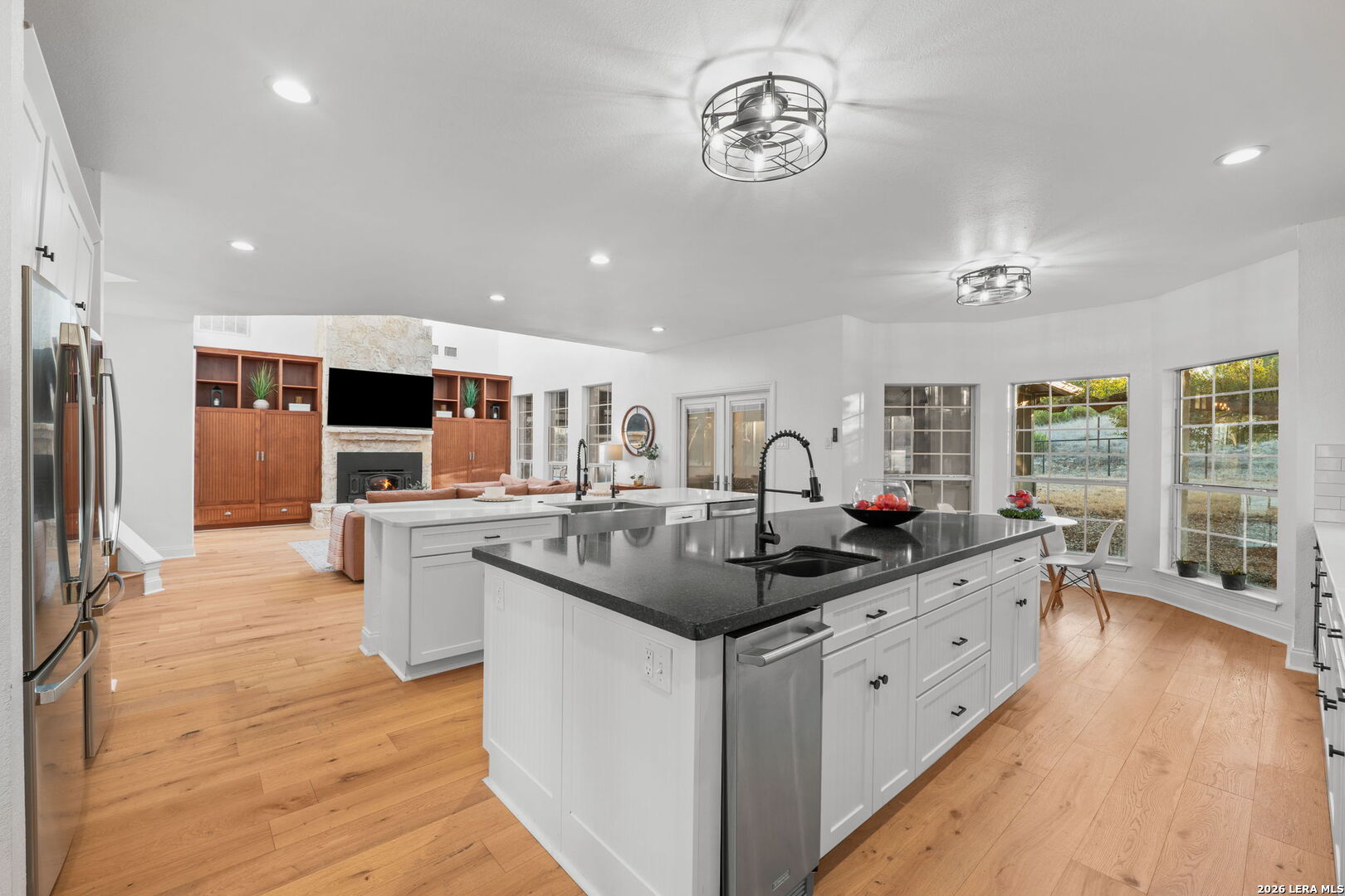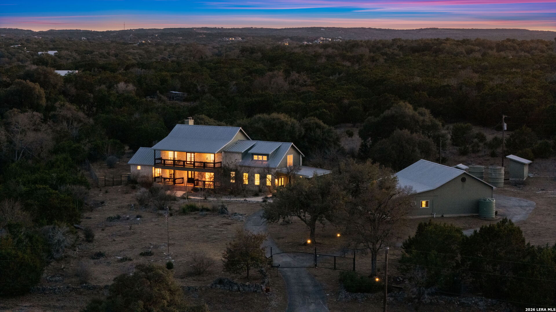 Your Texas Hill Country Legacy Awaits: 12.87 Private Acres with Neighborhood River Access & Endless Possibilities. Discover true Hill Country living on this exceptional 12.87-acre estate in the prestigious community of River Mountain Ranch, Boerne. This rare double-lot property combines a stunning 4,722 sq ft four-bedroom residence, a massive 2,400 sq ft climate-controlled workshop, and the space and flexibility to build your dream barn, guest house, or second home-all behind your private gate in a neighborhood with exclusive Guadalupe River access. Luxury Home Designed for Hill Country Living: The thoughtfully designed main residence places the primary suite and main living areas on the first floor for effortless everyday living. A dramatic floor-to-ceiling stone fireplace creates a stunning focal point, warming both the living room and the primary suite's private sitting area. The primary bedroom is flooded with natural light from oversized windows on three sides, including glass doors opening to your expansive backyard. Dual walk-in closets and a spa-inspired bathroom with double vanities, soaking tub, and separate shower complete this private retreat. The gourmet and entertainer's kitchen features double islands with seating for a crowd and a sun-drenched breakfast nook overlooking the peaceful backyard. Multiple living and dining areas provide space for gatherings of any size, while abundant storage keeps everything organized. Upstairs, three oversized bedrooms with generous closets surround a massive 800 sq ft bonus room-perfect as a game room, media lounge, home office, or homeschool space. There's room to easily add a fifth bedroom, while maintaining a flexible living space. Step onto the covered second-story balcony to take in sweeping Hill Country vistas. The converted garage space offers an ideal home gym or craft room, while the remaining garage, carport, and workshop provide covered parking for six+ vehicles. Acreage Ready for Horses, Chickens & Your Vision: The magic of this property lies in its possibilities. With 12.87 acres on a double lot, you have the rare opportunity to add a second residence, build a barn for horses, or create your own hobby farm paradise. Multiple flat building sites with breathtaking Hill Country views await your plans. The property already includes an advanced poultry coop, hunting blind, storage sheds, and pump house-everything you need to start your Hill Country homestead. Outdoor living spaces abound: screened porch, pergola, and multiple gathering areas within a fully fenced yard with both walk-through and drive-through gates. Horses and chickens are welcome here, and bow hunting is permitted throughout River Mountain Ranch. Professional Workshop & Modern Systems: The detached 2,400 sq ft climate-controlled workshop with its own HVAC and full bathroom serves as a professional workspace, artist studio, extensive storage, or potential guest quarters. Recent upgrades include a metal roof (2016), updated HVAC systems for both buildings, a new water heater, a new built-in whole-house vacuum system, an automated gate entry, and a new well booster pump-providing peace of mind and long-term value. River Mountain Ranch: Premier Hill Country Community This exclusive gated community in Kendall County offers three homeowner parks with private Guadalupe River access for kayaking, fishing, swimming, and family fun. Cypress-lined creeks, majestic live oaks, and abundant wildlife including white-tailed deer and wild turkey create an authentic Texas Hill Country experience. No city taxes. Award-winning Boerne ISD schools. Located just 20 minutes from historic downtown Boerne and 40 minutes from San Antonio, this property offers the perfect balance of country privacy and city convenience in one of Texas's fastest-growing luxury markets. Your Hill Country estate with acreage for horses, second home potential, and luxury living awaits.