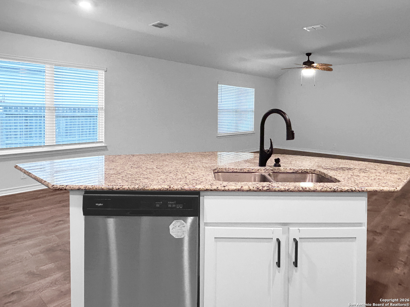 Spacious 4-bedroom, 2-bath home offering 1,904 sq ft in a popular and growing Northwest San Antonio location near Government Canyon State Natural Area-perfect for weekend hikes and outdoor time. Inside, enjoy an open-concept layout with an island kitchen overlooking the living area, granite countertops, and stainless steel appliances, plus fresh interior paint throughout. Laminate flooring runs through the main living spaces with carpet in the bedrooms for comfort. The primary suite features a walk-in closet and a relaxing bath with a separate garden tub and shower. Outside, you'll find a large backyard and a 2-car garage, all conveniently close to shopping, dining, and everyday essentials.