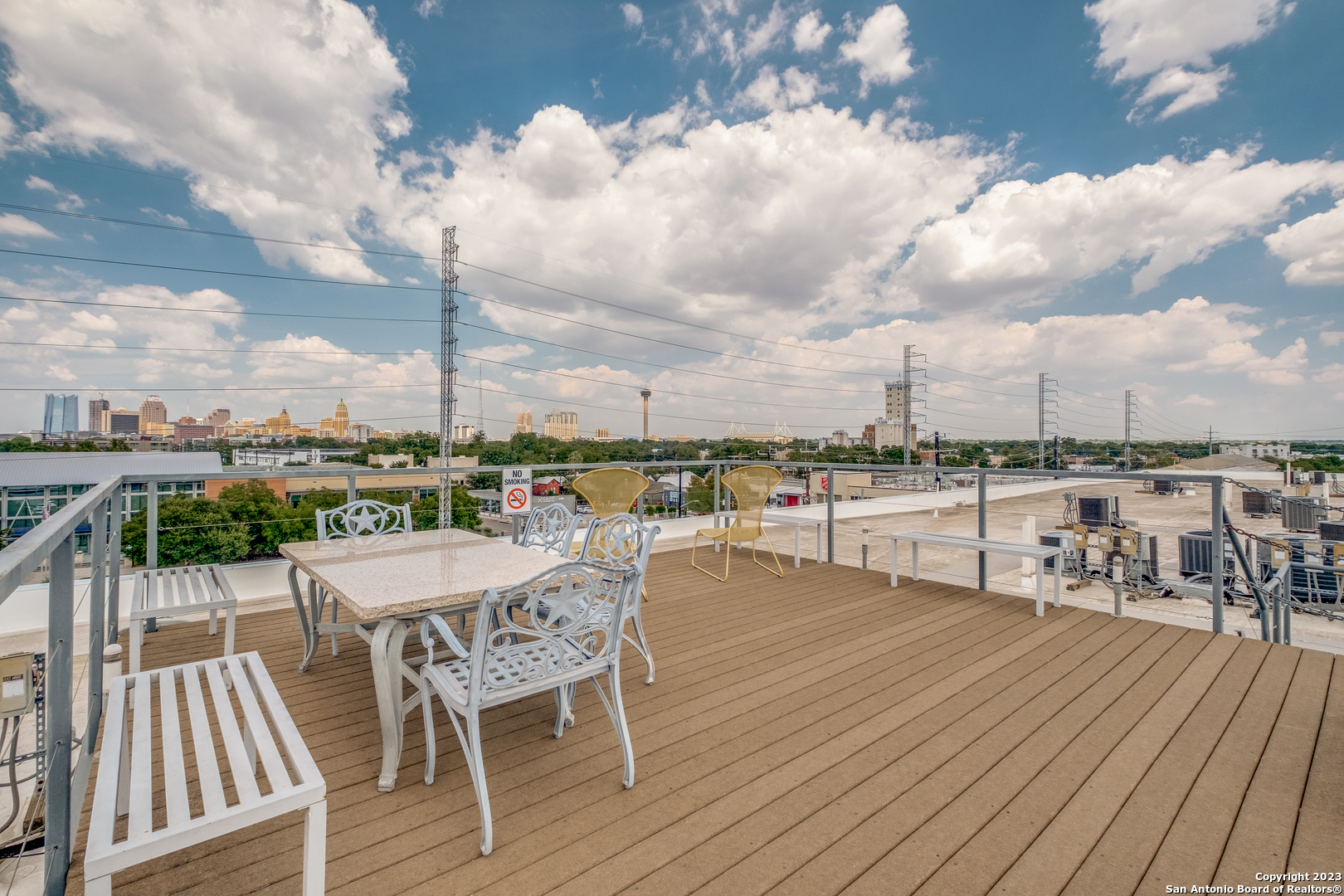Fabulous loft in the South End Lofts building with stunning views of the City! Live in the heart of the excitement of Southtown. You'll be walking distance to Local Restaurants, Art Galleries, Breweries, Coffee Shops, Blue Star, The Riverwalk and more. This unit includes beautiful bamboo and ceramic tile flooring throughout and a spacious open layout enveloped in natural light. The island kitchen includes granite countertops, stainless steel appliances ad opens to the living area. Lots of great wall space for Art! A full bath includes a stacked washer/dryer, a large walk-in shower and plenty of closet space. Secured entry to the condos at the street level, at the building level and to the parking entry. Parking is a breeze with an assigned covered parking spot convenient to your entrance. The condos feature a 24-hour gym, bike storage, a sparkling pool and access to the amazing outdoor rooftop lounge with panoramic views of San Antonio. Enjoy a true lock and leave lifestyle with this condo!