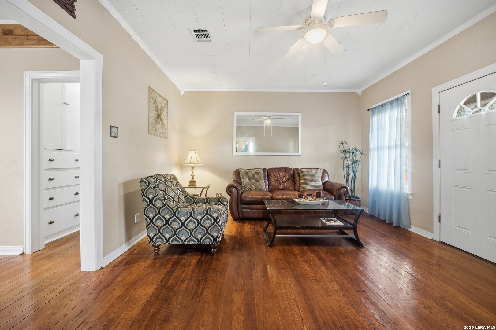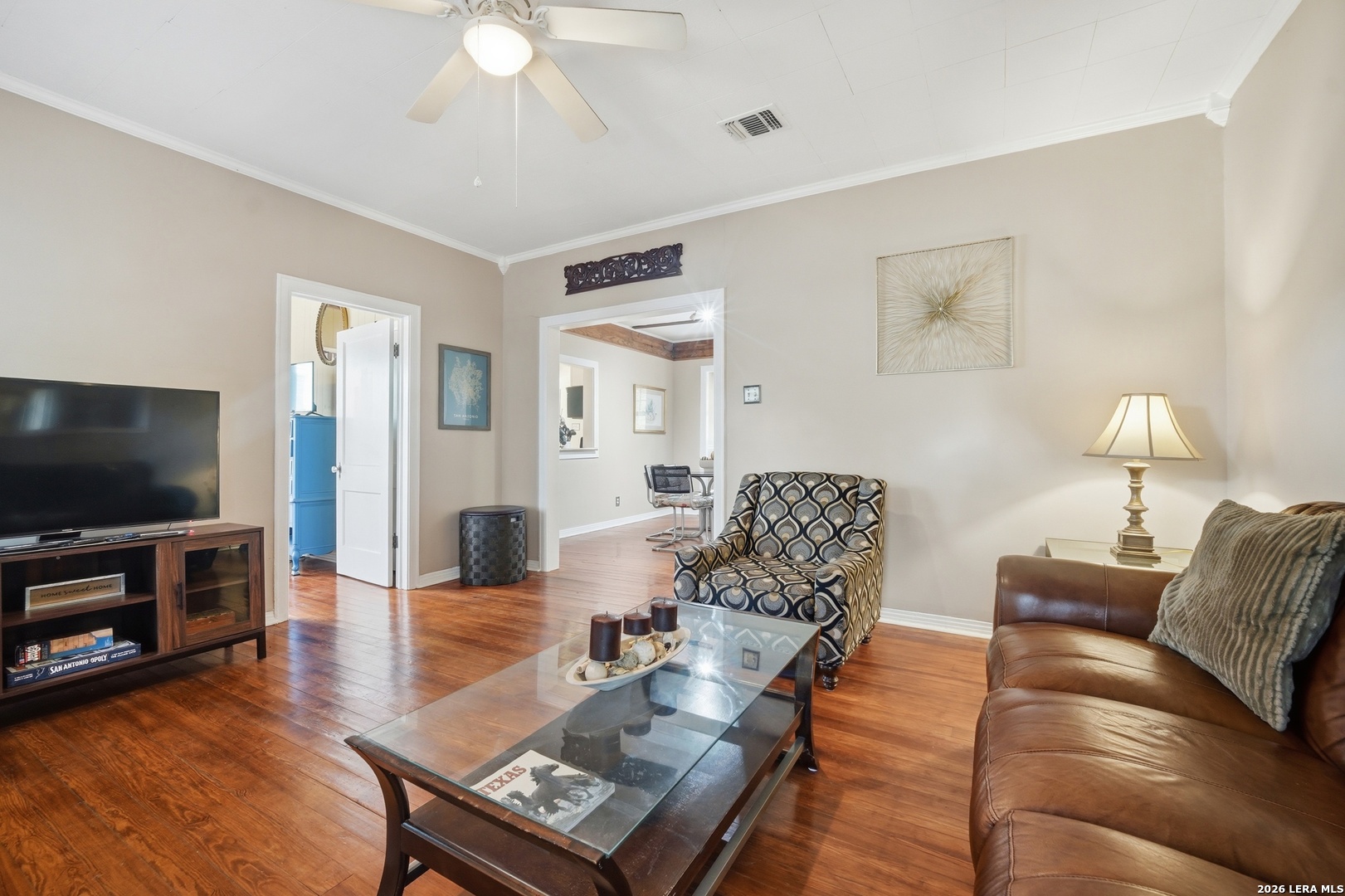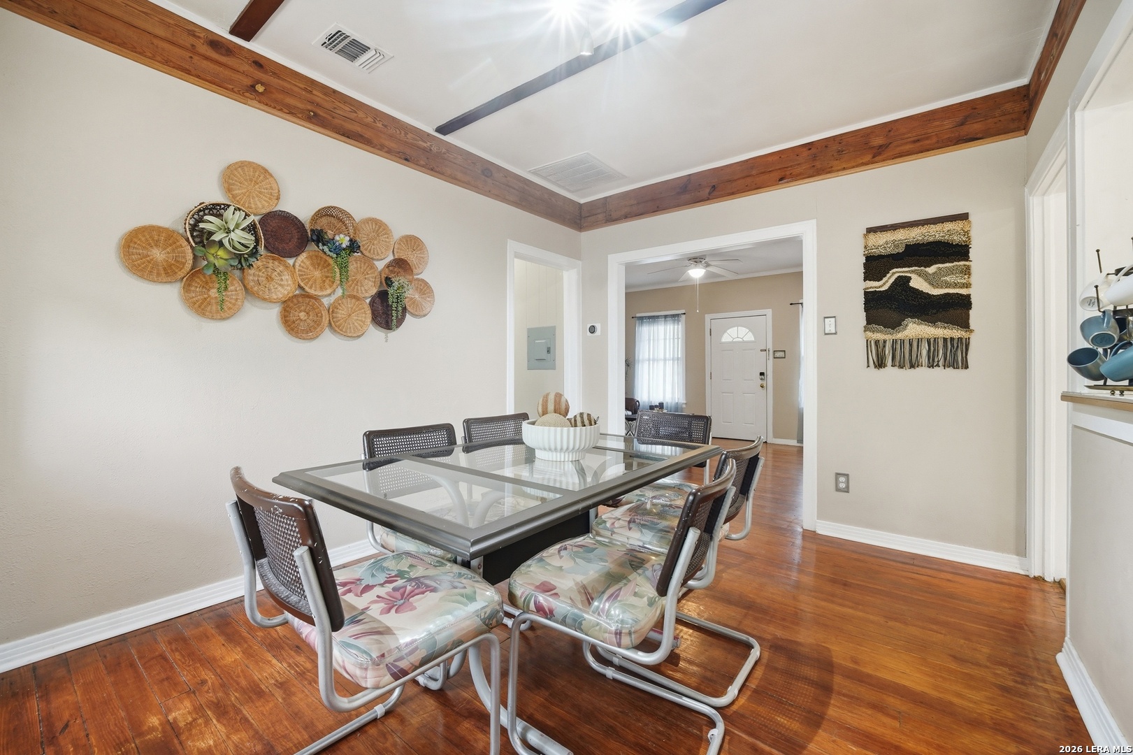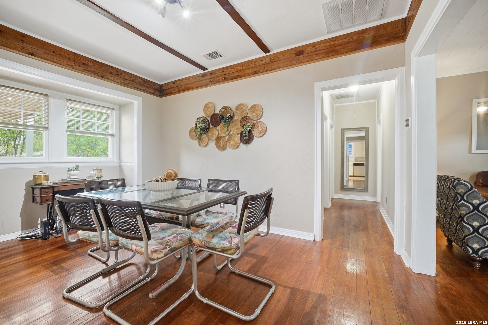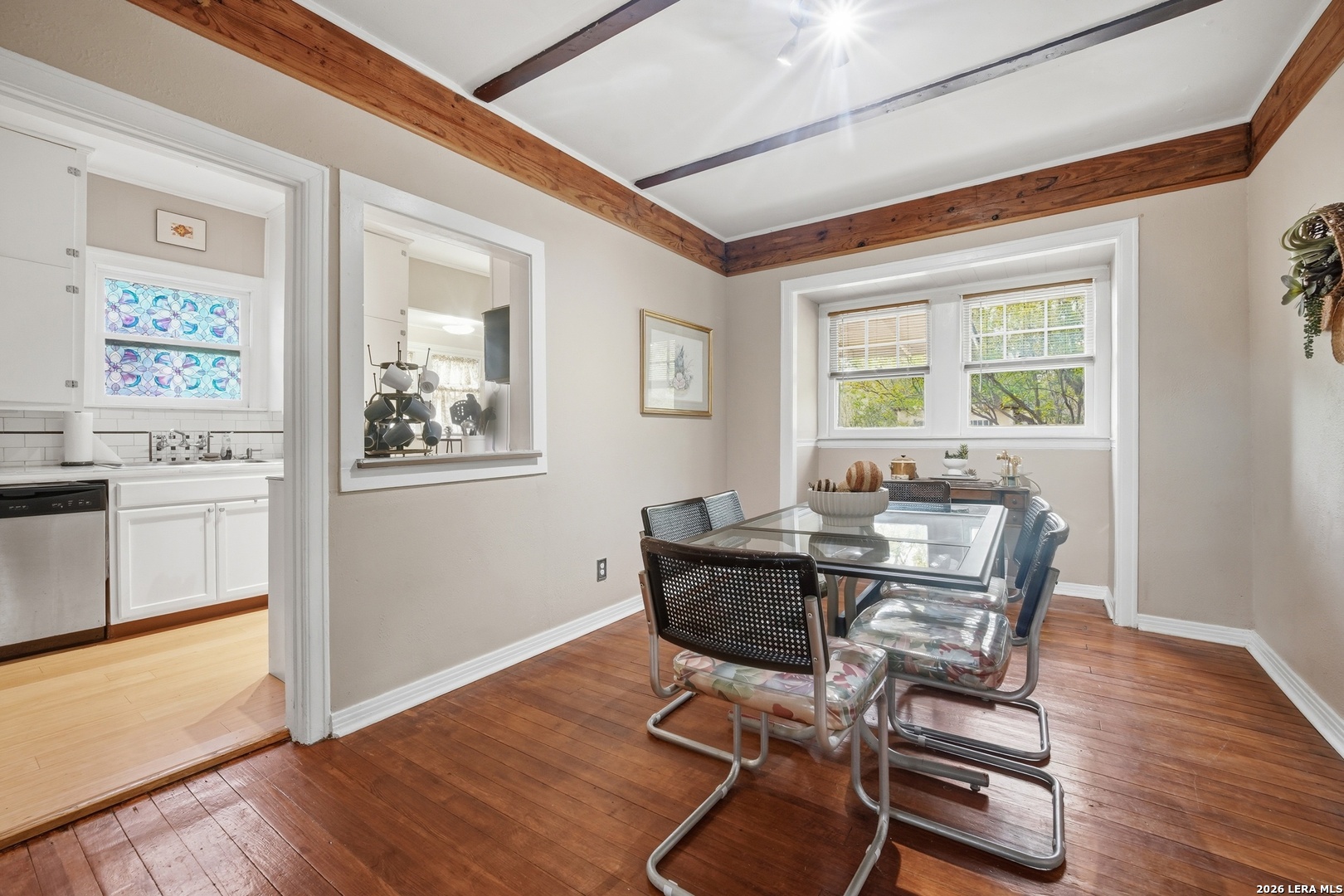 Charming 3-bedroom, 1-bath home located in the heart of San Antonio! This cozy property offers a warm and inviting layout with beautiful wood flooring, a spacious living area, and a dedicated dining space perfect for entertaining or everyday living. The kitchen features modern appliances, ample cabinet storage, and a functional layout that makes meal prep easy. Enjoy relaxing on the covered front porch or unwinding in the private yard. The home's classic character is complemented by thoughtful updates, giving it both charm and convenience. Ideally situated with quick access to the airport, downtown San Antonio, and the Medical Center, this home is perfect for anyone looking for comfort and convenience in a central location. Don't miss this opportunity-schedule your showing today!