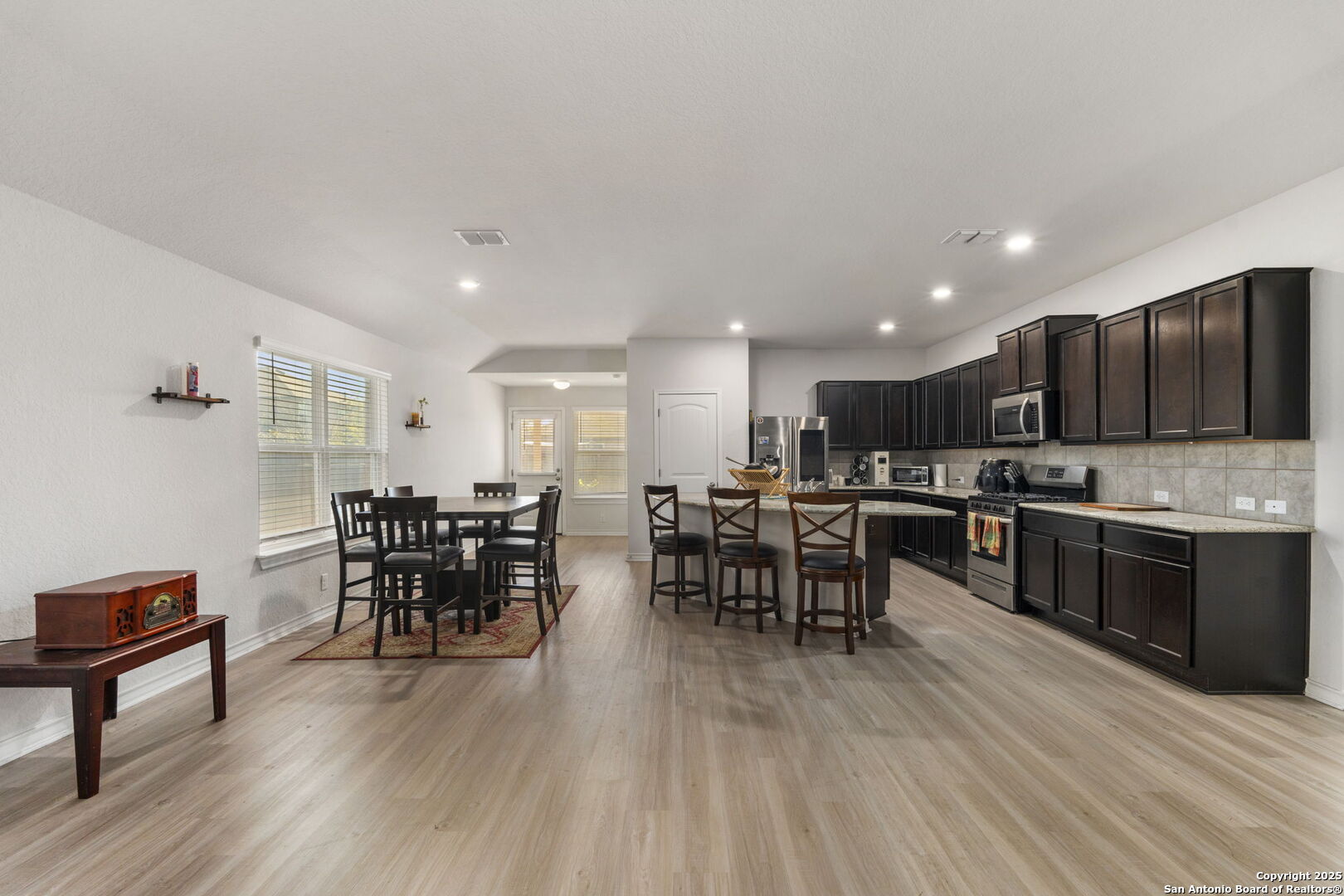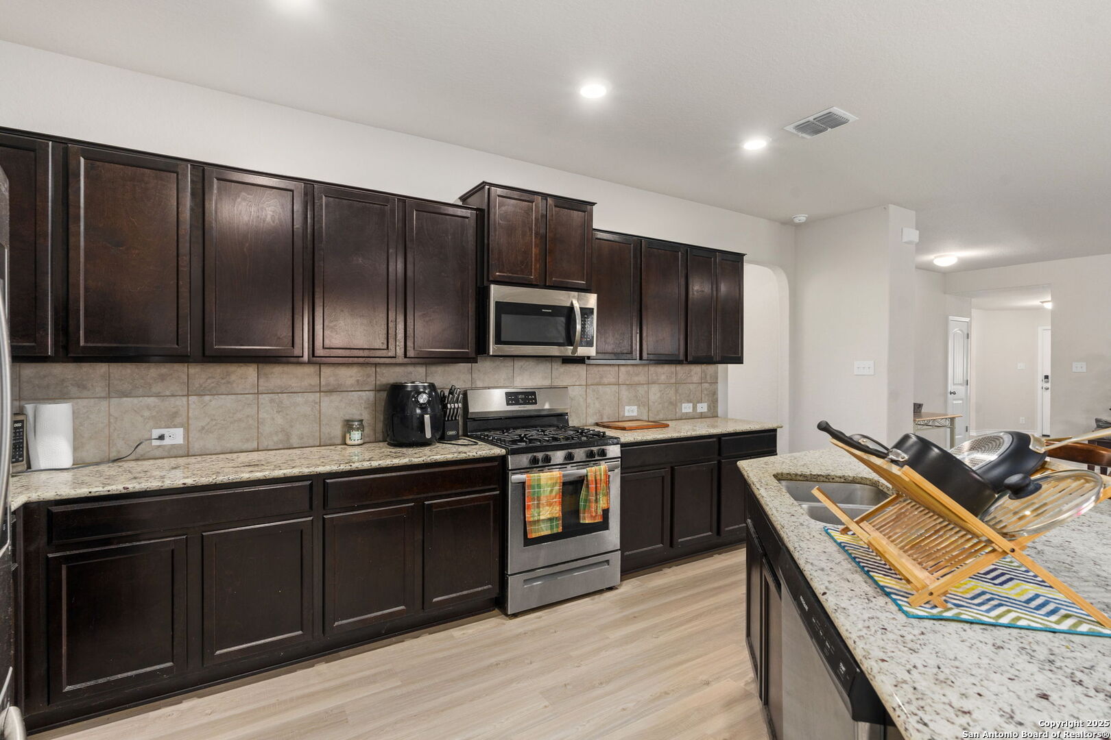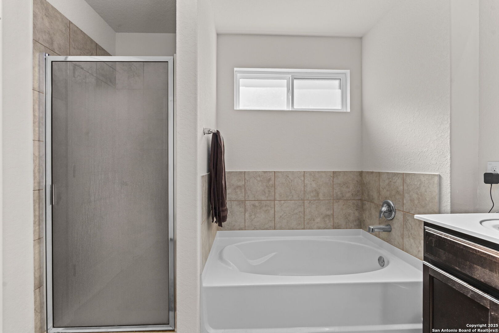 Welcome to this beautifully maintained 4-bedroom, 2-bath home located in the desirable Valley Ranch community of San Antonio, TX. Situated on a spacious corner lot, this open-concept gem is perfect for modern living and entertaining. As you enter, you'll be greeted by a light-filled, open floor plan that seamlessly connects the living, dining, and kitchen areas. The kitchen boasts granite countertops, gas cooking, refrigerator includedand plenty of storage space, making it an ideal space for both everyday living and hosting guests.The Primary suite offers a private retreat with a luxurious en-suite bath, featuring a large walk-in shower, Garden tub, double vanity, washer and dryer inlcluded and generous closet space. Three additional bedrooms provide ample space for family, guests, or a home office. Step outside to the corner lot, where you'll find a fully fenced yard, offering privacy and plenty of room for outdoor activities. Whether you're enjoying the sun on the patio or not. You'll the great amenities of this community to include: Fitness Ctr, Outdoor Paviion, Basket & tennis courts, playground and the amazing resort style with water slides.