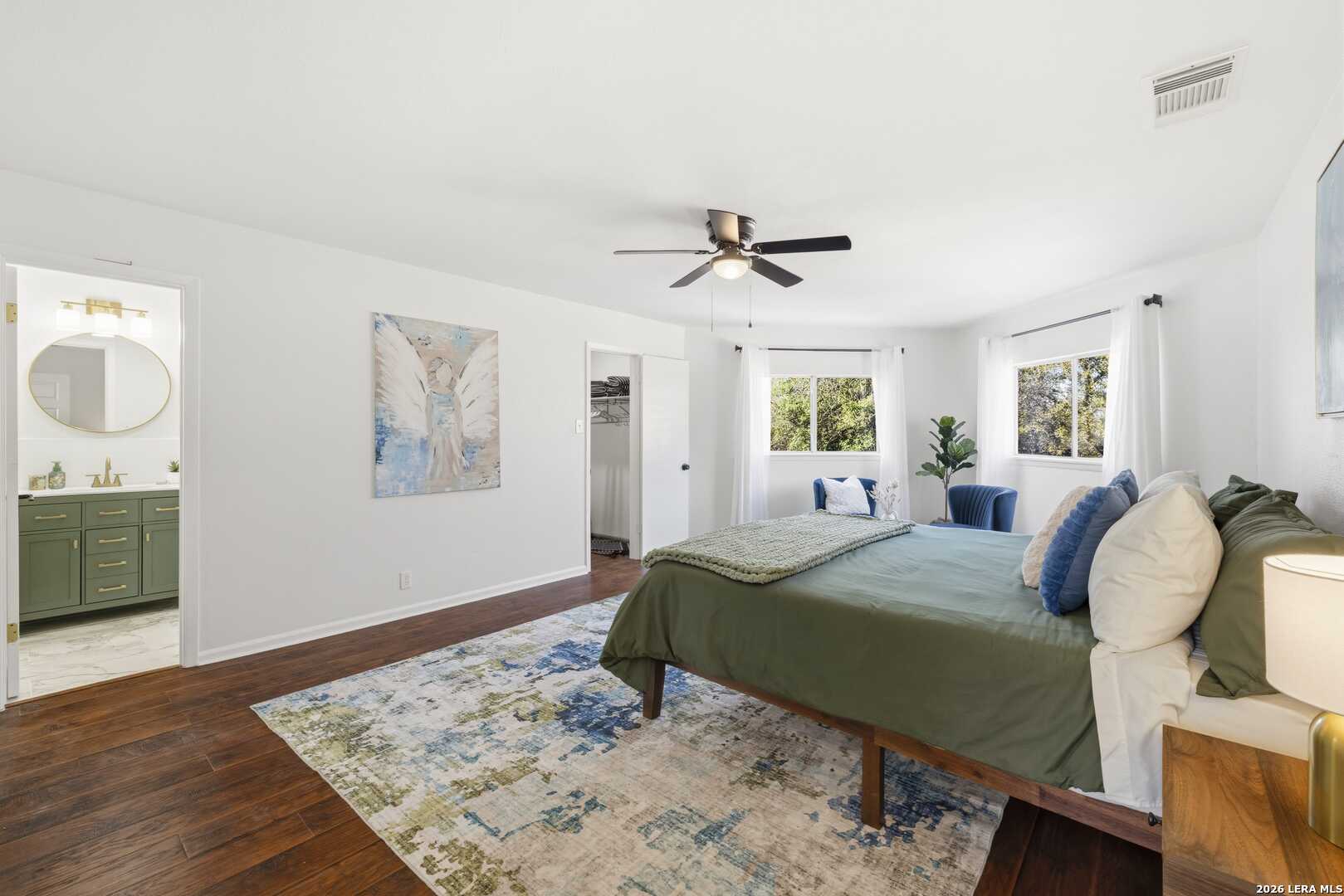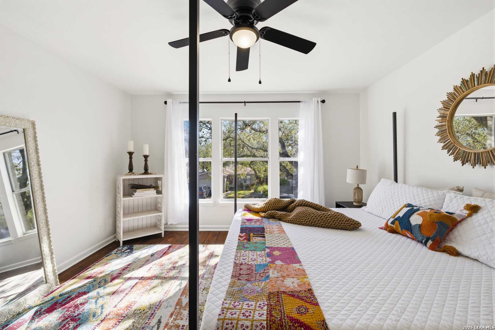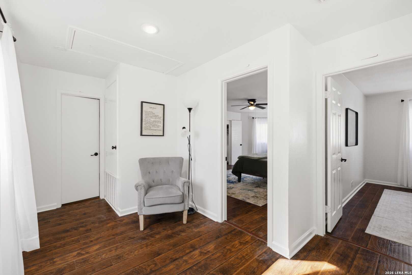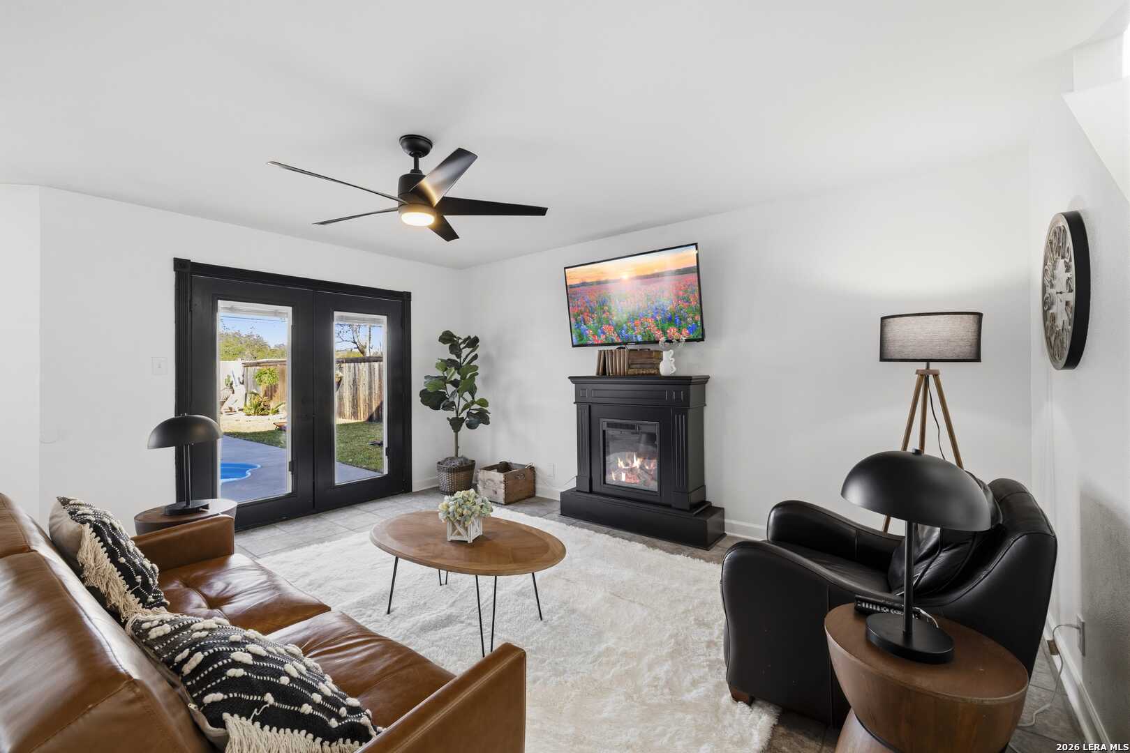 This beautifully updated home offers the perfect blend of comfort, functionality, and inviting outdoor living. Inside, you'll find a spacious dream pantry and laundry room with abundant storage, and large walk-in closets designed to make everyday living effortless. The kitchen showcases new granite countertops, a large farmhouse sink, and freshly updated cabinetry with modern hardware. The open living and dining area overlooks the backyard pool, creating a bright and welcoming space, while the fireplace adds the perfect cozy touch for relaxing evenings. The primary suite is a true retreat, featuring a huge bedroom with plenty of space for a comfortable sitting area or sofa, creating a relaxing private escape at the end of the day. The first floor features easy-to-maintain tile flooring, while the upstairs offers warm and durable luxury wood-look vinyl flooring. Enjoy peace of mind with major recent upgrades, including a brand-new A/C system, new plumbing, a new water heater, updated fixtures, fresh interior and exterior paint, a coated garage floor, and newly installed sod. Step outside to your private, fully fenced backyard retreat. The space features a sparkling swimming pool, crushed granite patio, fire-pit area, mature trees, and charming string lights-perfect for entertaining guests or unwinding under the Texas sky. It's the ideal place to enjoy your morning coffee by the pool or relax in the evening with a glass of wine. A unique highlight is the private backyard gate providing direct access to nearby trails and park amenities, including jogging and walking paths, a sports park, fitness park, playground, and library. The neighborhood also offers wonderful community amenities, including a community pool, playground, picnic area and clubhouse, all just a short walk away. Conveniently located near UTSA, Valero, The Rim, USAA, LaCantera and the Medical Center and surrounded by shopping, dining, and recreation, this home offers both tranquility and easy access to everything the area has to offer.