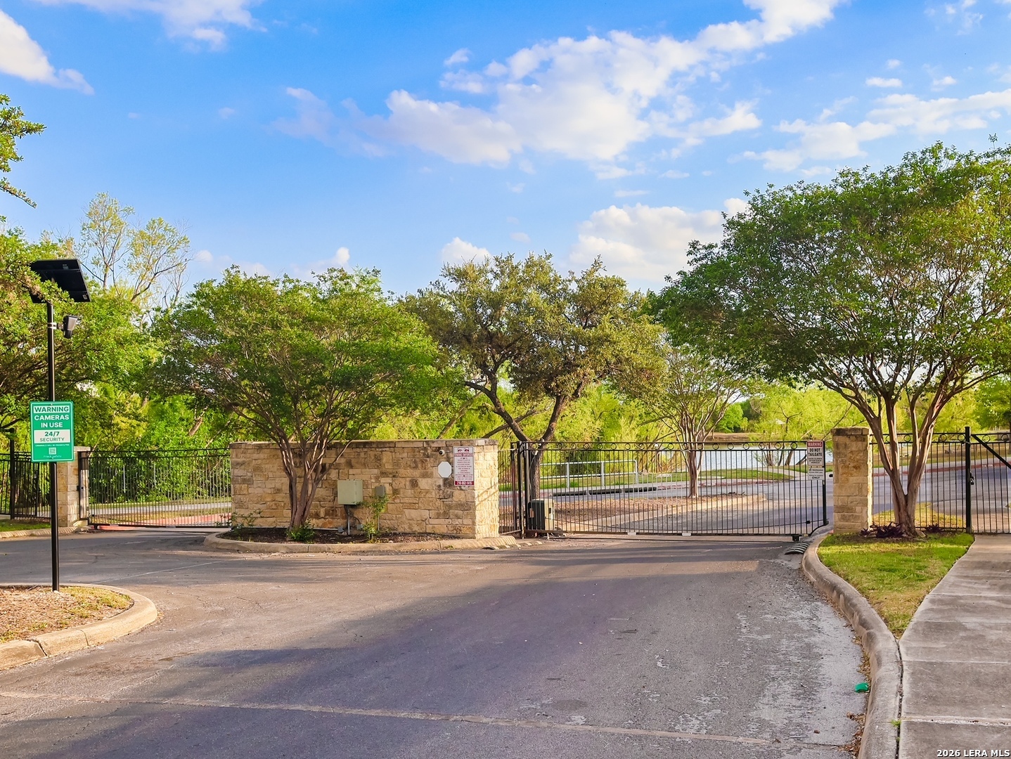 This must-see home blends style, comfort, and function in every detail! Wonderfully cared for 3-bedroom, 2-bathroom home is your dream come true. Located in a fabulous, gated community just near Loop 410. Immaculate and thoughtfully designed, this one-story residence features an open concept living and dining area that flows seamlessly into the kitchen with walk in pantry. A striking mahogany-stained entry door sets the tone, while 9-ft. ceilings and rounded corners add style and character throughout. The kitchen is a true centerpiece, offering 42-in. upper cabinets with crown molding, bar-style seating, stainless steel appliances, and ample cabinet space. Inside, discover a bright interior with neutral tile floors and plush carpet in all the right places. The luxurious primary suite boasts a spacious walk-in closet and an en-suite bath for your comfort and retreat. Energy-efficient solar panels help lower monthly electric bills, while gutters add to the home's polished, well-maintained appeal. Step outside to enjoy a private backyard with lush grass keep that is maintained by sprinkler system in the front and back - the perfect spot to relax with your favorite drink.