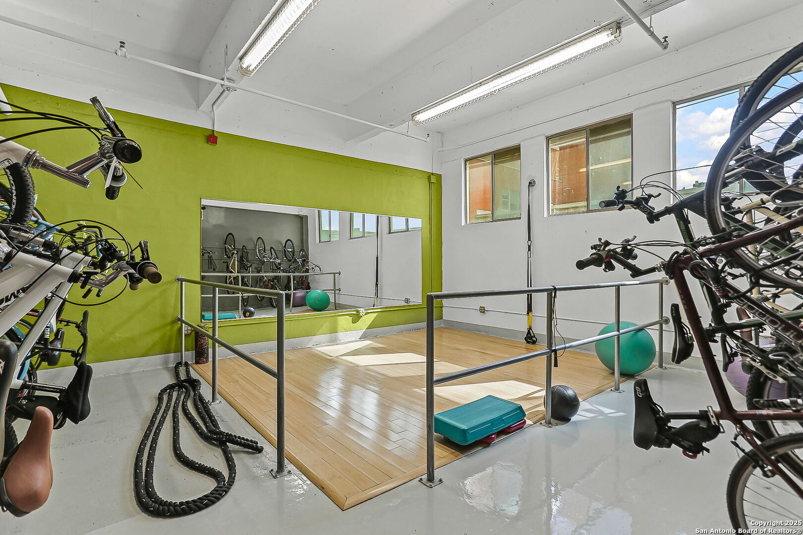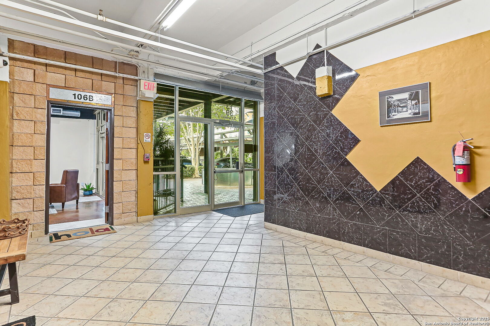 Located in the South End Lofts Condominiums, this first-floor unit offers true Southtown living. Designed with an industrial aesthetic, the space features modern finishes, stainless steel appliances, granite countertops, exposed brick accent walls, and stained concrete floors. Two tandem parking spaces are included. The primary bedroom features high ceilings, large windows that fill the space with natural light, and a walk-in closet. The ensuite bathroom offers a spa-like experience with double vanities, a jetted soaking tub, a separate walk-in shower, and beautifully updated modern mirrors. A private covered, fenced patio just off the living space (which has extra privacy film installed) overlooks a serene courtyard with a beautiful fountain, perfect for quiet mornings or evening relaxation. HOA dues cover water, trash, sewer, pest control, and building management. The community provides 24-hour surveillance and controlled access for added peace of mind. Amenities include a rooftop deck offering panoramic views of the San Antonio skyline, where you can take in city lights and downtown landmarks. A pool with a BBQ area adds to the communal space for entertaining, while the fitness center and small pet park provide convenience for everyday living. Enjoy walkable, connected urban living in the heart of one of San Antonio's most vibrant and artistic districts. Southtown is known for its eclectic mix of historic charm and modern energy, with an array of local restaurants, bars, coffee shops, galleries, and cultural venues all just steps away. Whether you're exploring First Friday art walks, dining at chef-driven eateries, or enjoying the nearby River Walk, King William Historic District, or Blue Star Arts Complex, this location blends lifestyle and location seamlessly. With close proximity to downtown, The Pearl, and major military bases, this home offers unmatched access to the best of city living.