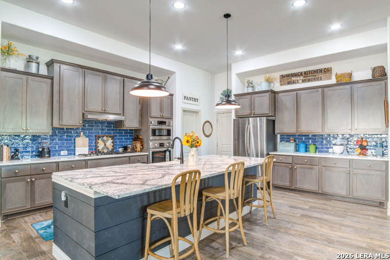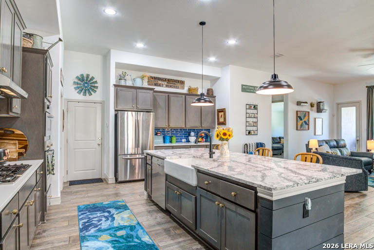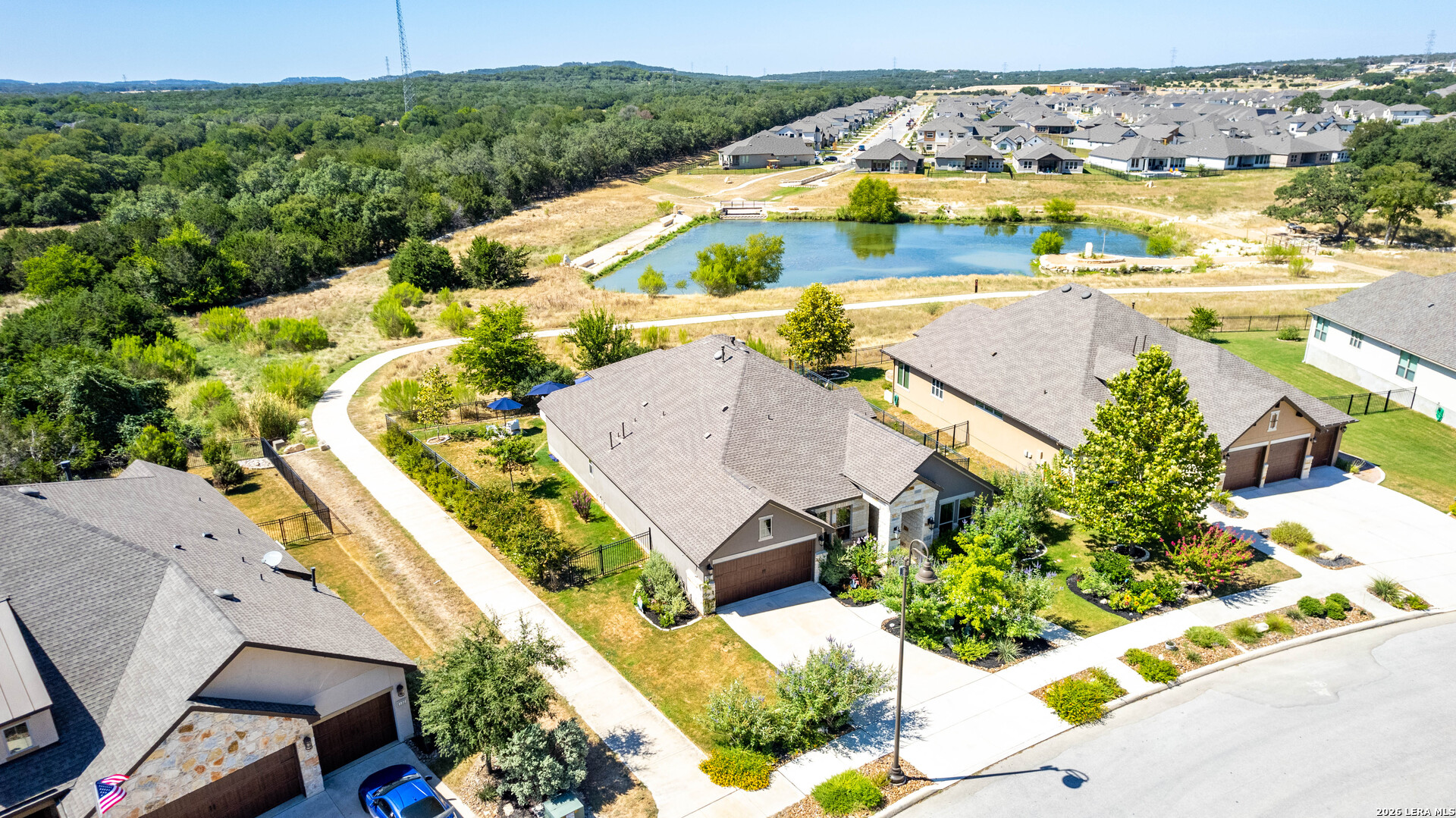 This stunning 2,812 square feet home offers 4 bedrooms, 3 baths, and refined living on a premium greenbelt lot and view of one of Esperanza's fabulous community ponds. Designed for both elegance and comfort, the open-concept layout features a formal dining room, fireplace, high ceilings, spacious living area, and a game room perfect for entertaining. Chefs eat-in-kitchen includes stainless steel appliances, gas cooktop with Cambria quartz countertops and walk in pantry. No carpets in this beauty. The large windows draws in lots of natural light. Step outside to your private retreat - complete with an oversized covered patio, sparkling pool, and relaxing hot tub overlooking serene greenbelt views. A three-car tandem garage completes this exceptional property. Located in a premier master-planned community with neighborhood events, trails, resort-style pool, splash pad, fitness center, playground, dog park, volleyball and pickleball courts, this home delivers elevated living inside and out. Luxury. Lifestyle. Location. A definite must see!