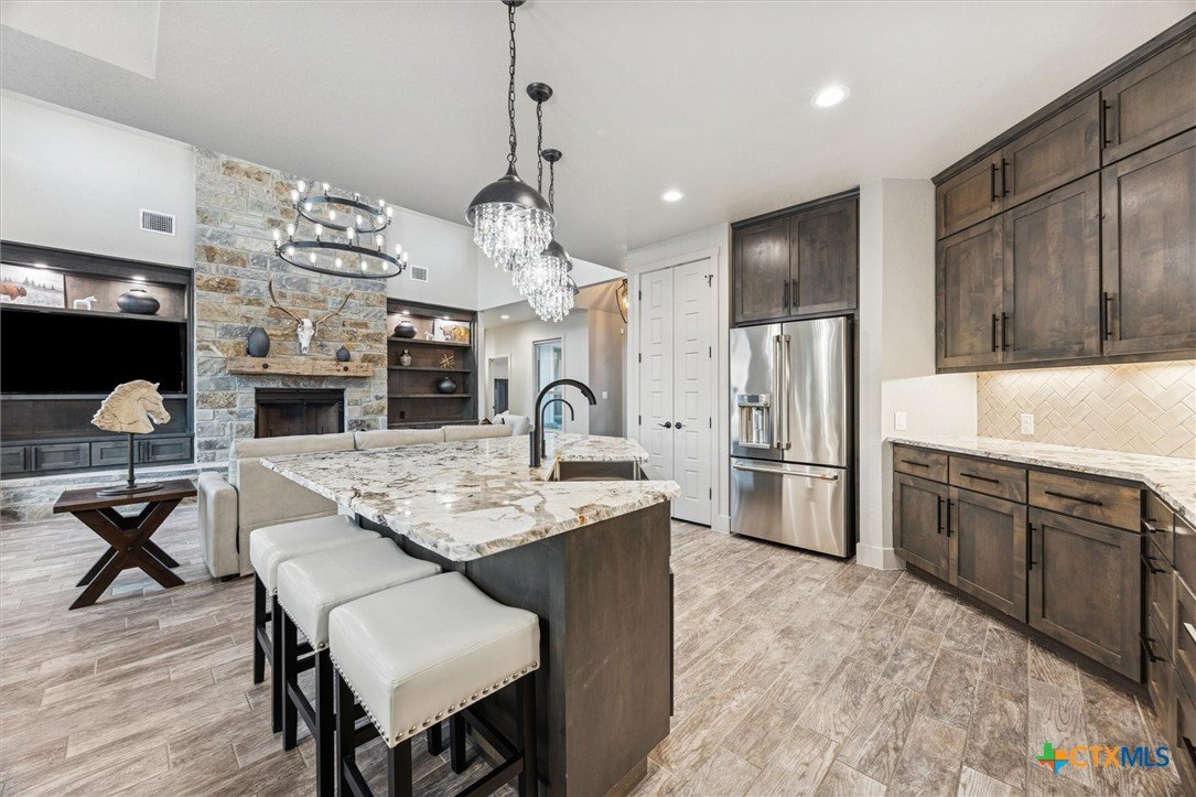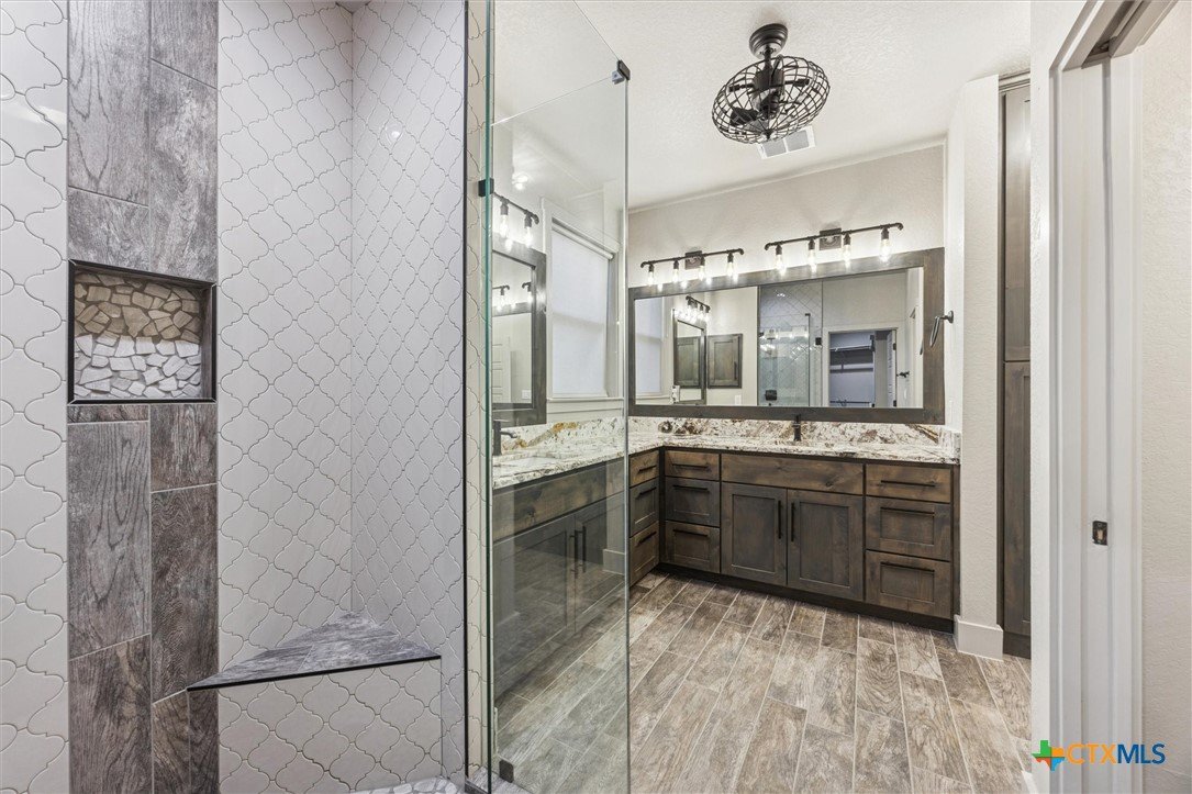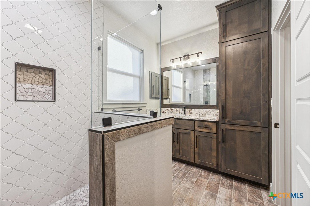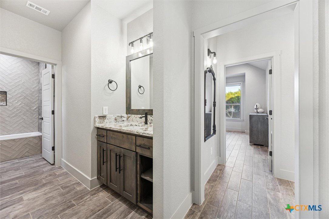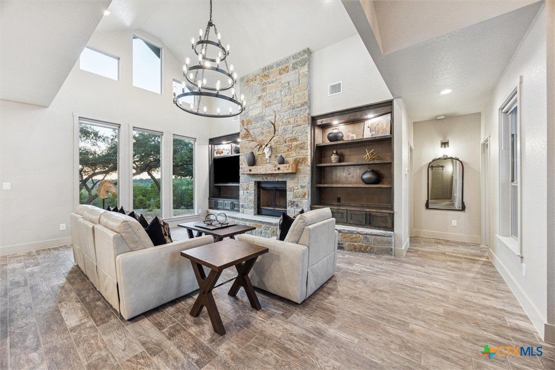 Luxury Hill Country living at its finest! This custom home has been thoughtfully designed, with attention given to every detail. As you turn into the extensive drive, two feelings easily overtake you, calm from the beauty of the natural surroundings and being truly impressed by this grand home before you. You will enter and be greeted by soaring ceilings, and sweeping views of the beautiful Texas Hill Country from every room. You and your guests will feel truly spoiled as every room provides access to a bathroom, yes, 4 bedrooms featuring en-suite bathrooms. Enjoy the beautiful sunsets and abundant wildlife from your private deck, accessed directly from the primary suite. Prepare to fall in love from the moment you arrive at 134 Flanders, where elegance and hill country charm await you. Schedule your showing today!