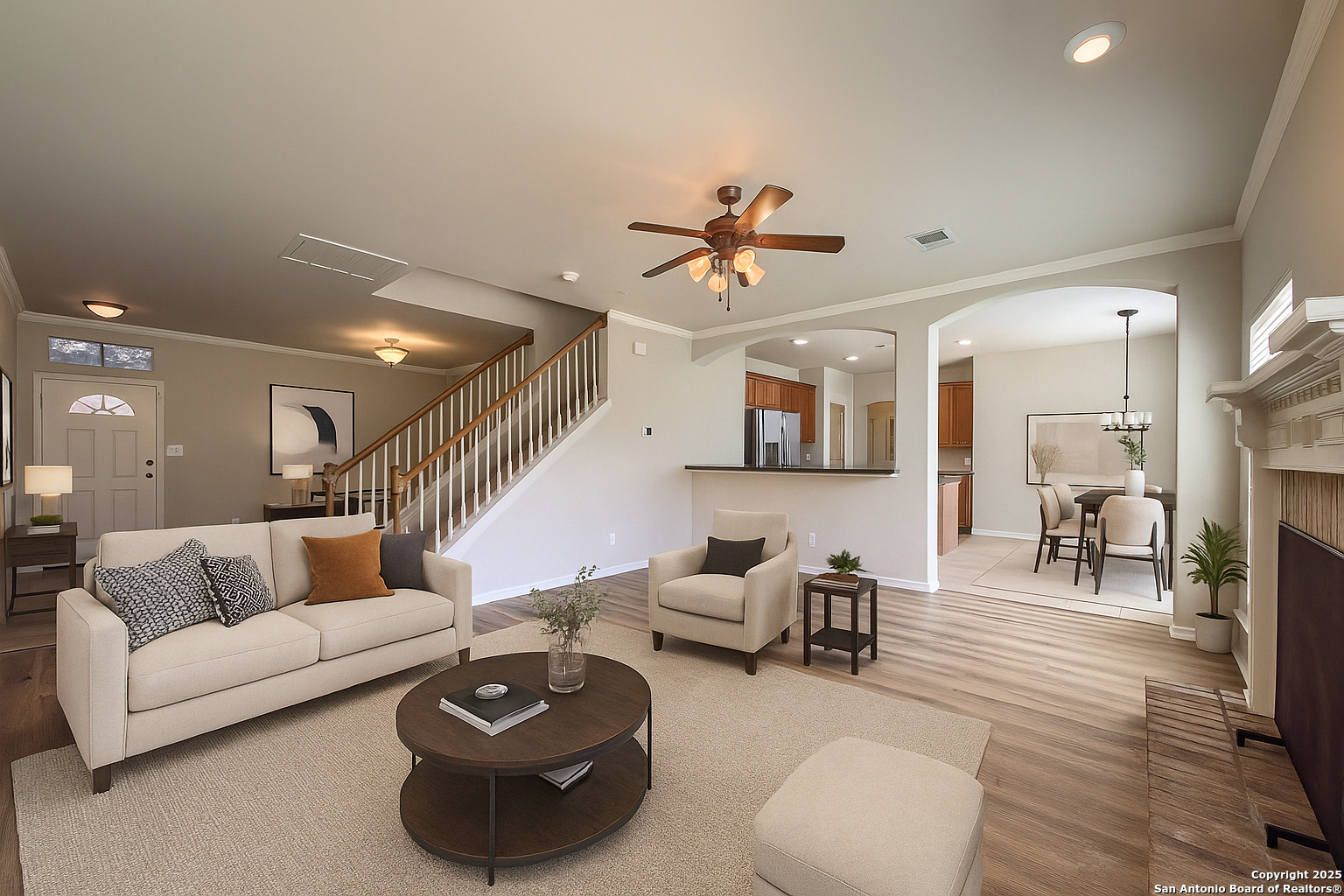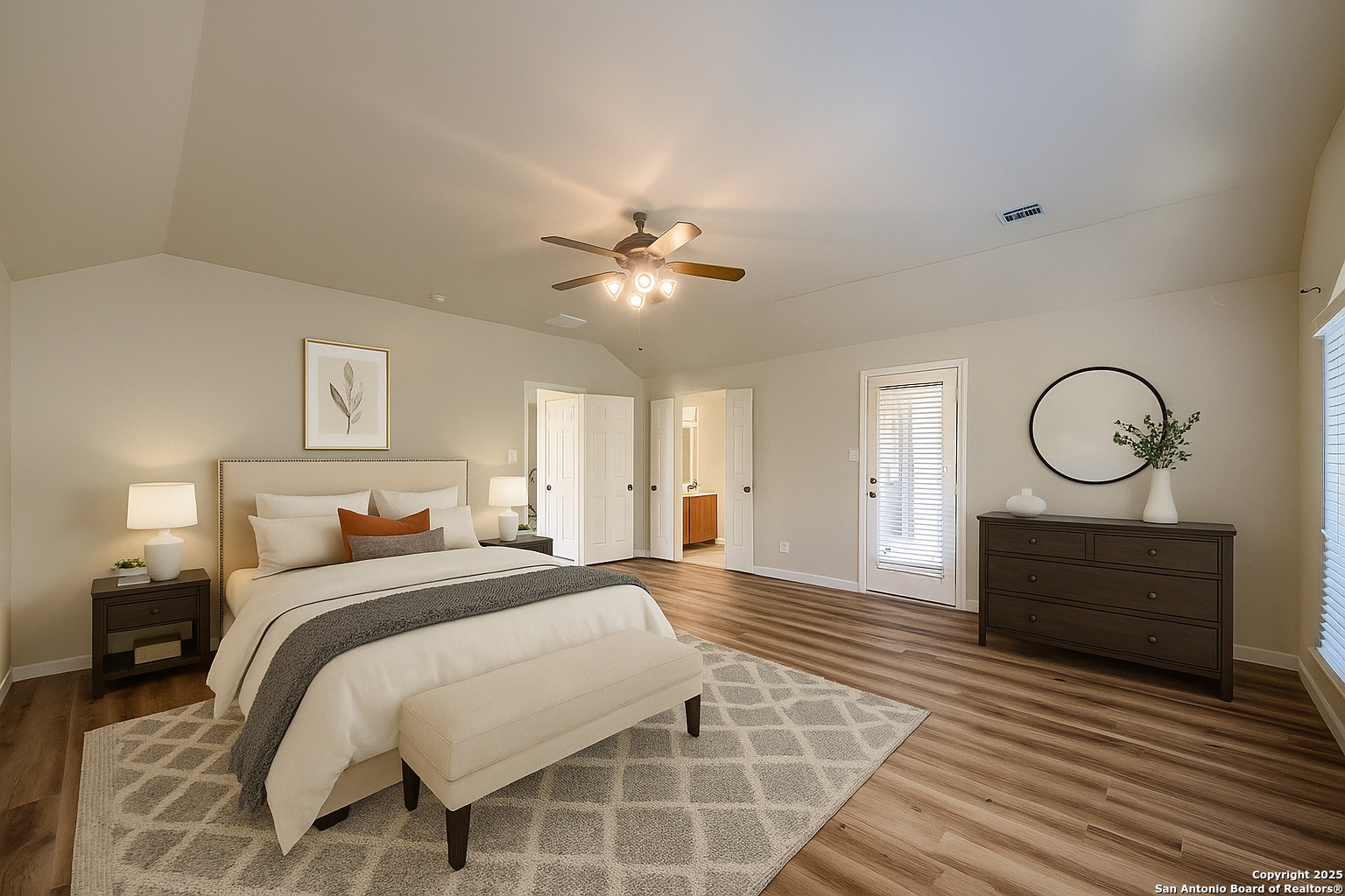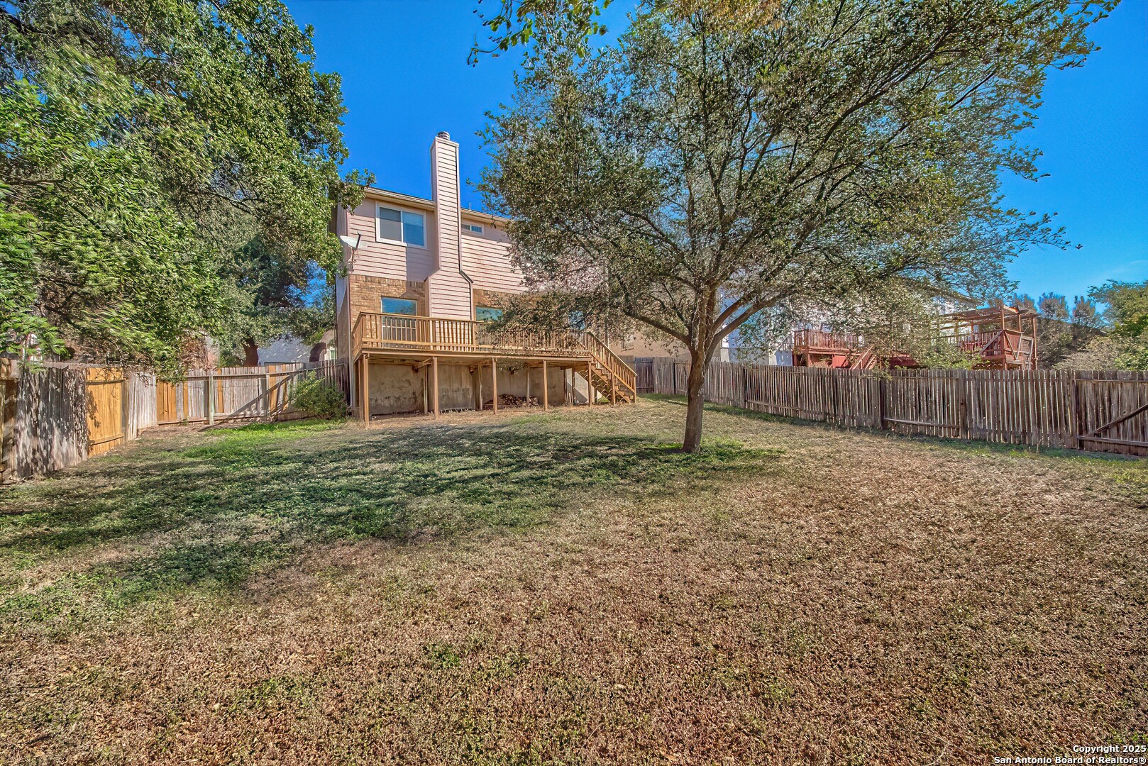 Move-in ready 3-bed, 2.5-bath home in Pinon Creek! Close to schools, shopping, restaurants, grocery stores and MORE! This freshly painted two-story beauty has no carpet, new wood-look vinyl flooring, and a recently updated backyard deck perfect for relaxing or entertaining. Enjoy the open floor plan, cozy fireplace, spacious kitchen with island and stainless-steel appliances, and large bedrooms. The primary suite includes a private covered porch-ideal for morning coffee or evening sunsets. Double vanity and separate garden tub and shower offer an escape from your daily work! Conveniently located near Johnson High School, Tejeda Middle, and Roan Forest Elementary -all less than a 10 min drive-some of North East ISD's top-rated schools. Low maintenance, move-in ready, and full of natural light-this home delivers the perfect blend of comfort, convenience, and style in one of San Antonio's most desirable neighborhoods.