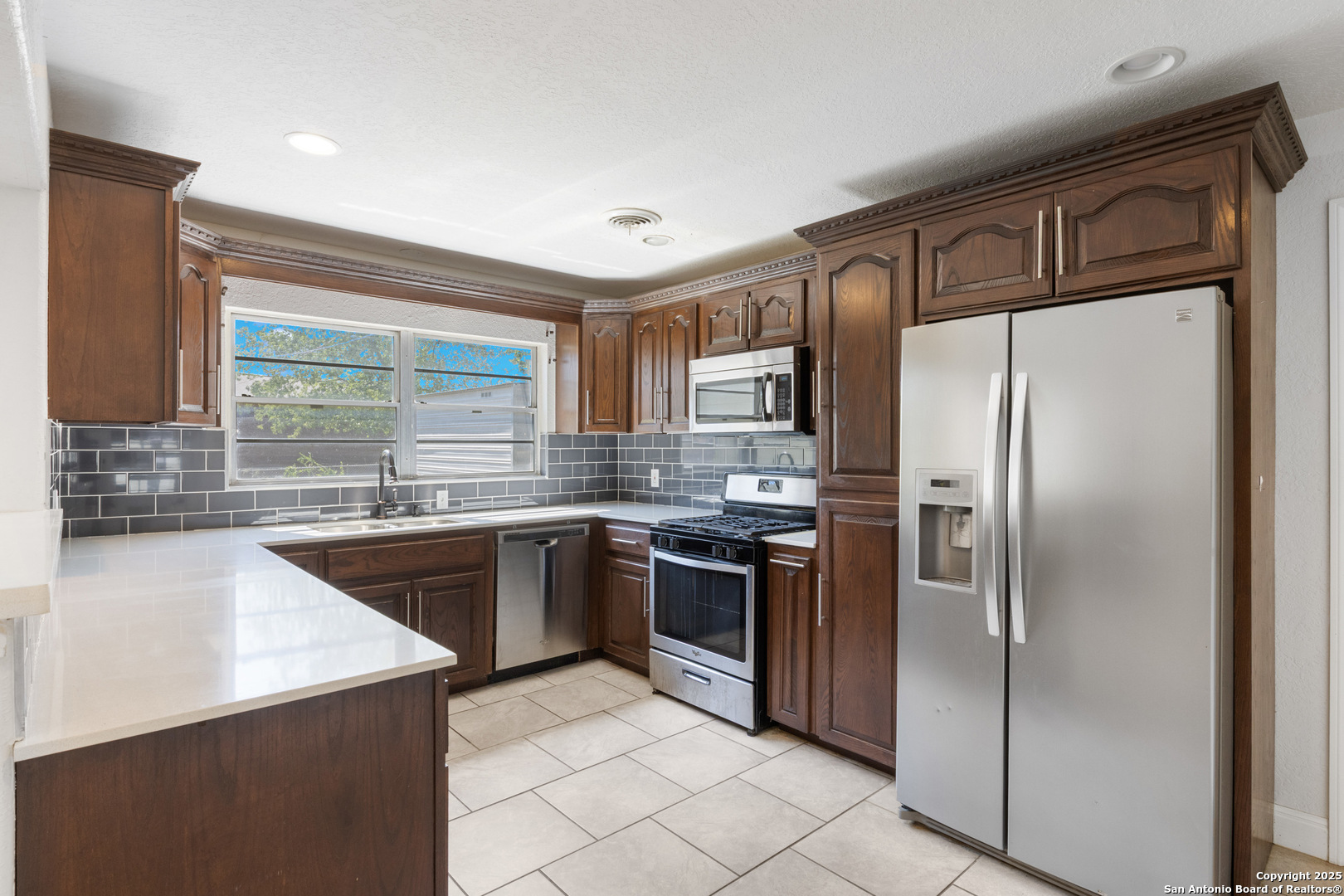 Welcome to this charming single-story home in the welcoming Hillcrest community! With timeless curb appeal and thoughtful updates throughout, this home offers the perfect blend of character and modern convenience. Step inside to find a spacious layout, beautiful hardwood floors, fresh finishes, and abundant natural light. The kitchen shines with stainless steel appliances, rich cabinetry, and a stylish backsplash that opens up to a generous living and dining area-perfect for everyday living or entertaining. The primary suite features a private en-suite bath, while the additional bedrooms offer versatility for guests, kids, or a home office. Enjoy added peace of mind with a newer roof (2022) and a recently serviced HVAC system. The expansive backyard invites you to relax, host, or create your own outdoor oasis. This move-in ready gem is ready to welcome you home.