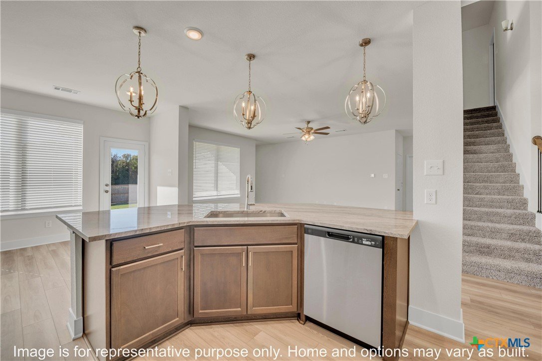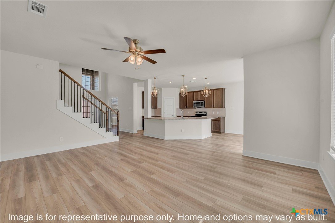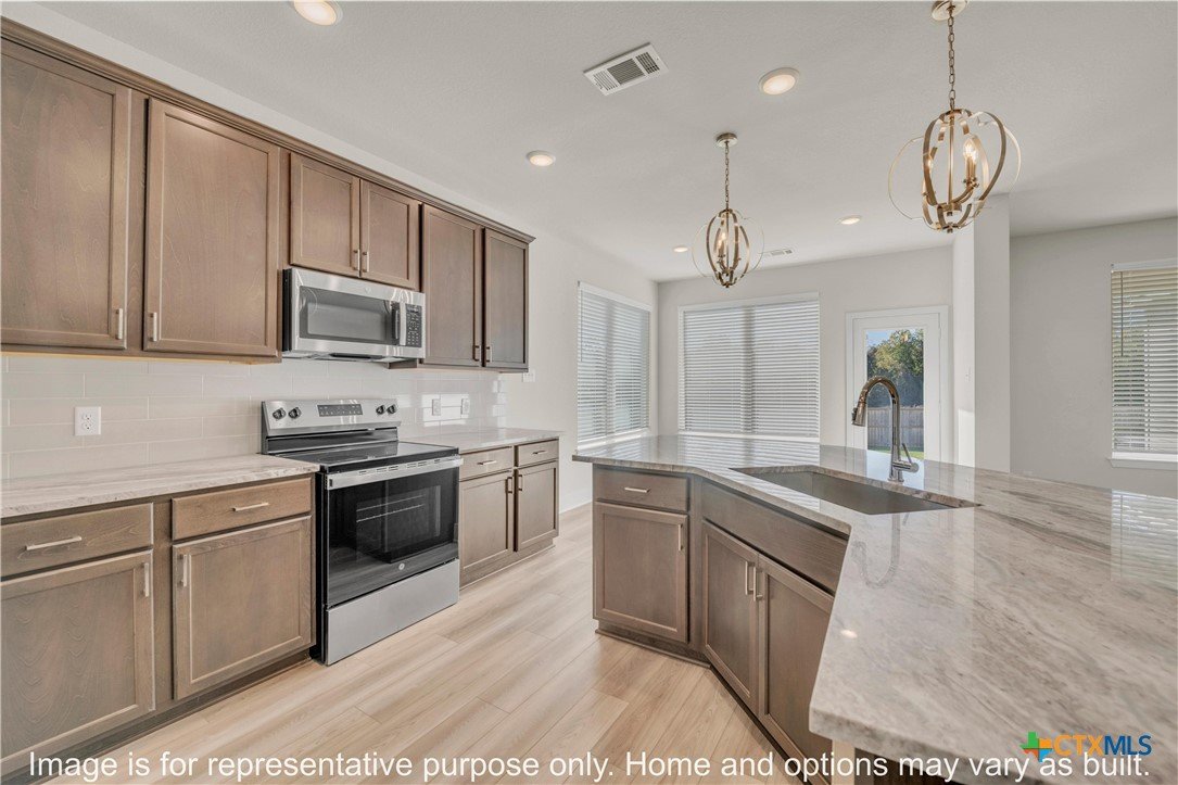 The beauty of this home goes well beyond the eye-catching façade. A large, open living room flows seamlessly into your dining area and large kitchen. Featuring a powder room on the first floor, your guests will enjoy their privacy without having to use a shared bathroom. Head upstairs where you’ll find three bedrooms and a shared game room space for all your loved ones to enjoy. Home includes granite countertops throughout, wood cabinetry, ceramic tile in baths and utility. Primary suite includes a separate shower garden tub and large walk-in closet with built-ins. Everything about this home delivers style, craftsmanship, and spaciousness.