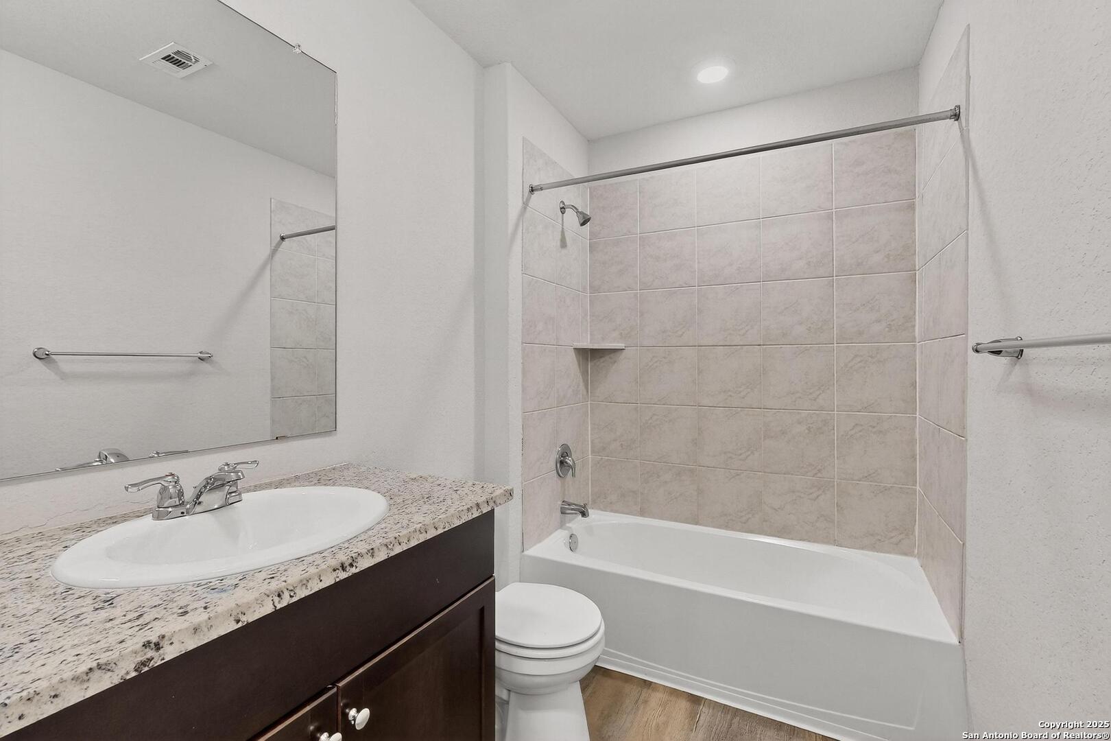 Spacious updated 2-story home featuring 4 bedrooms and 3 bathrooms with 1 full bedroom & bath downstairs! Enjoy abundant natural light throughout the open floor plan, accentuating the spaciousness of each room. New vinyl plank flooring downstairs, house is move in ready! The kitchen boasts a large island overlooking the living room, granite counters & new stainless steel appliances. Retreat to the primary bedroom, complete with a massive huge walk-in closet and ensuite featuring a large glass walk-in shower. Recent updates include new carpets, recent painting, new light and plumbing fixtures & much more! Outside, the covered patio with a ceiling fan provides a comfortable space for relaxation or outdoor dining, with privacy with no neighbors behind. Don't miss the opportunity to explore this inviting property!