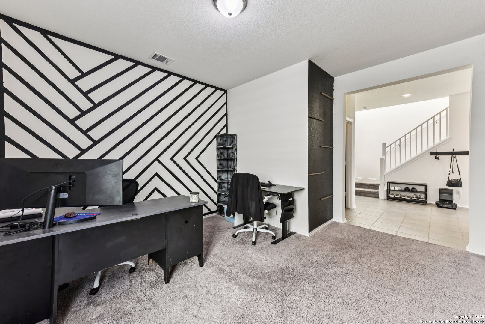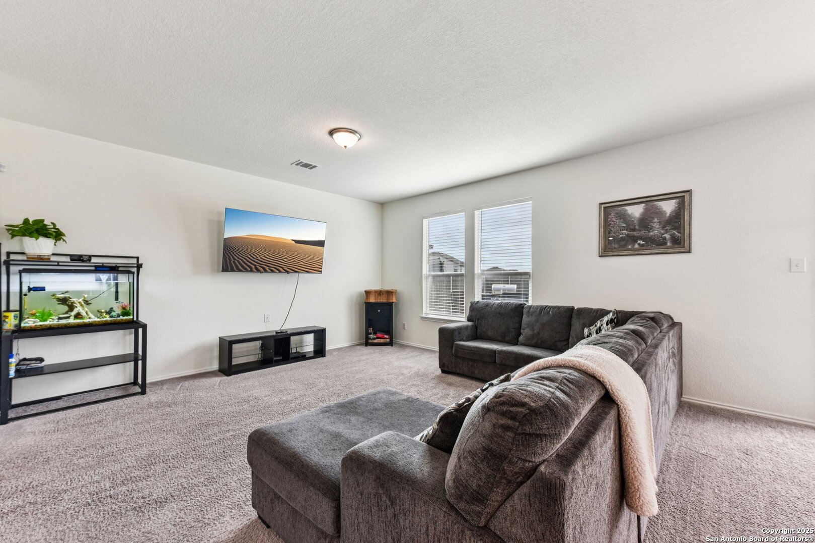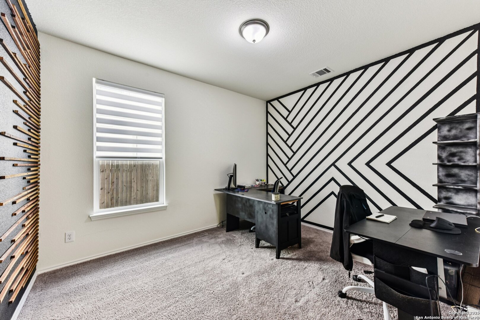 Welcome to this beautiful two-story home in the highly desired Presidential Meadows community. The main level features a versatile flex room perfect for a home office, along with an open-concept living area that seamlessly connects the kitchen and dining space-ideal for everyday living and entertaining. A convenient half bath completes the first floor. Upstairs, you'll find a spacious game room/loft area, three well-sized bedrooms, and two full bathrooms, offering plenty of room for everyone. Additional upgrades include epoxy flooring in the garage and an extended back patio, providing the perfect space to relax outdoors while enjoying the oversized backyard-great for play, gatherings, or future customization. This home blends comfort, functionality, and outdoor enjoyment in a family-friendly neighborhood. Don't miss it!