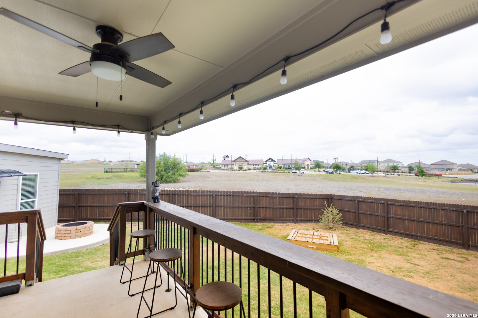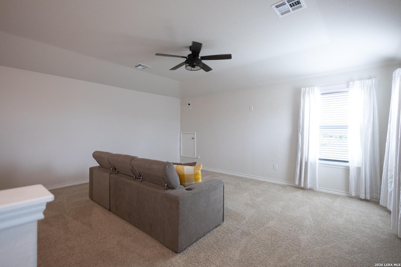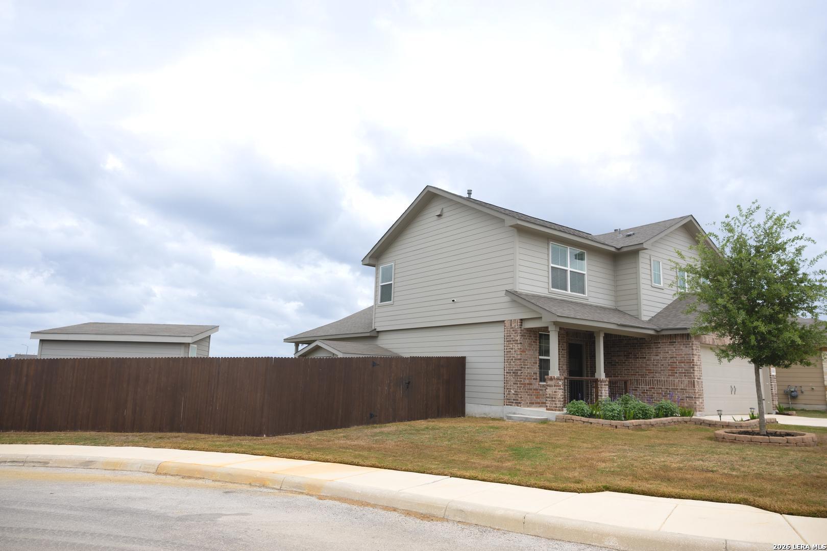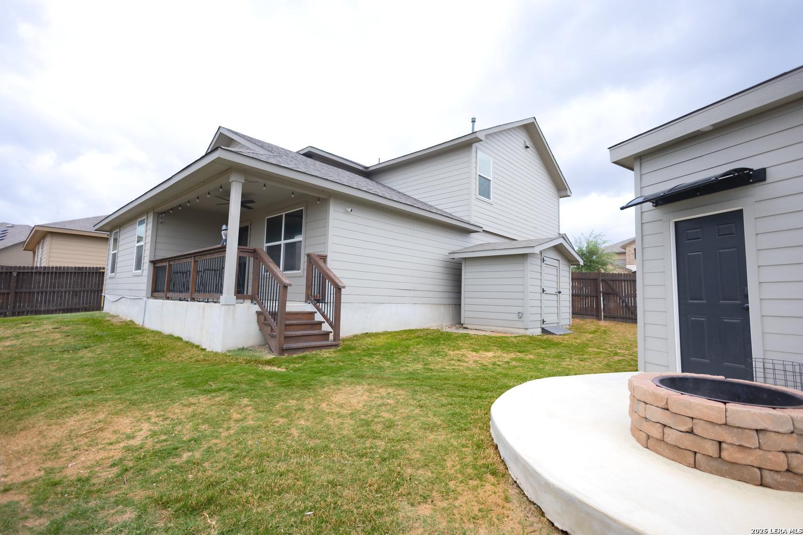 Welcome to this beautifully designed 4 bedroom 2.5 bath home located in the desirable Whisper Falls Subdivision in San Antonio - off Hwy 90 near Castroville. This spacious two-story home is located on a cul-de-sac and is also on a greenbelt! It offers an open and functional layout perfect for modern living. The kitchen is a true highlight, featuring stainless steel appliances, a dedicated coffee bar area, a large pantry and a over-sized counter to area perfect for serving and/or a eat in kitchen area that opens up to a spacious living room - perfect for entertaining! The primary suite is located on the main floor and offers a private retreat with a generous layout, dual sinks, a separate shower and soaking tub, and an expansive walk-in closet. Upstairs, you'll find a large second living area, perfect for a game room or media space, along with 3 additional bedrooms and second full bath. Additional features include an upgraded laundry room with additional cabinetry and storage. Outside you have a large privacy fenced back yard, up-graded covered patio with seating and TV hook-up - detached work out room with AC, patio slab with Fire Pit- also an additional storage shed with Electric! This home combines comfort, space, and thoughtful upgrades, a great location close to neighborhood pool and park - don't miss this opportunity to make it yours!