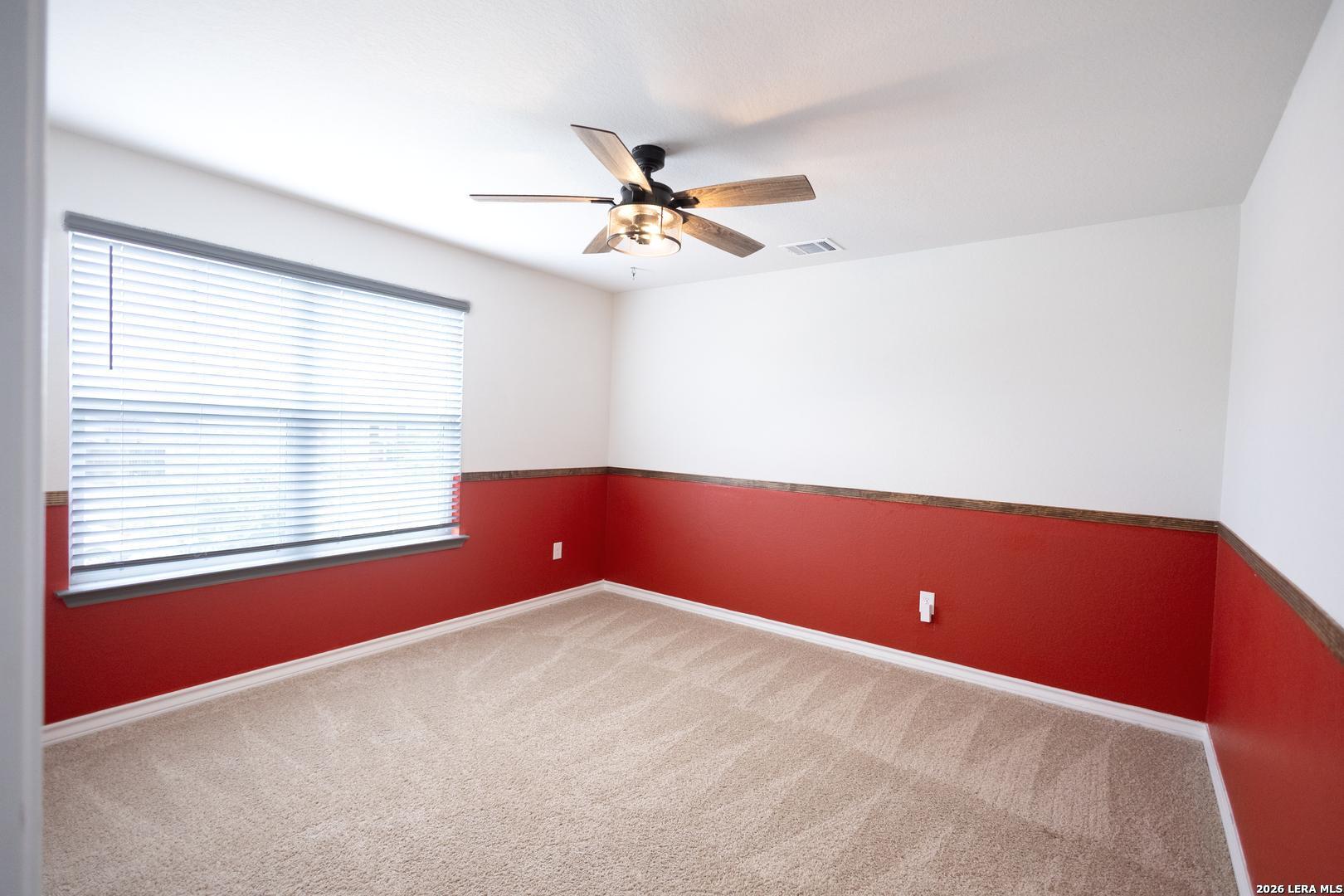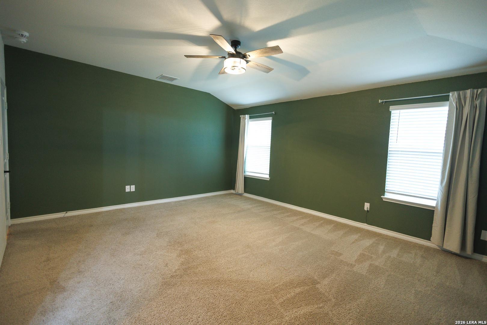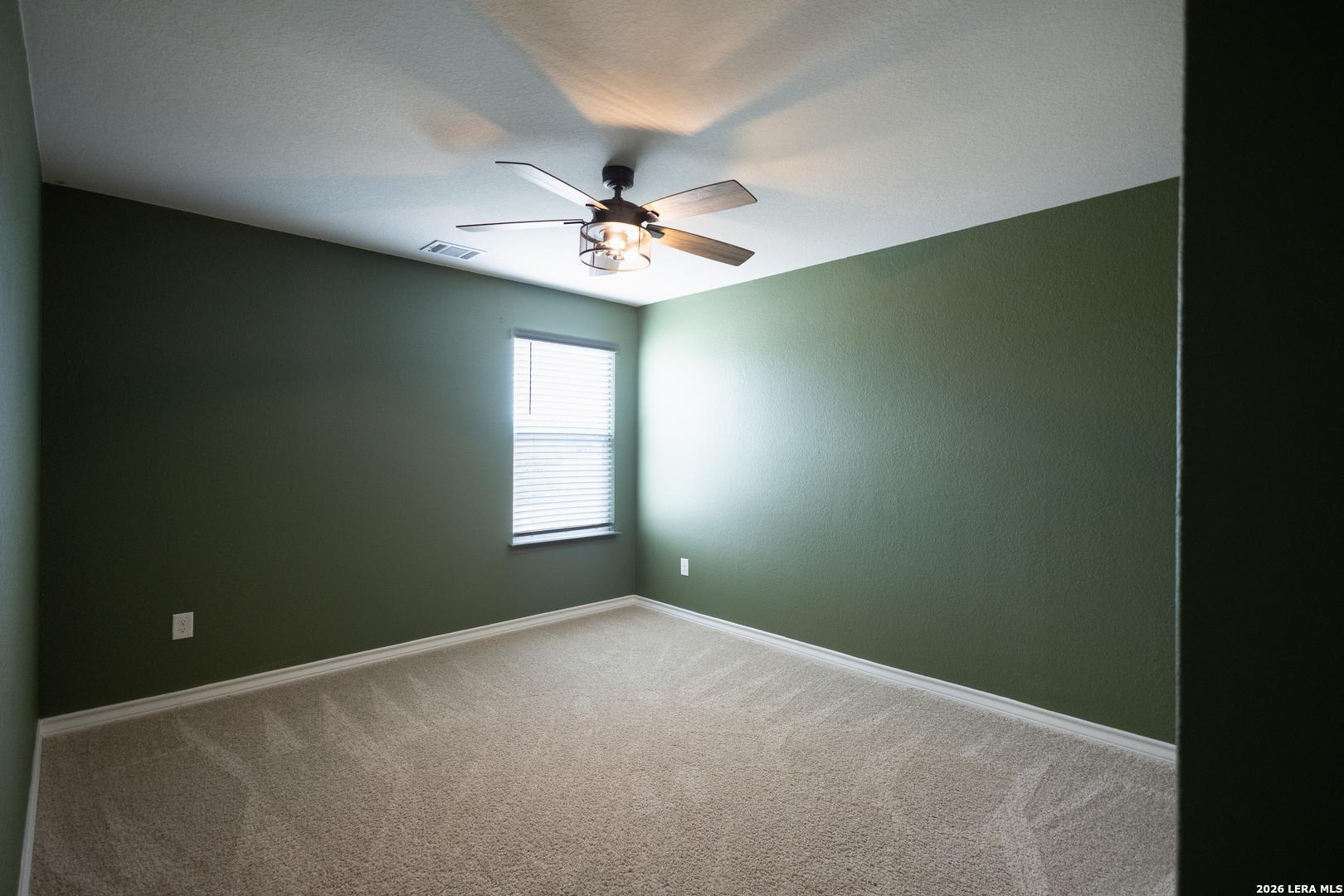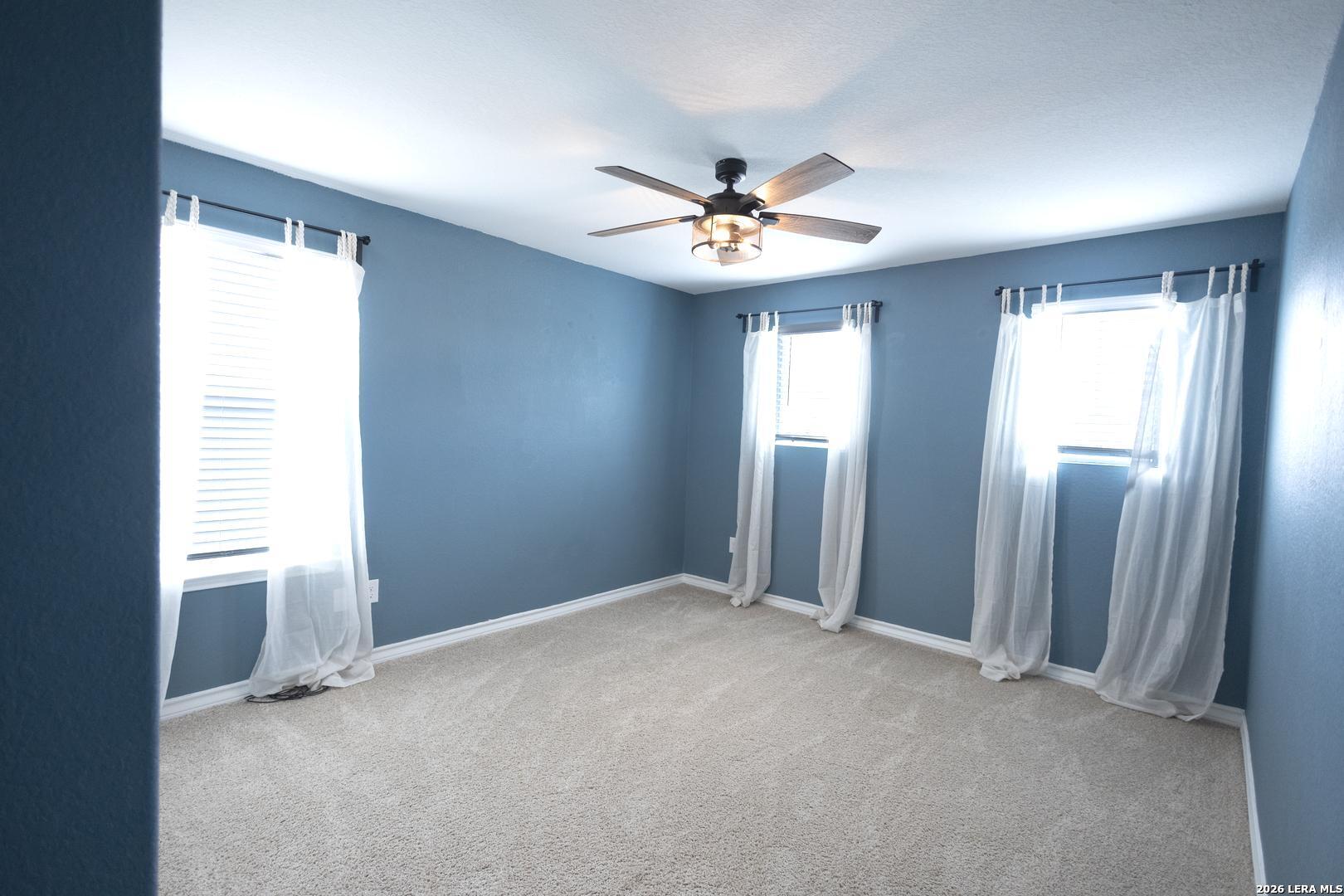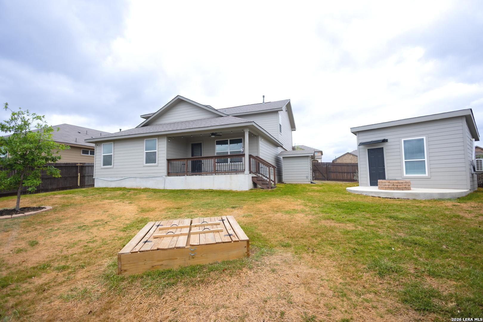 Welcome to this beautifully designed 4 bedroom 2.5 bath home located in the desirable Whisper Falls Subdivision in San Antonio - off Hwy 90 near Castroville. This spacious two-story home is located on a cul-de-sac and is also on a greenbelt! It offers an open and functional layout perfect for modern living. The kitchen is a true highlight, featuring stainless steel appliances, a dedicated coffee bar area, a large pantry and a over-sized counter to area perfect for serving and/or a eat in kitchen area that opens up to a spacious living room - perfect for entertaining! The primary suite is located on the main floor and offers a private retreat with a generous layout, dual sinks, a separate shower and soaking tub, and an expansive walk-in closet. Upstairs, you'll find a large second living area, perfect for a game room or media space, along with 3 additional bedrooms and second full bath. Additional features include an upgraded laundry room with additional cabinetry and storage. Outside you have a large privacy fenced back yard, up-graded covered patio with seating and TV hook-up - detached work out room with AC, patio slab with Fire Pit- also an additional storage shed with Electric! This home combines comfort, space, and thoughtful upgrades, a great location close to neighborhood pool and park - don't miss this opportunity to make it yours!