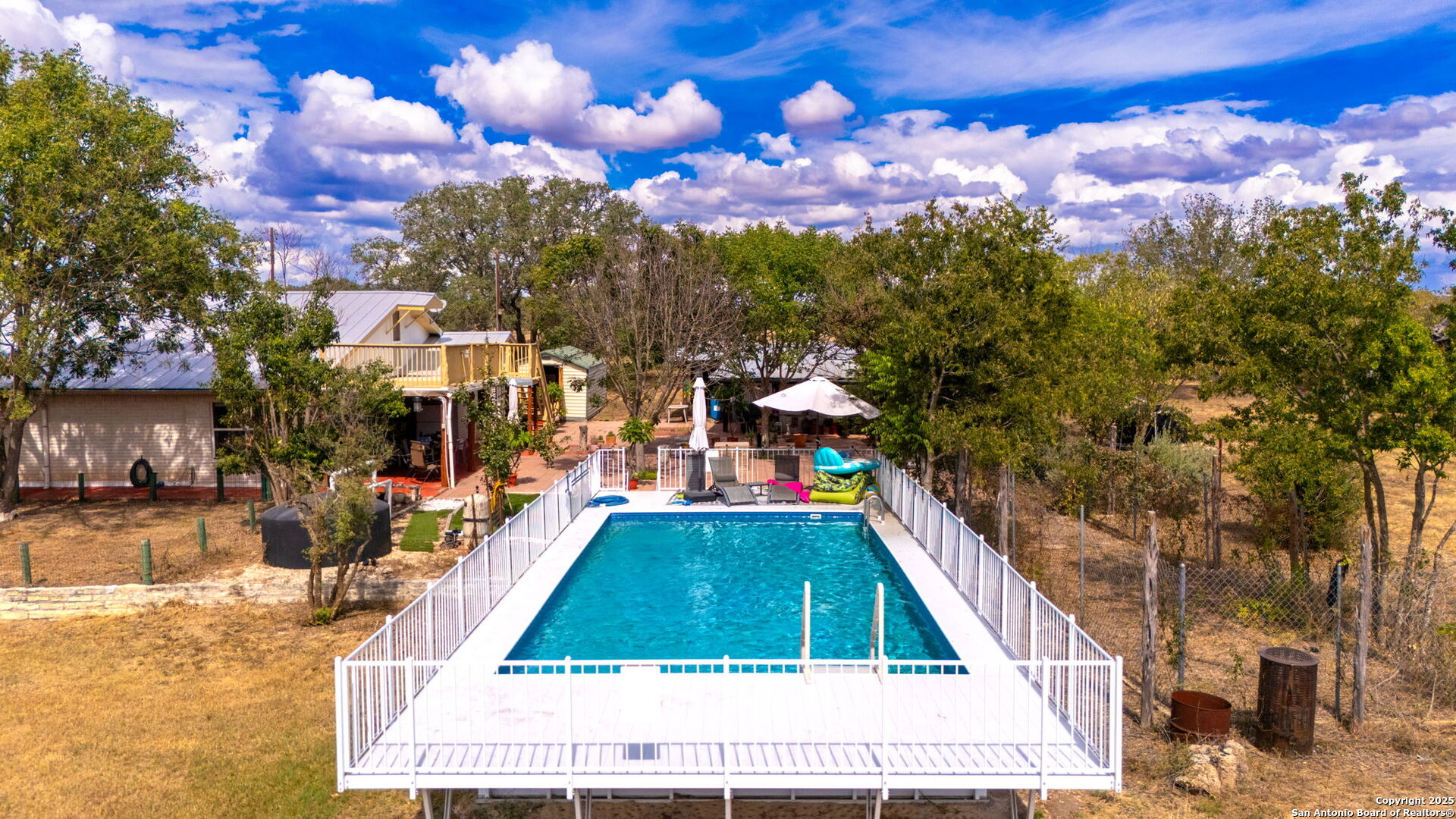 Unrestricted AG Exempt 7.62 acres with 3022 sf home, business office, outbuildings, workshop, fenced, Comfort Address. Center Point Schools. Rain Water harvesting system, instant hot water throughout. Above ground pool. Many more features!