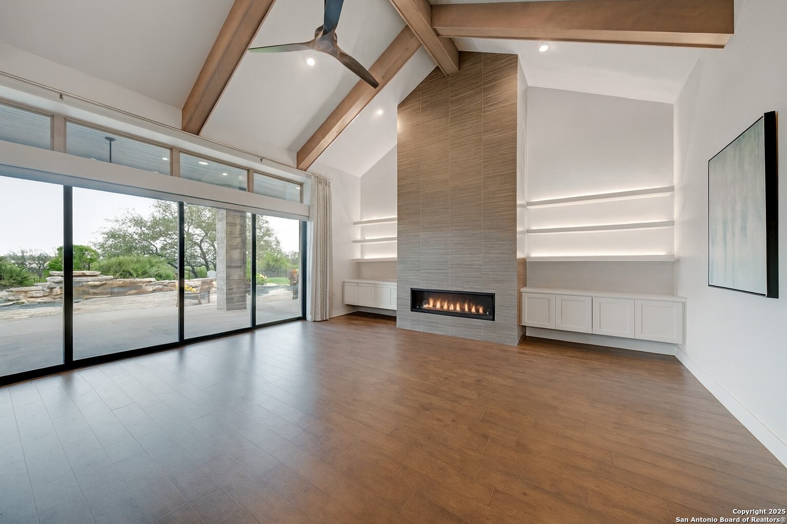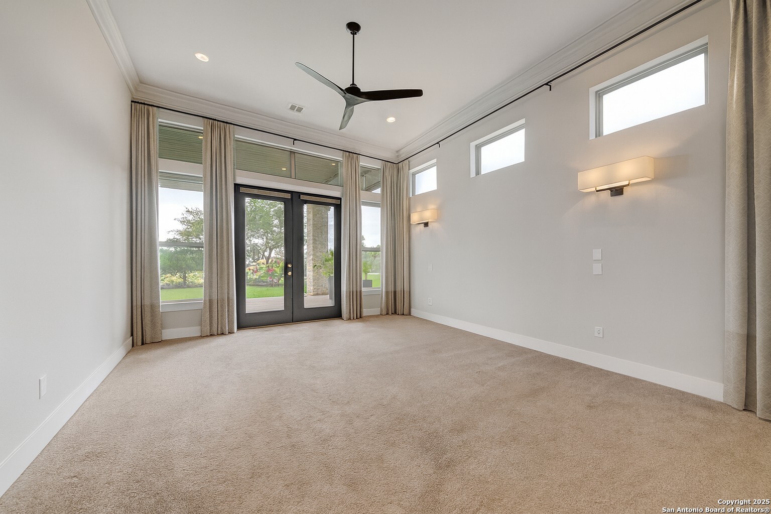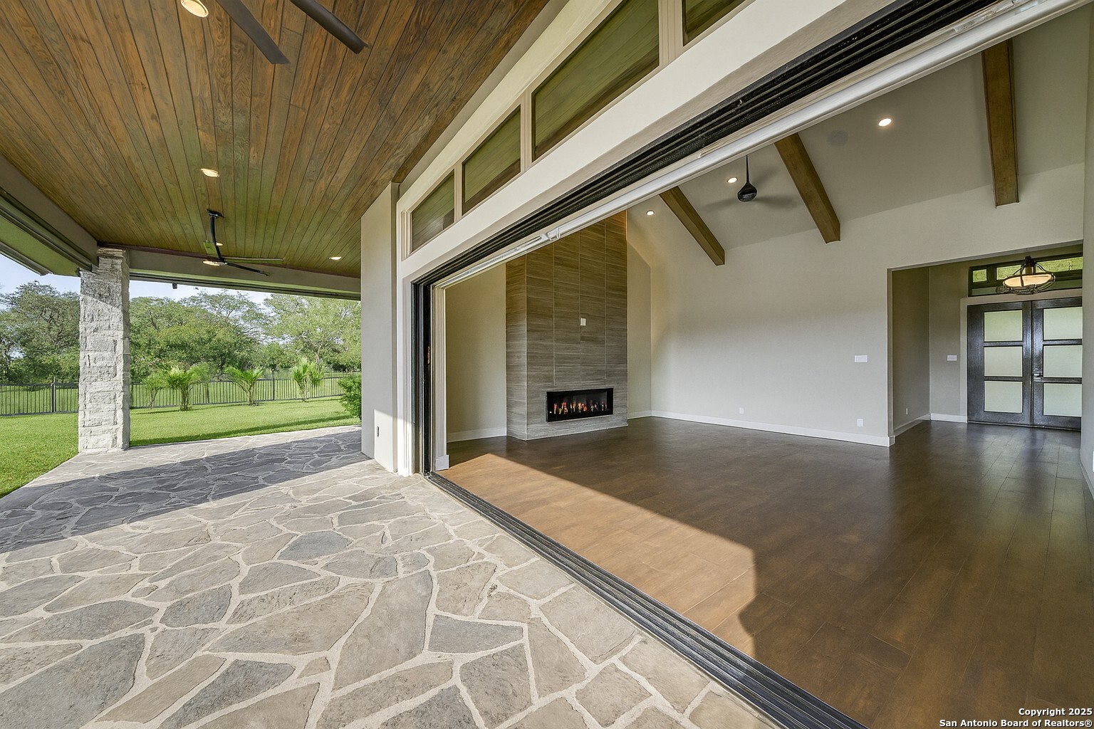 Located on 1.59 acres in the prestigious guard-gated Briggs Ranch, this single-story luxury estate delivers an exceptional Hill Country lifestyle with a highly desirable multigenerational floor plan. Situated on a premium corner lot, the 4,334 sq ft stucco and stone residence offers 5 bedrooms, 5.5 bathrooms, a circular driveway, and a 3-car garage, blending privacy, functionality, and refined design. Double-door entry opens to soaring cathedral ceilings, hardwood floors, and expansive windows that flood the home with natural light and showcase serene outdoor views. The open-concept layout is thoughtfully designed for both everyday living and upscale entertaining. A standout feature is the private in-law suite with separate entrance, complete with its own living area, kitchenette, bedroom, and spa-style ensuite bath-ideal for multigenerational living, extended guests, executive home office, or wellness retreat. Direct access from the suite to the heated pool enhances the seamless indoor-outdoor lifestyle today's luxury buyers seek. The main living spaces center around a chef's kitchen with custom cabinetry and a built-in bench-style banquette, offering both charm and functionality. The primary suite on the main level provides a private retreat featuring a spa-inspired bathroom, soaking tub, walk-in shower, and an open, modern design. Secondary bedrooms and a dedicated study are strategically placed for privacy and flexibility. Designed for entertaining, expansive California doors open to a 600 sq ft covered patio with a fully equipped outdoor kitchen. The resort-style backyard features a 22x34 heated Keith Zars pool with grotto, five remote-controlled waterfalls, Sonos sound system, and lush Hill Country landscaping. Additional premium features include smart motorized blinds, Generac whole-home generator, AquaLink pool control system, Savant app-controlled interior and landscape lighting, and Sonos surround sound in both indoor and outdoor living areas. Located within a highly acclaimed school district and minutes from shopping, dining, and San Antonio's top destinations, this home offers the ideal balance of privacy, convenience, and luxury living. With its rare single-story design, acreage, guest suite, and resort-style amenities, this residence stands out as one of the most compelling luxury opportunities in Briggs Ranch.