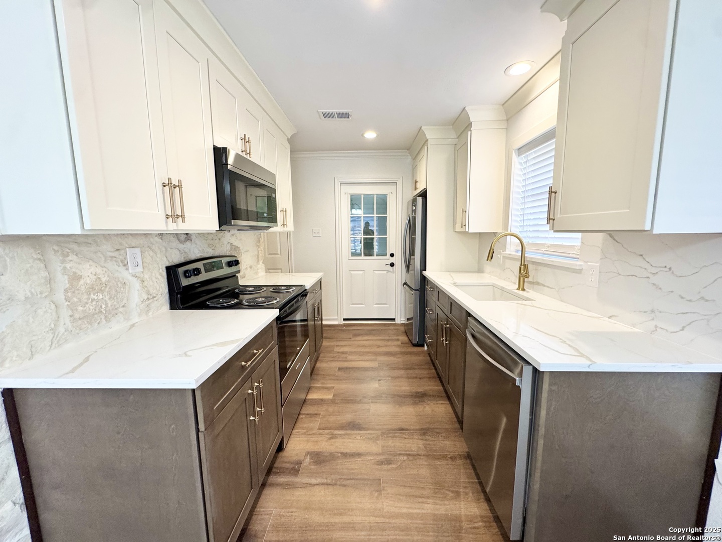 Welcome to this beautifully updated home that perfectly blends modern comfort with timeless character. Step inside to a newly redesigned kitchen, thoughtfully crafted to maintain the home's original charm while offering all the conveniences of today. Enjoy brand-new cabinets, granite countertops, & new stainless-steel appliances, making this a space you'll love to cook and gather in.Both bathrooms have been refreshed with new tile, updated plumbing fixtures, & new mirrors to be installed prior to move-in, creating clean, stylish spaces throughout. The entire home features fresh interior paint & new flooring, giving it a bright, move-in-ready feel. Outside, the nearly quarter-acre lot offers plenty of room to relax or entertain, complete with three newly planted, beautiful trees that will grow to provide shade and added charm. Perfectly situated near shopping, dining, & entertainment, this home offers the convenience you want with the comfort you deserve. Don't miss the opportunity to make this updated gem yours!