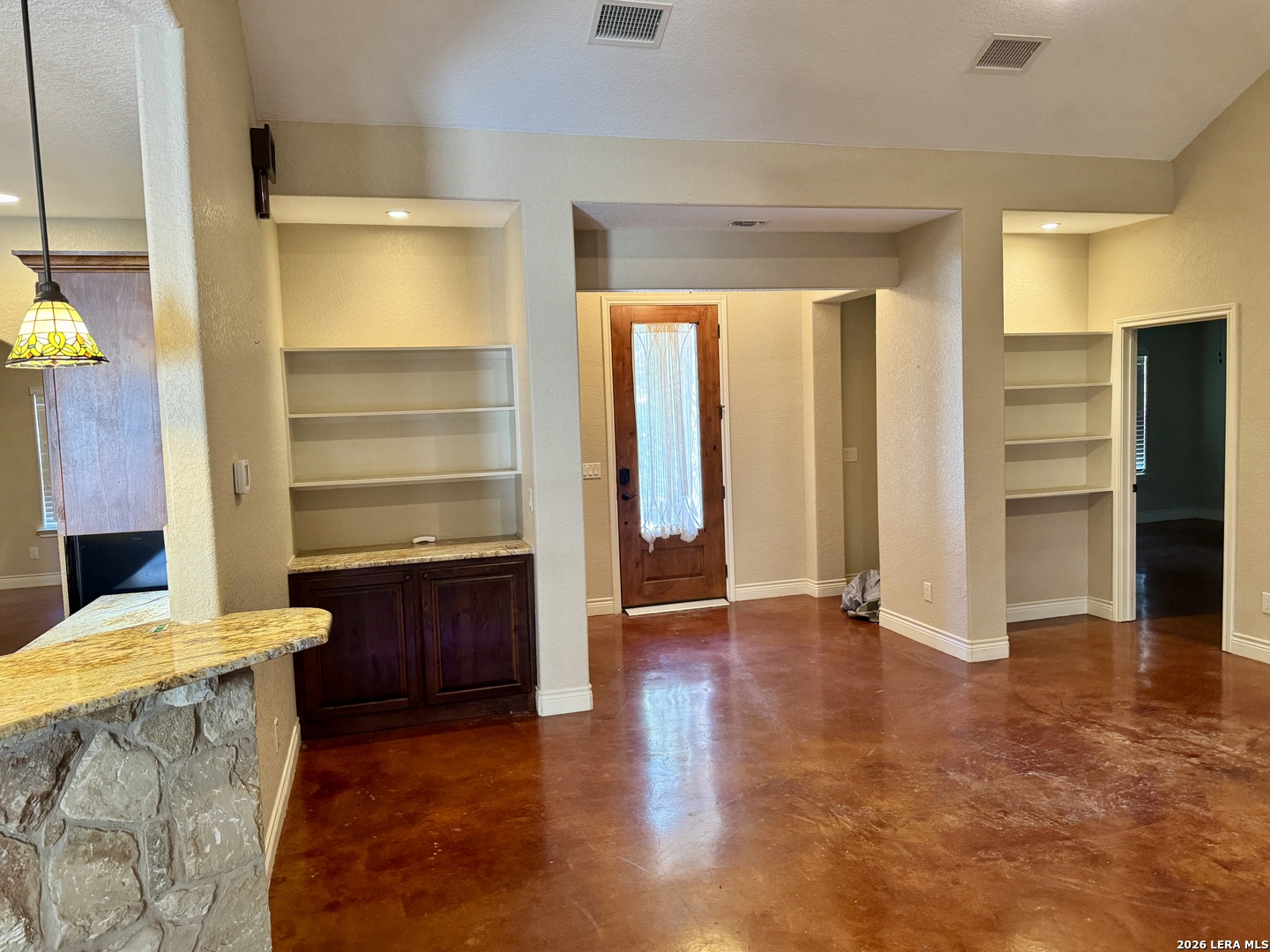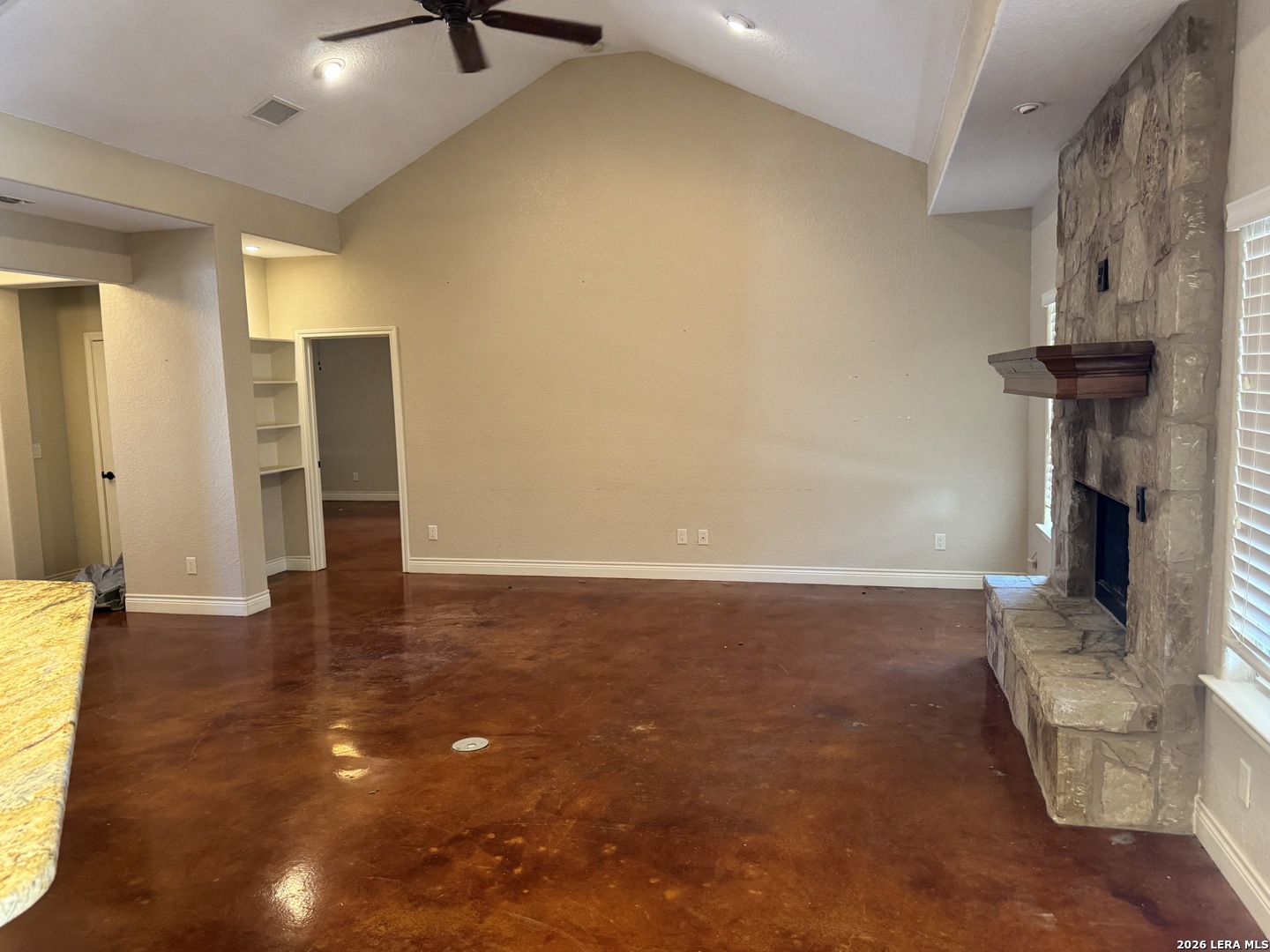 Exquisite Hill Top Canyon Lake home on a 1.15 acre lot, located just minutes from popular lake access and marinas, and "Hot" recreational facilities, tubing, rafting, concerts at White Water amphitheatre, and close to local schools and shopping! This home is ready for immediate move in. Stained concrete flooring throughout. 3 bedrooms, 2.5 baths, (half bath is located in the third car garage). oh, did I mention the 3 car garage? High ceilings, with vaulted ceiling in the living room, floor to ceiling fi