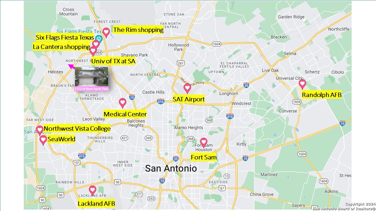 Newly updated home nestled in a cul-de-sac knuckle feeding well rated schools, in the highly coveted community at Arbor at Sonoma Ranch, Helotes - TX! This 2-story home features an office (1st floor) with French doors, oversized kitchen & walk-in pantry, large game room/loft area for a second living space, primary with garden tub and separate shower, double vanity and walk-in closet! Fenced backyard with a covered patio and access to community pool and clubhouse. Conveniently located just outside of Loop 1604 and 5 miles from I-10. Minutes away from schools (elem & middle in same neighborhood), NISD School Sporting Complex (basketball arena, football stadium, indoor/outdoor pool arenas), dining, shopping (The RIM, La Cantera), UTSA, Six Flags Fiesta Texas, Sea World... Location, Location, Location! New carpets and LVP throughout and new appliances are HVAC, water heater, water softener, stainless steel (SS) stove, SS microwave, and SS fridge. About 12 mins to Camp Bullis, 18 mins to Medical Center, 22 mins to SAT airport, 25 mins to JBSA Lackland, 30 mins to Ft Sam Houston BAMC, and 35 mins to Randolph gates. Renter to verify/confirm all room dimensions, schools, and other MLS data.