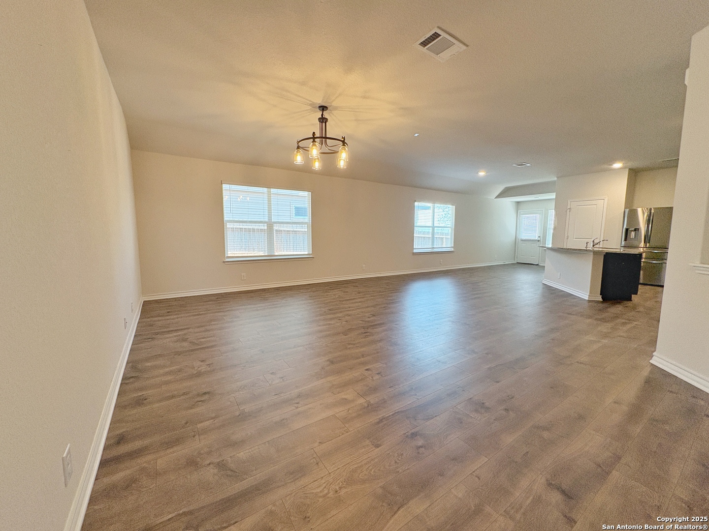 Beautiful one-story 4 bed, 2 bath move-in-ready rental. Open floor plan, large eat-in kitchen, walk-in pantry with lots of cabinet space and upgraded countertops. The kitchen opens to the spacious living and family room with the laundry room located off the primary bedroom. Nice-sized primary bedroom with a garden tub and walk-in closet. Great view off the back porch, come and enjoy your coffee there!