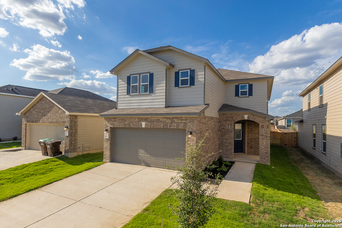 This beautifully designed home features 9-ft. ceilings on the first floor, creating an open and spacious feel. The kitchen offers style and functionality with Whirlpool stainless steel appliances, 42-in. Woodmont Belmont cabinets, Arctic Pearl granite countertops, and an undermount sink. The primary bath is a relaxing retreat with a raised vanity, upgraded cabinets, a 42-in. garden tub, and a separate shower with a Daltile tile surround. Elegant touches include a Texas Star entry door and Kwikset Polo interior door hardware. Outside, enjoy a fully sodded yard and the convenience of an automatic sprinkler system.