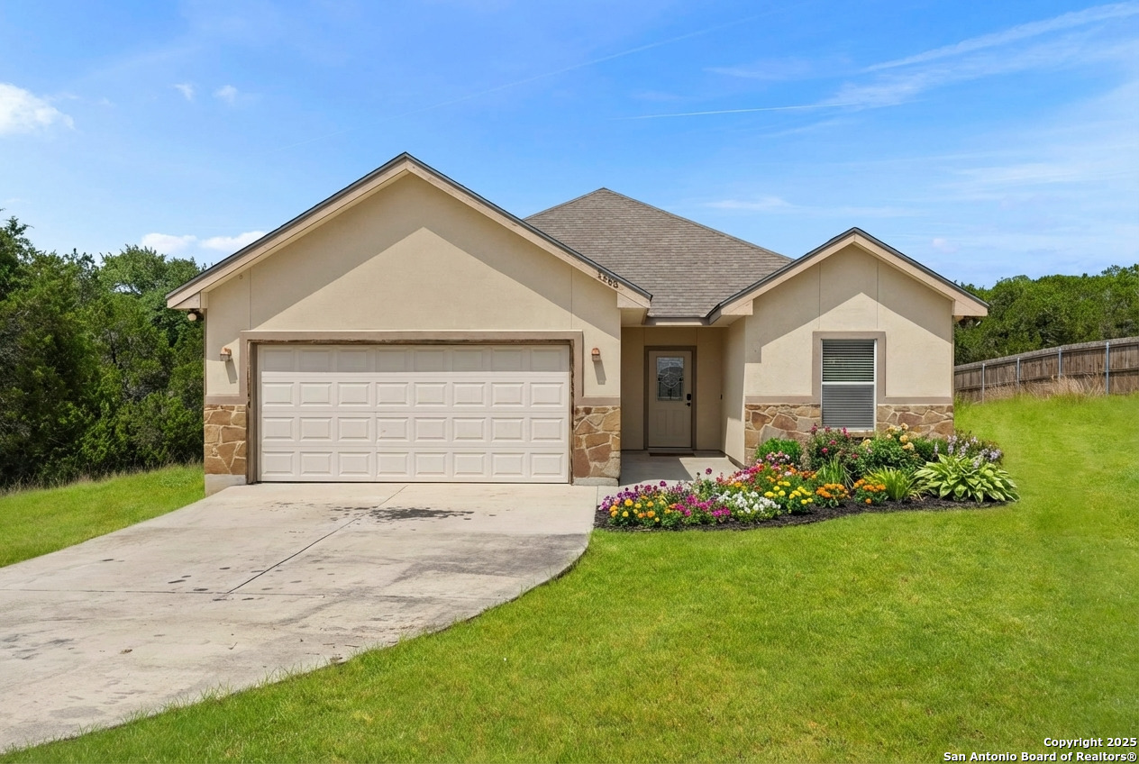 Spacious single-story home on half-acre lot in the Hill Country community of Canyon Lake, Texas. Built in 2012, this well-maintained 3-bedroom, 2-bathroom home offers 1,566 square feet of comfortable living space in the established Rocky Creek subdivision-where larger lots and natural privacy are the standard, not the exception.This home sits on a generous half-acre with mature trees providing natural shade and privacy. The flat, usable land offers endless possibilities-add a pool, create custom landscaping, build a shop or outdoor entertaining space. Unlike typical suburban lots, you have actual room to expand and personalize your property. The open-concept floor plan connects the kitchen, dining, and living areas with a convenient bar area-ideal for entertaining or everyday family life. Original wood floors add warmth throughout the main living spaces. The split bedroom layout places the primary suite on one side of the home with secondary bedrooms on the opposite side, providing privacy for everyone. The kitchen features granite countertops and opens to the living area, creating an inviting flow for daily living. A dedicated laundry room and two-car garage add functionality and storage.Outside, the covered back patio provides shaded outdoor living space with room to extend or customize to your vision. The property's stucco exterior offers low-maintenance durability in the Texas climate.Recent updates include a newer HVAC system (installed within the last three years) and water heater-two major expense items already handled for peace of mind.Canyon Lake living means Hill Country beauty without sacrificing convenience. This property is located just 20 minutes from Canyon Lake's public boat ramps and waterfront recreation, 30 minutes to New Braunfels shopping and dining, and 45 minutes to San Antonio. You're close enough to enjoy city amenities but far enough to avoid San Antonio city taxes. Comal ISD schools serve the area, known for strong academics and community involvement. The Rocky Creek subdivision offers a peaceful, established neighborhood feel with spacious lots-neighbors are nearby but not on top of you.Canyon Lake's appeal continues to grow as buyers seek affordable Texas Hill Country living with lake access. This home delivers livable space, a rare half-acre lot, and a location that balances recreation, commutability, and small-town quality of life. The price reflects today's market value in Rocky Creek-competitive with comparable homes but positioned on one of the larger, more private lots in the area. The home is move-in ready while offering the flexibility to personalize over time. Some interior paint reflects the home's age, giving buyers the opportunity to customize colors to their taste without paying for someone else's recent renovation premium.1355 Lasso Loop is where you want to be to experience the space, privacy, and Canyon Lake lifestyle this property offers.