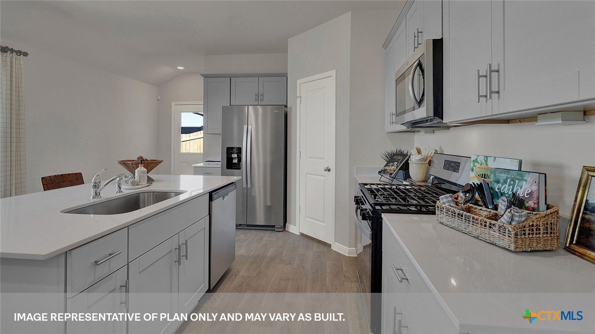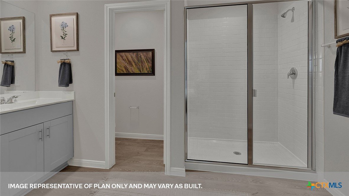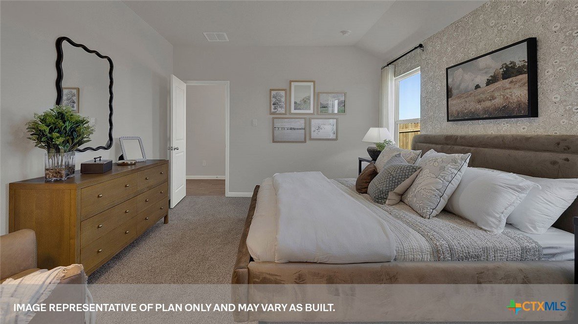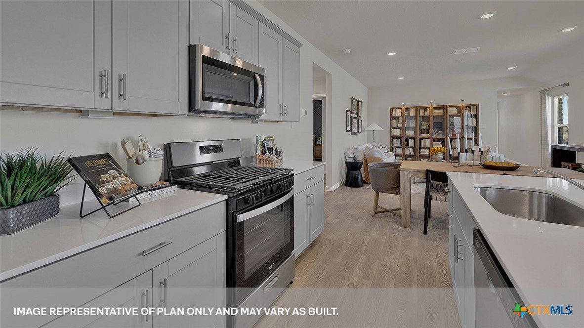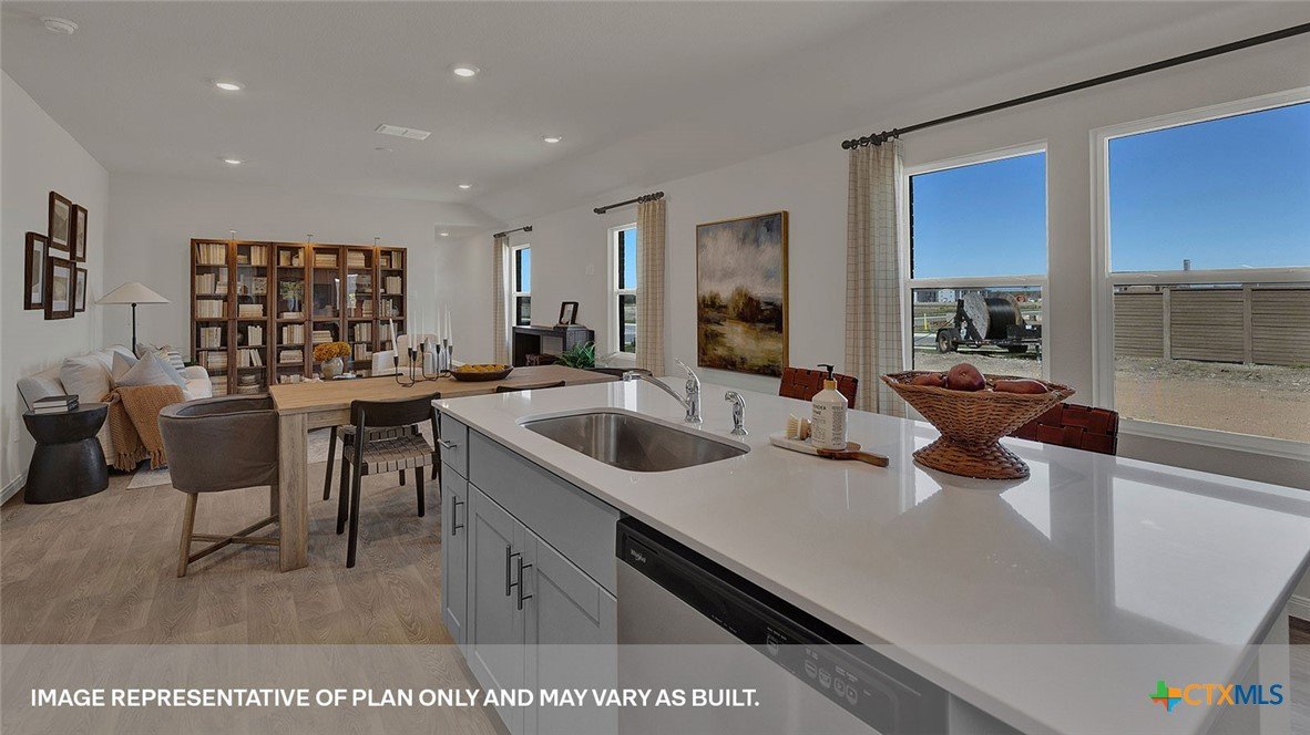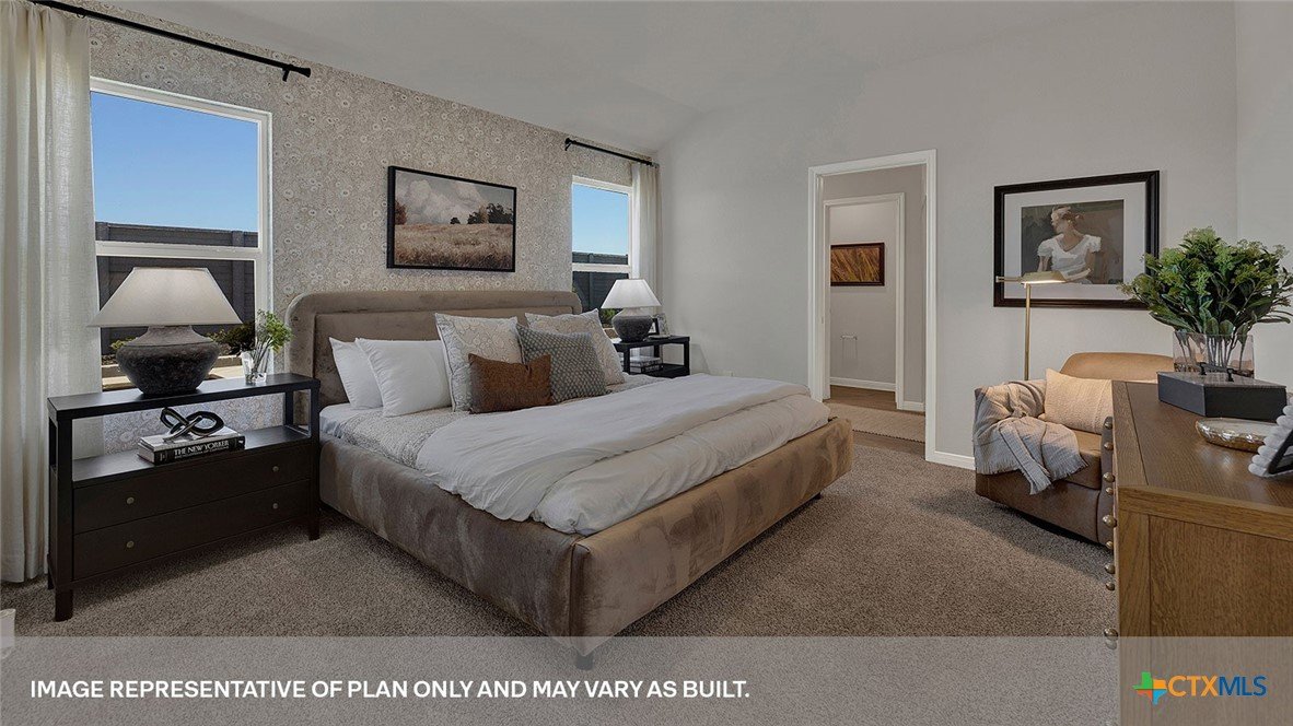 MOVE IN READY! The Diana is one of our one story floorplans available at Whisper South in San Marcos, Texas. This 1,533 square foot home has 3 bedrooms, 2 bathrooms and a 2 car garage. Our homes in Whisper South feature three-sided masonry exteriors and the Diana plan is available with 2 exterior options to choose from. As you come into the home from the covered front porch, you’ll pass through the long foyer to the family room, dining room, and kitchen. This open concept living space will become the central hub of family activities and daily life. The kitchen features quartz countertops, an island with undermount sink, stainless steel appliances, corner pantry closet, and 36” upper cabinets. Enjoy the natural light from the side and rear windows plus the 8’ to 9’ sloped ceilings in this comfortable space. The primary bedroom is located at the back of the home. Stretch out at the end of your day in this private ensuite. The attached bathroom includes a walk-in shower, double vanity with marble counter tops, private door to the toilet area, and a walk-in closet. The secondary bedrooms and bathroom are tucked away off the dining room. Each secondary bedroom includes a closet with wood shelving and the hall bathroom includes a shower/tub combination. The Diana includes vinyl flooring throughout the common areas of the home, and carpet in the bedrooms. All our new homes feature a covered back patio, full sod, irrigation system in the front and back yard, and a 6’ privacy fence around the back yard. This home includes our America’s Smart Home base package, which includes the Amazon Echo Pop, Front Doorbell, Front Door Deadbolt Lock, Home Hub, Thermostat, and Deako® Smart Switches.