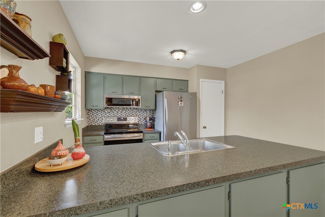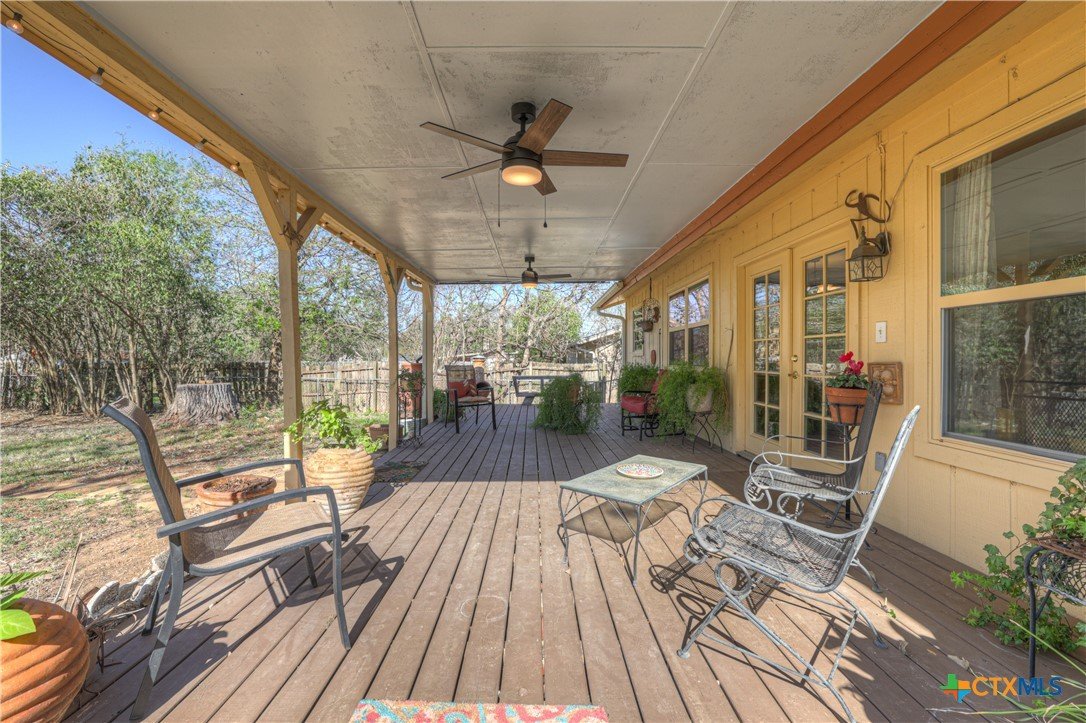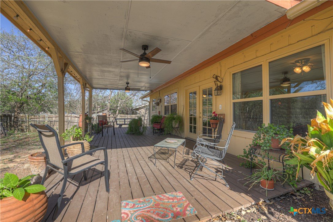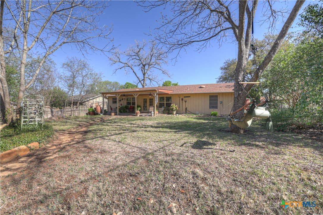 Located in a quiet San Marcos neighborhood just minutes from downtown and along the Texas State bus route, this updated 1975 home sits on a spacious quarter-acre lot. It offers three bedrooms, two baths, and an open layout that feels bright and connected throughout. Natural light pours in through upgraded vinyl windows and glass French doors, with clear views out to the private backyard. The kitchen and bathrooms have been refreshed with thoughtful updates that give the home a clean, move-in ready feel. The covered back porch stretches across the rear of the home, creating an easy outdoor space to relax, gather, or enjoy the yard. The landscaping is filled with low-maintenance plants and is just beginning to come into bloom. Major improvements include a roof replaced in 2023 with 30-year composition shingles and an HVAC system replaced in 2020. The location puts you about a mile from Texas State University and just two miles from grocery stores, dining, and entertainment. Homes like this in this area don’t usually sit long.