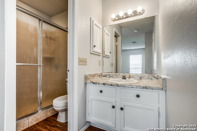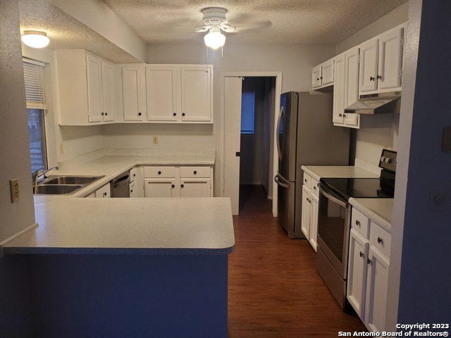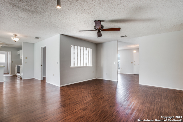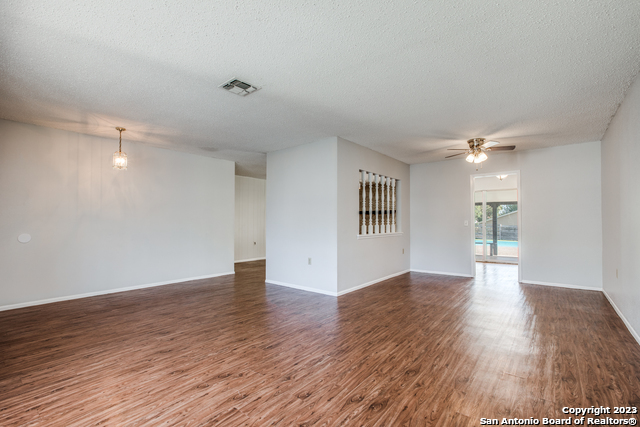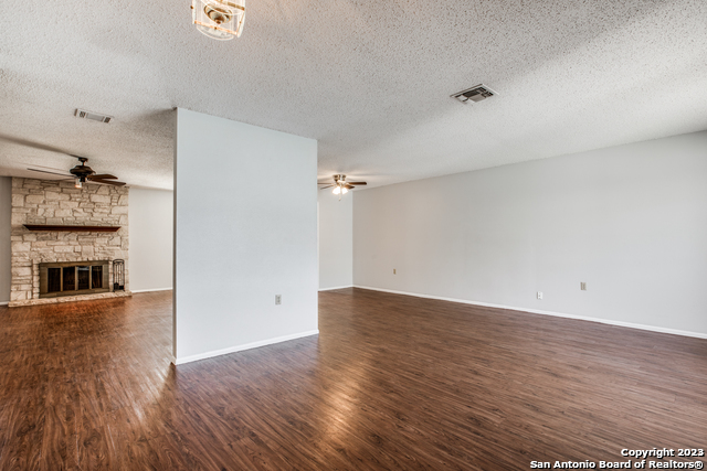 Charming and move-in ready, this single-story home in the Cimarron subdivision offers an open layout with two living areas, including a cozy family room with a wood-burning fireplace. The kitchen features updated countertops, abundant cabinet space, and brand-new stainless steel appliances, including the refrigerator. The primary suite is well-sized and includes a stand-up shower, while secondary bedrooms provide flexibility for family, guests, or a home office. Step outside to a spacious backyard designed for entertaining, complete with a sparkling swimming pool and covered patio-perfect for summer gatherings or relaxing evenings at home. Conveniently located near Randolph Air Force Base, major highways, shopping, and dining, this home combines everyday comfort with the enjoyment of a private outdoor retreat.