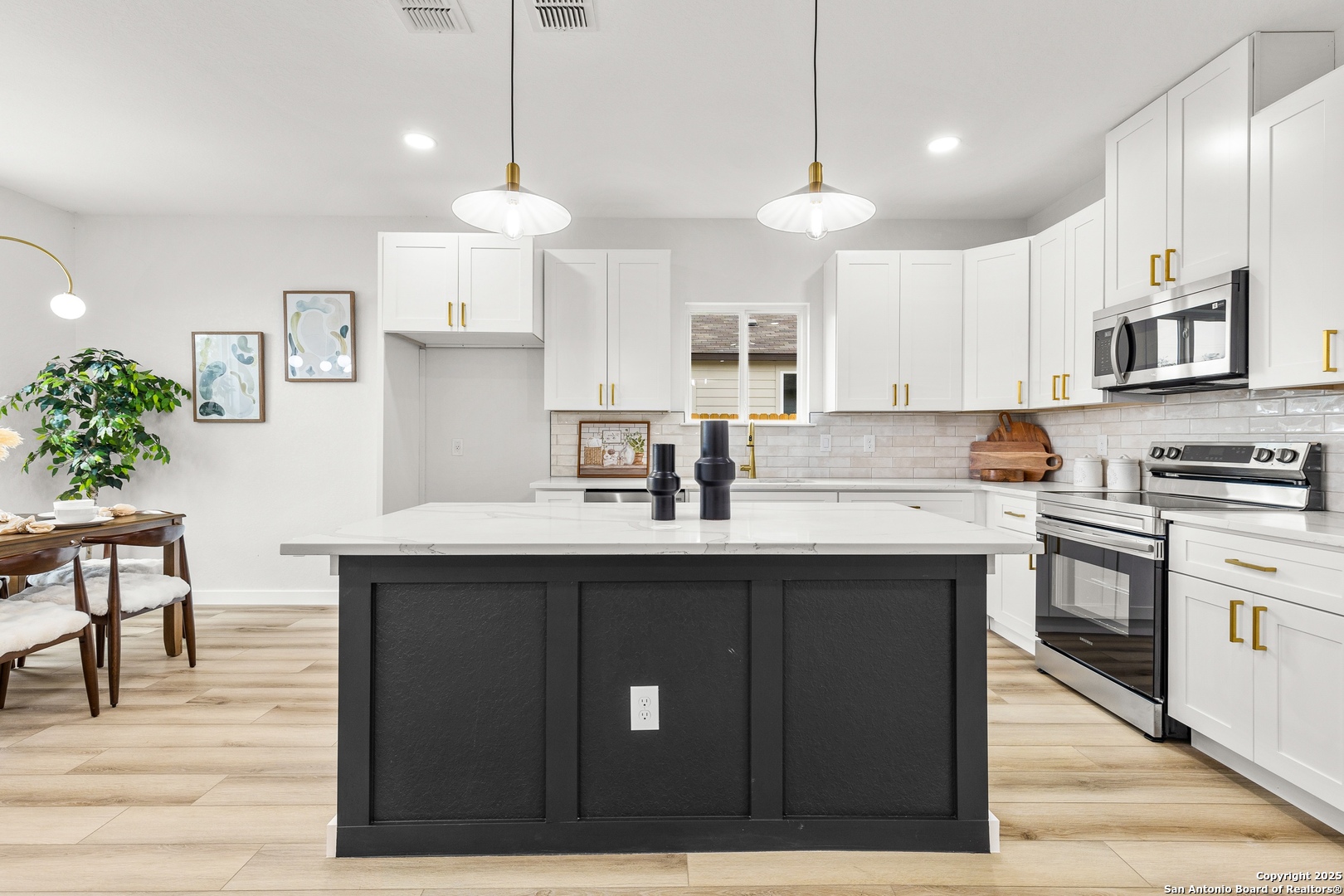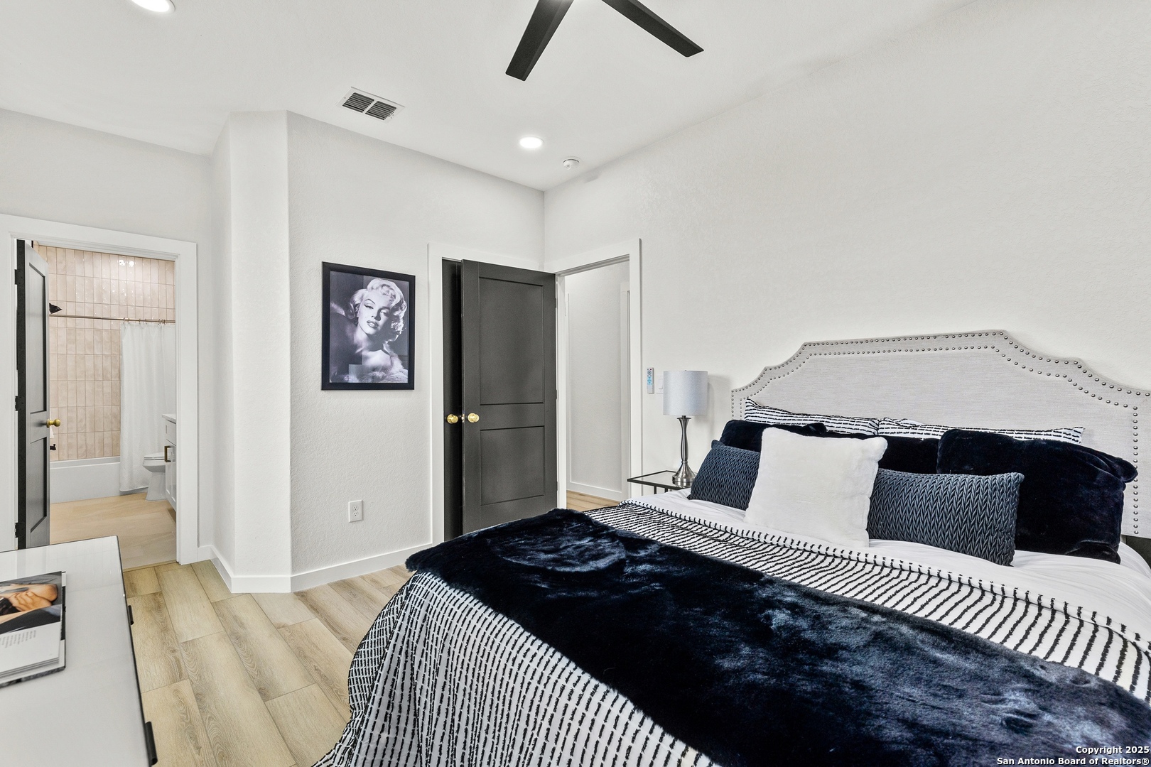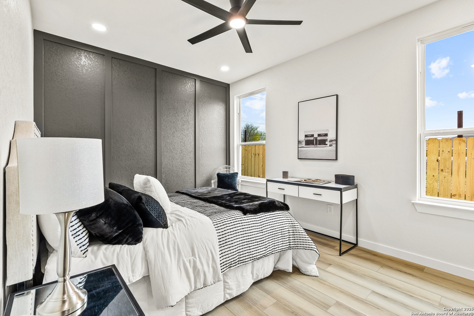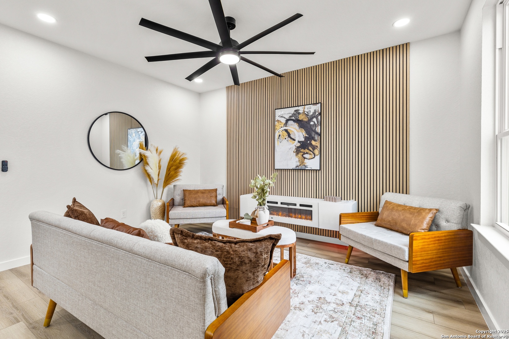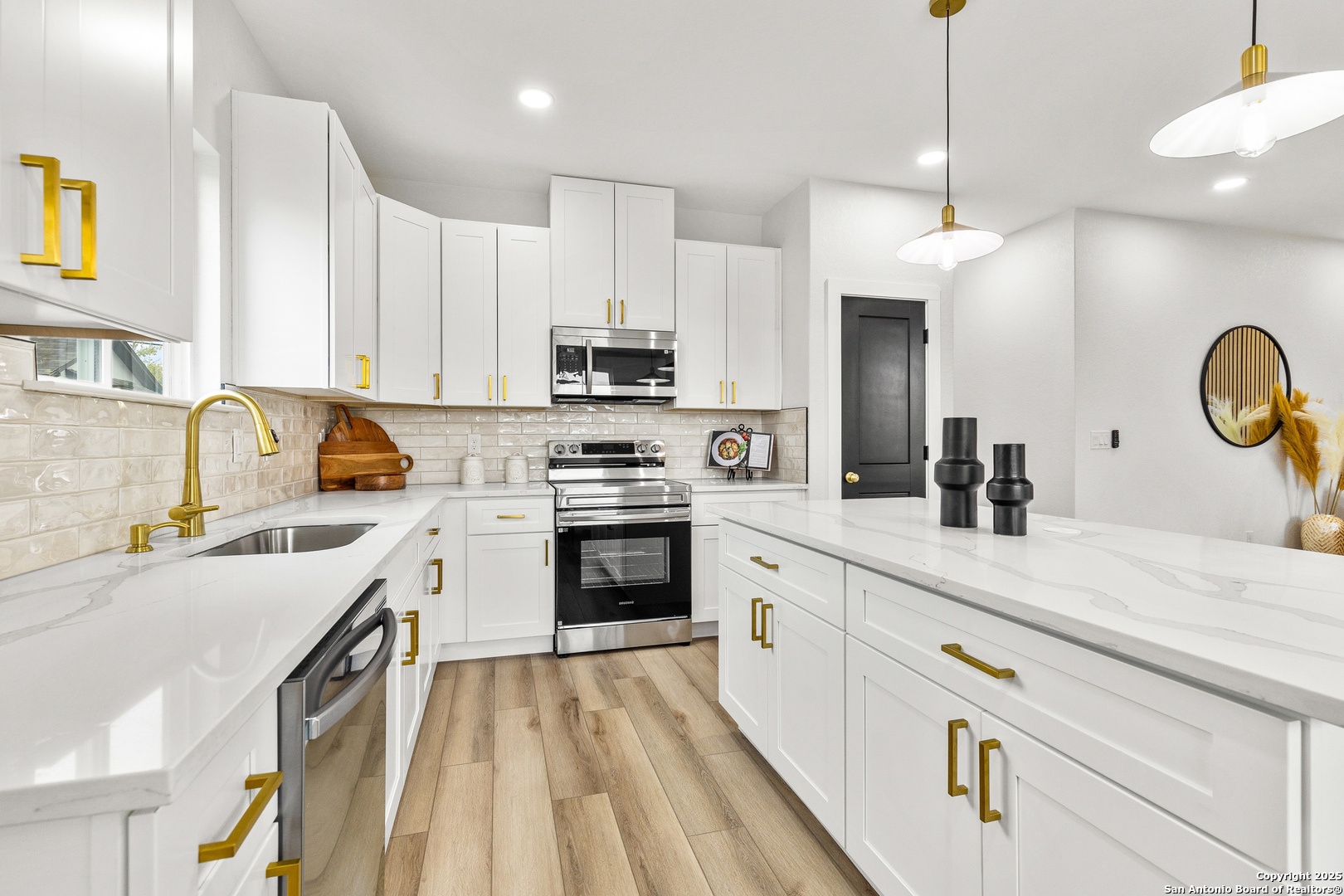 Brand-new construction with modern style and NO HOA! This 3-bedroom, 2-bath home offers 1,300 sq ft of thoughtfully designed living space with a bright, open floor plan and high-end finishes throughout. Enjoy luxury vinyl plank flooring, a statement accent wall with a sleek fireplace, and a seamless flow from the living area into the kitchen. The kitchen features soft-close wood cabinets, quartz countertops, stainless steel appliances, and a large island perfect for everyday living and entertaining. The private primary suite includes a beautifully finished bathroom with quartz countertops, modern fixtures, and designer tile. Outside, you'll love the contemporary curb appeal, covered front entry, fresh sod, and fully fenced yard ideal for pets or outdoor enjoyment. Conveniently located on San Antonio's Southside near major roads, shopping, and dining. Move-in ready, modern, and built to last! Don't miss this opportunity.