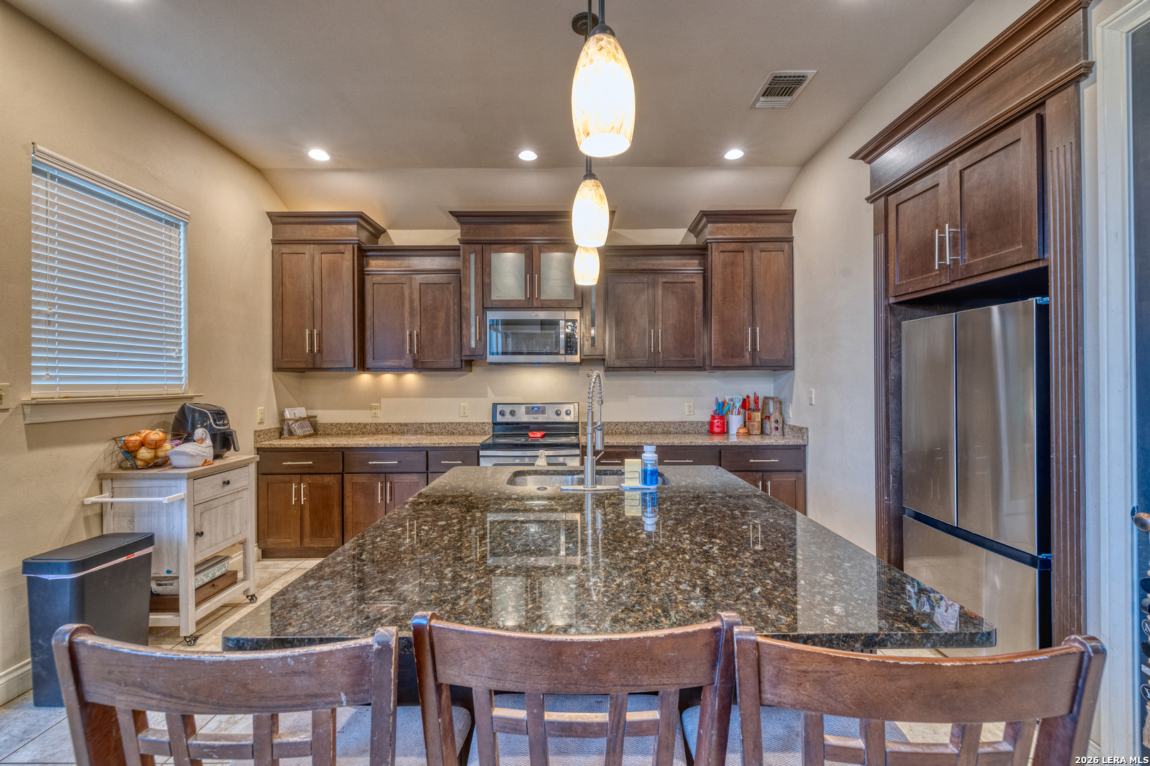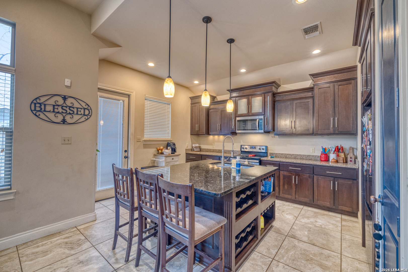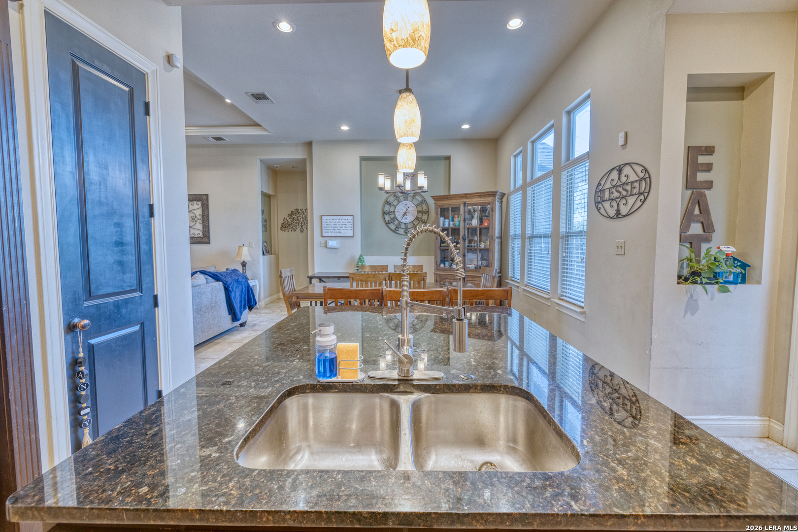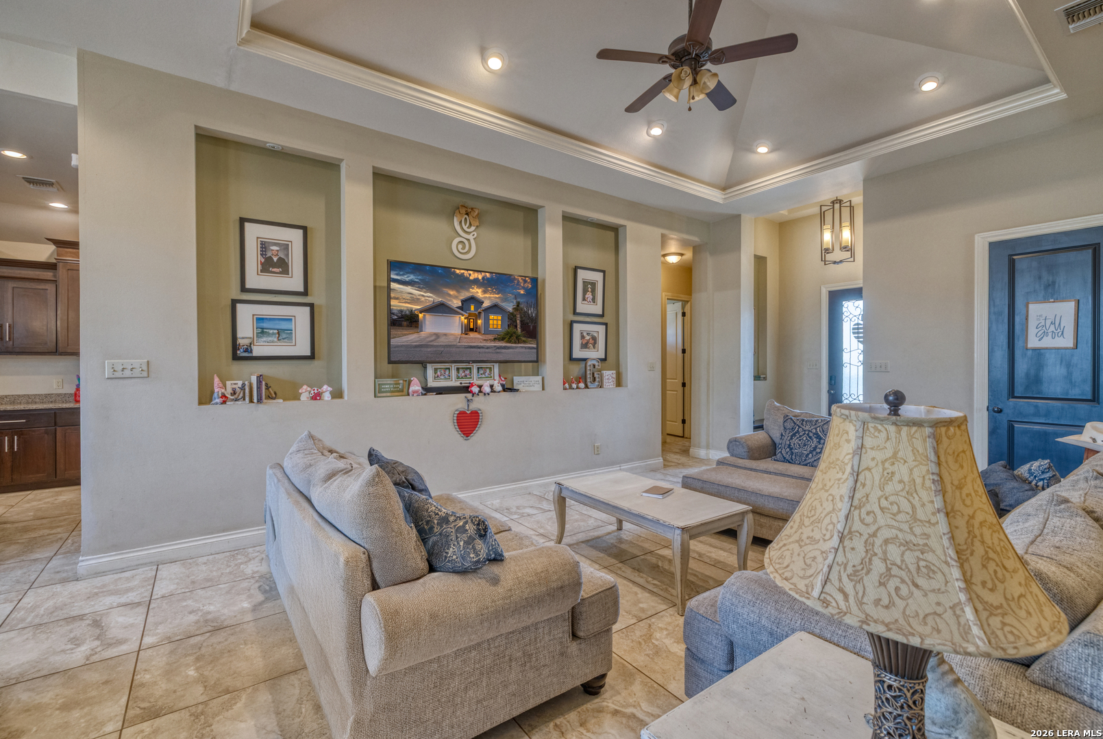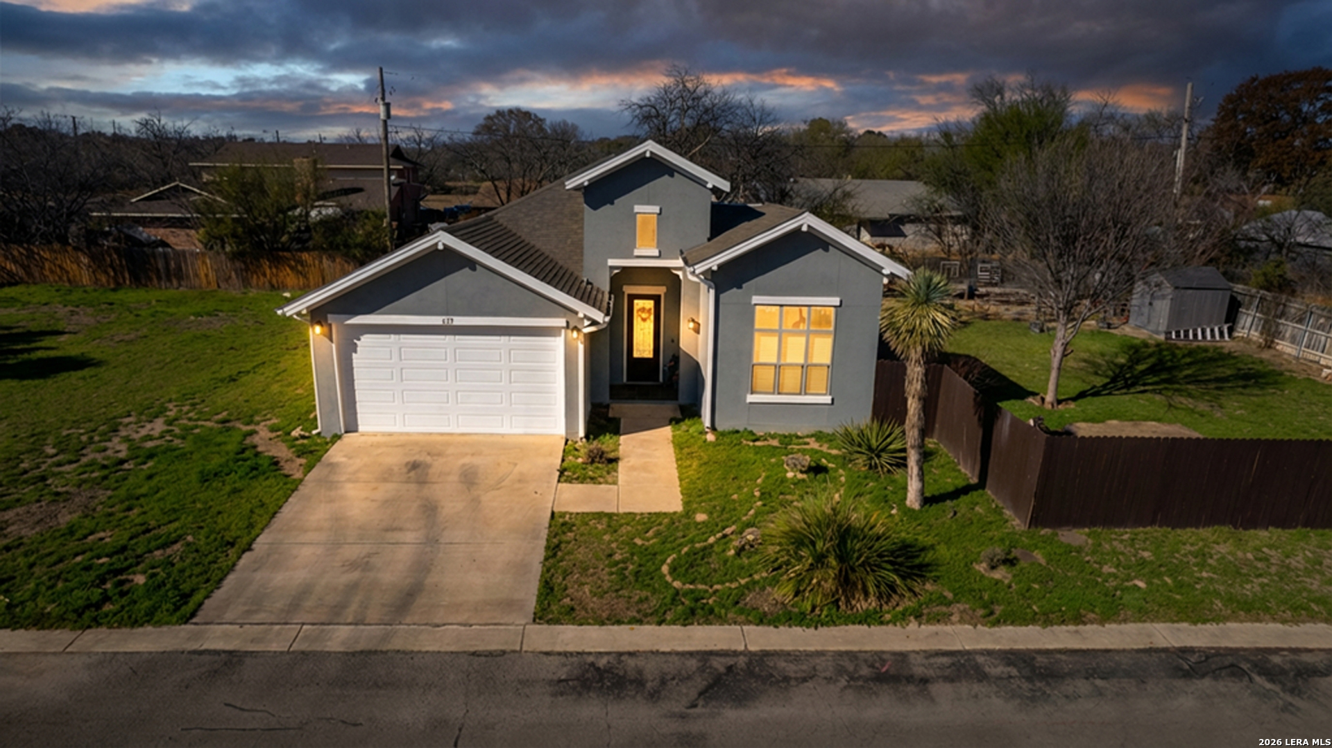 Welcome to 137 Sutton Place, a beautifully maintained 3-bedroom, 2-bath home located in a desirable gated subdivision in Uvalde. As you arrive, you're greeted by fresh exterior paint and charming stucco architecture that gives this home a warm Spanish-style appeal. Step inside to discover an open-concept layout featuring high ceilings, tile flooring throughout, and a custom media wall that anchors the spacious living area. The living room flows seamlessly into the dining area and kitchen, making it ideal for both everyday living and entertaining.The kitchen and bathrooms feature granite countertops, adding both style and durability. The home offers a spacious primary suite complete with a large walk-in closet, dual vanities, and a beautifully tiled walk-in shower. Two additional bedrooms share a full bathroom with a shower/tub combination, perfect for family or guests.One of the standout features of this property is that it sits on two lots, providing a larger backyard than most homes in the subdivision-perfect for outdoor enjoyment or future improvements. The enclosed garage offers flexibility and can be used as an additional bedroom, second living area, or flex space.With its inviting layout, stylish finishes, and generous outdoor space, this home truly feels like a private oasis.
