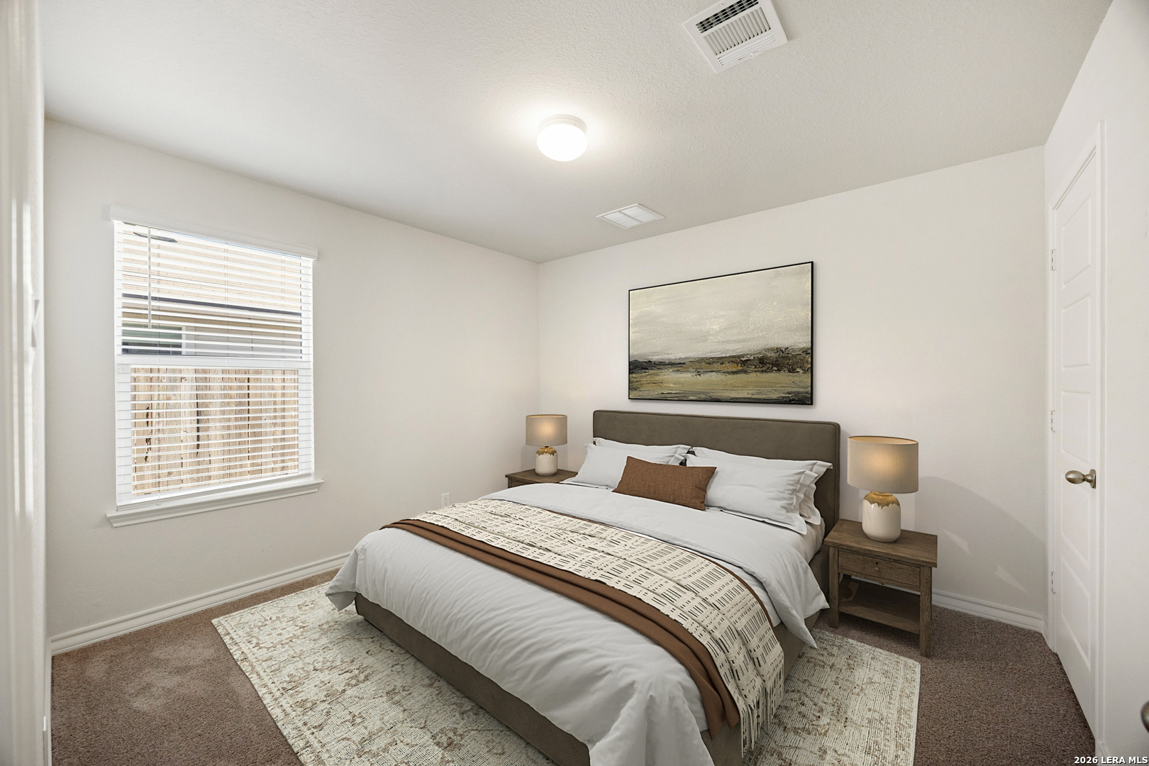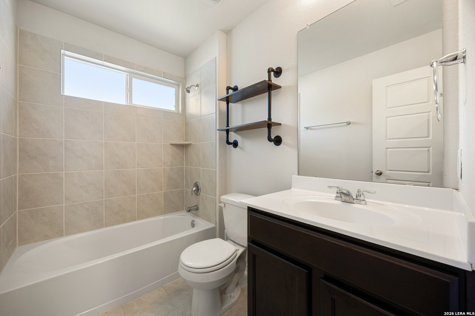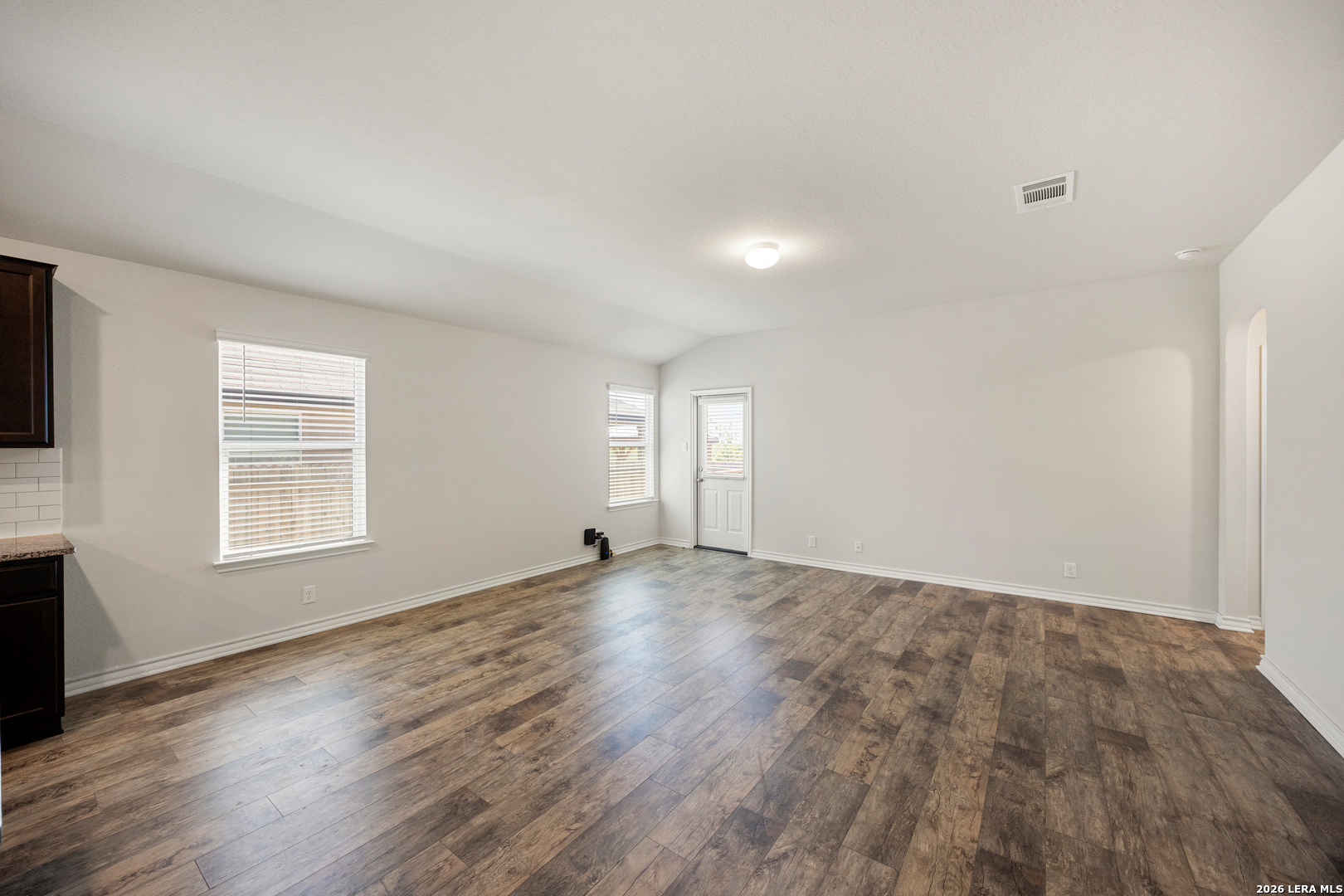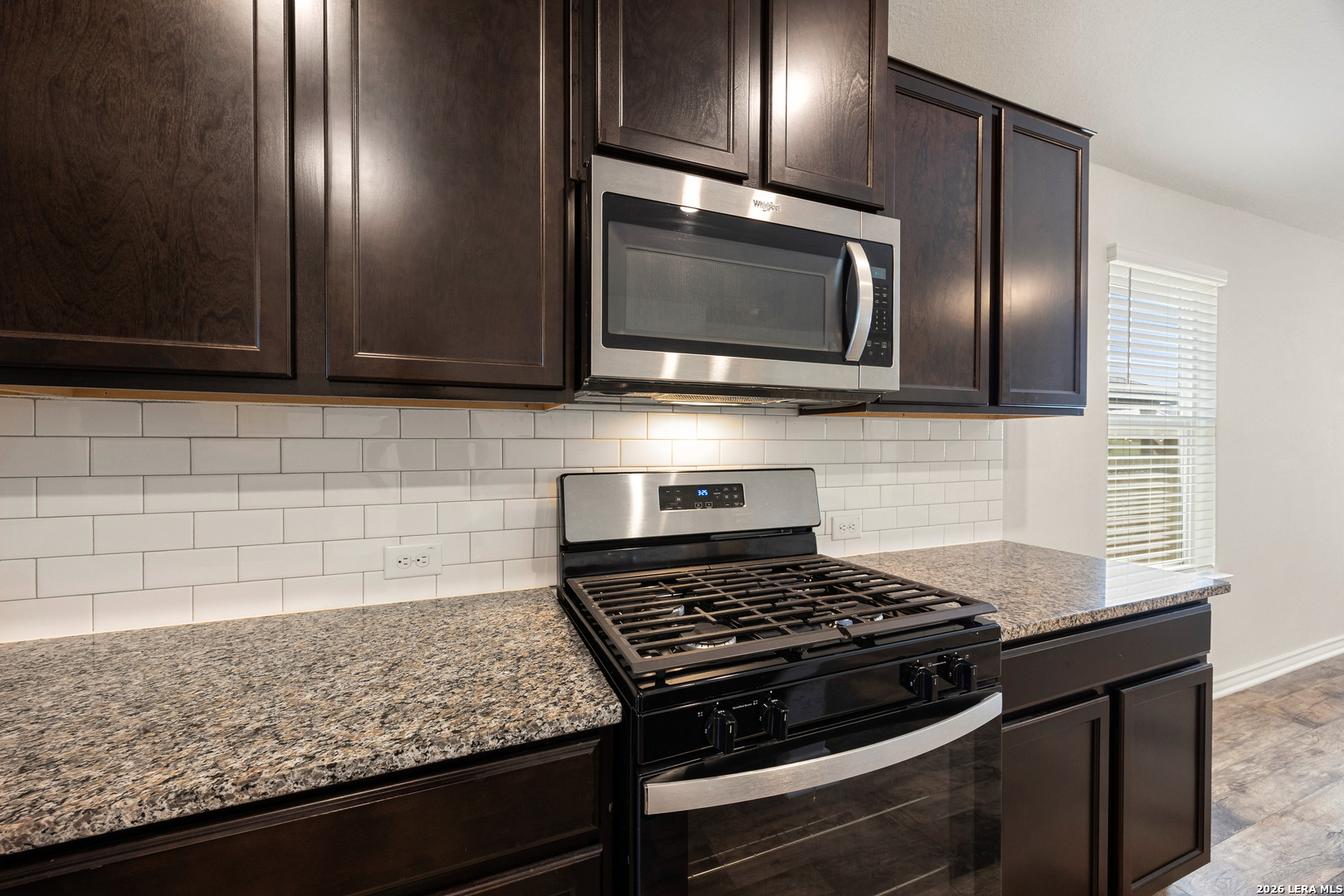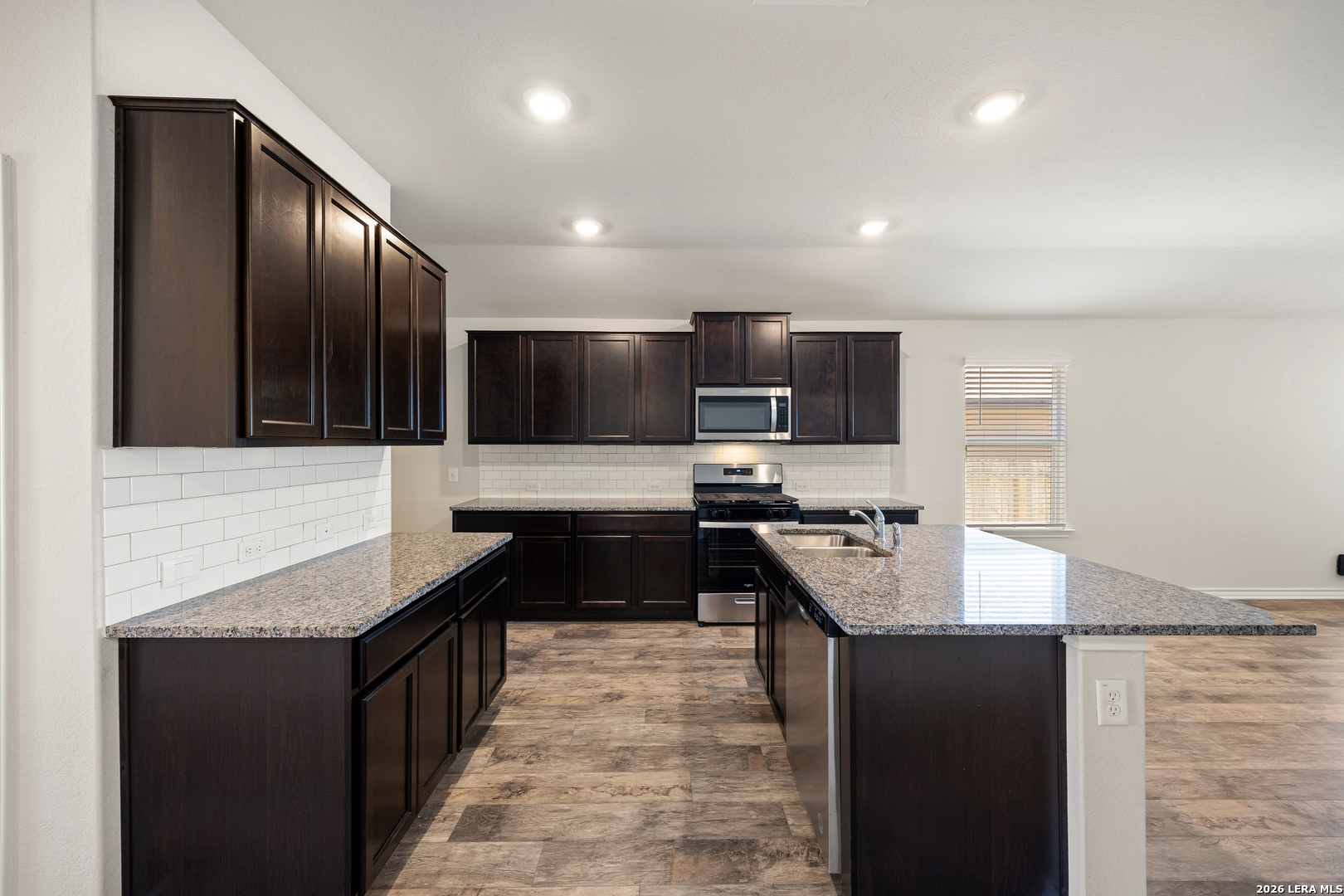 This immaculate single-story home offers 3 bedrooms and 2 bathrooms with a thoughtfully designed layout that blends comfort and functionality. Just off the entry, you'll find a dedicated dining area that flows seamlessly into the open-concept kitchen and living space-perfect for both everyday living and entertaining. The kitchen is well-appointed with granite countertops, a subway tile backsplash, stainless steel appliances, a gas range, ample cabinetry, and a large island overlooking the family room. The spacious living area is filled with natural light and connects effortlessly to the covered patio, creating a great indoor-outdoor living experience. Privately situated off the family room, the primary suite features a double vanity, separate soaking tub and walk-in shower, a private water closet, and a generous walk-in closet. The secondary bedrooms are well-sized with large closets and share a bright full bathroom. A conveniently located utility room adds to the home's practical design. Additional highlights include 9-foot ceilings, 2-inch faux wood blinds, luxury vinyl plank flooring in the main living areas, ceramic tile in the bathrooms and utility room, and pre-plumbing for a water softener. The home also includes a 2-car garage, full yard landscaping, and an irrigation system. Enjoy outdoor living on the covered patio, along with access to community amenities such as a resort-style pool, splash pad, playground, basketball courts, and jogging trails. Ideally located with easy access to major highways, as well as nearby shopping, dining, and entertainment options.